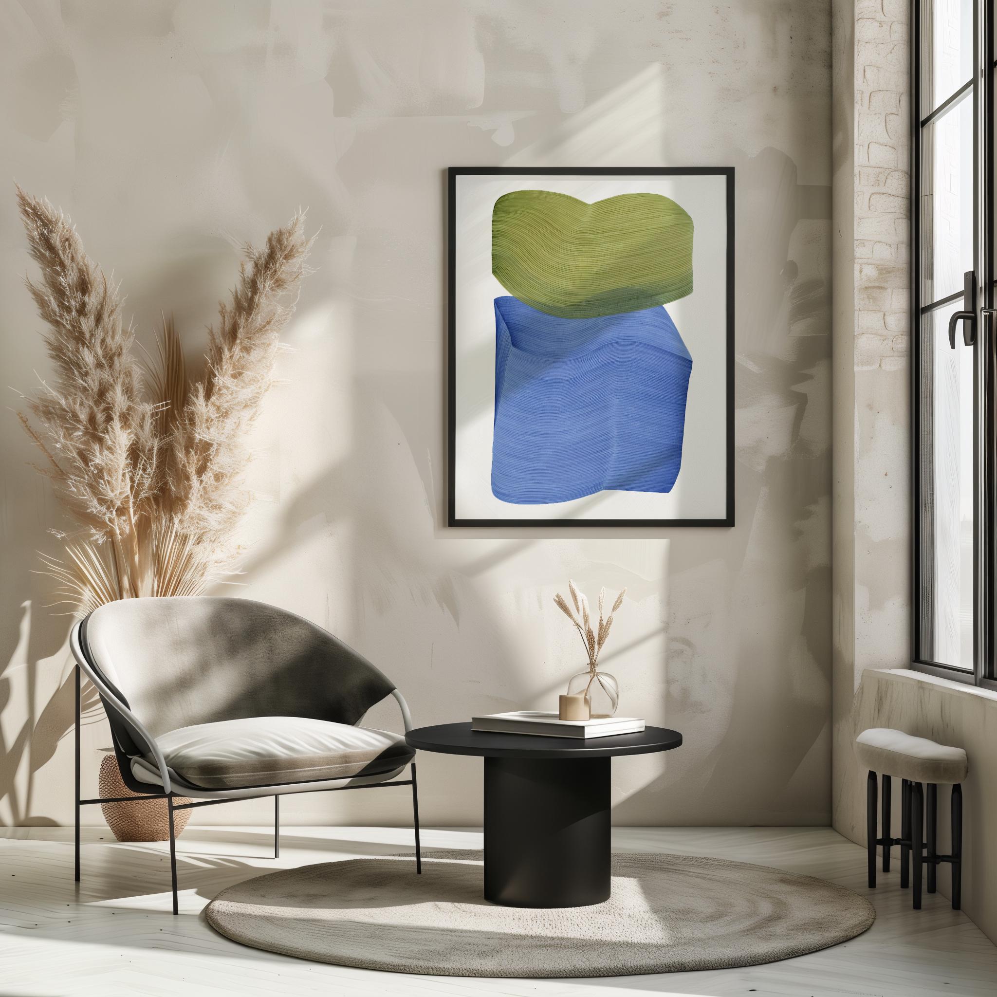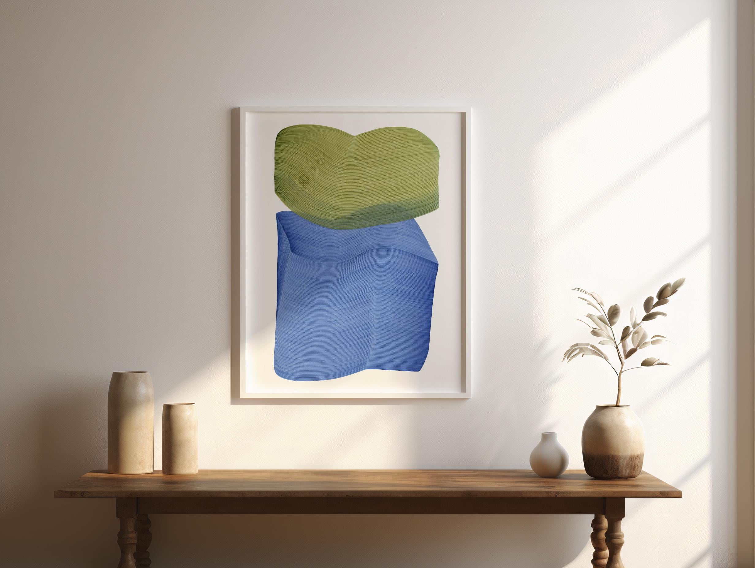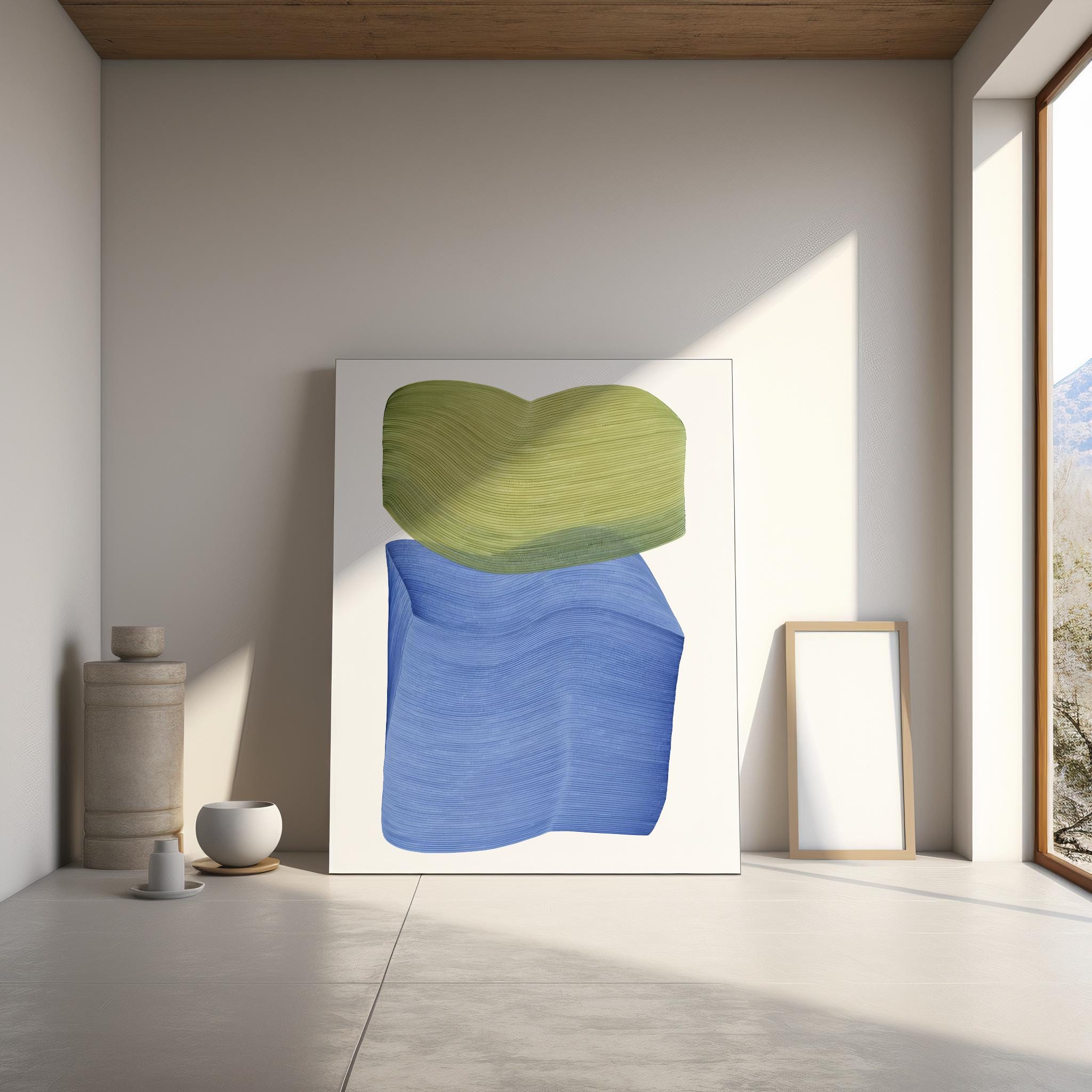 Transform your space instantly with this digital download abstract wall art, a minimalist abstract artwork featuring organic green and blue wavy forms. This modern design blends fluid lines and gentle color gradients, creating a serene visual perfect for any room in your home or office.