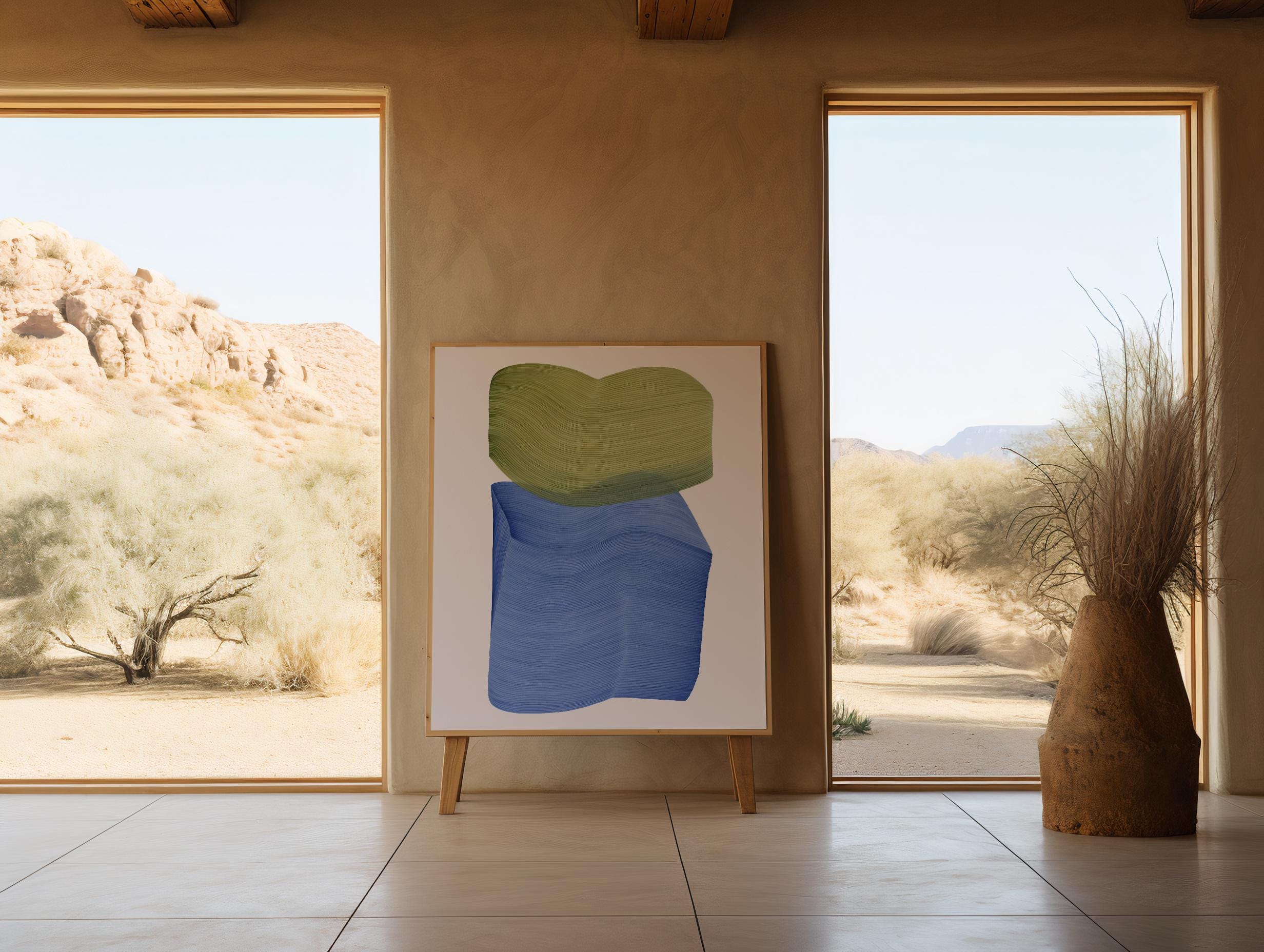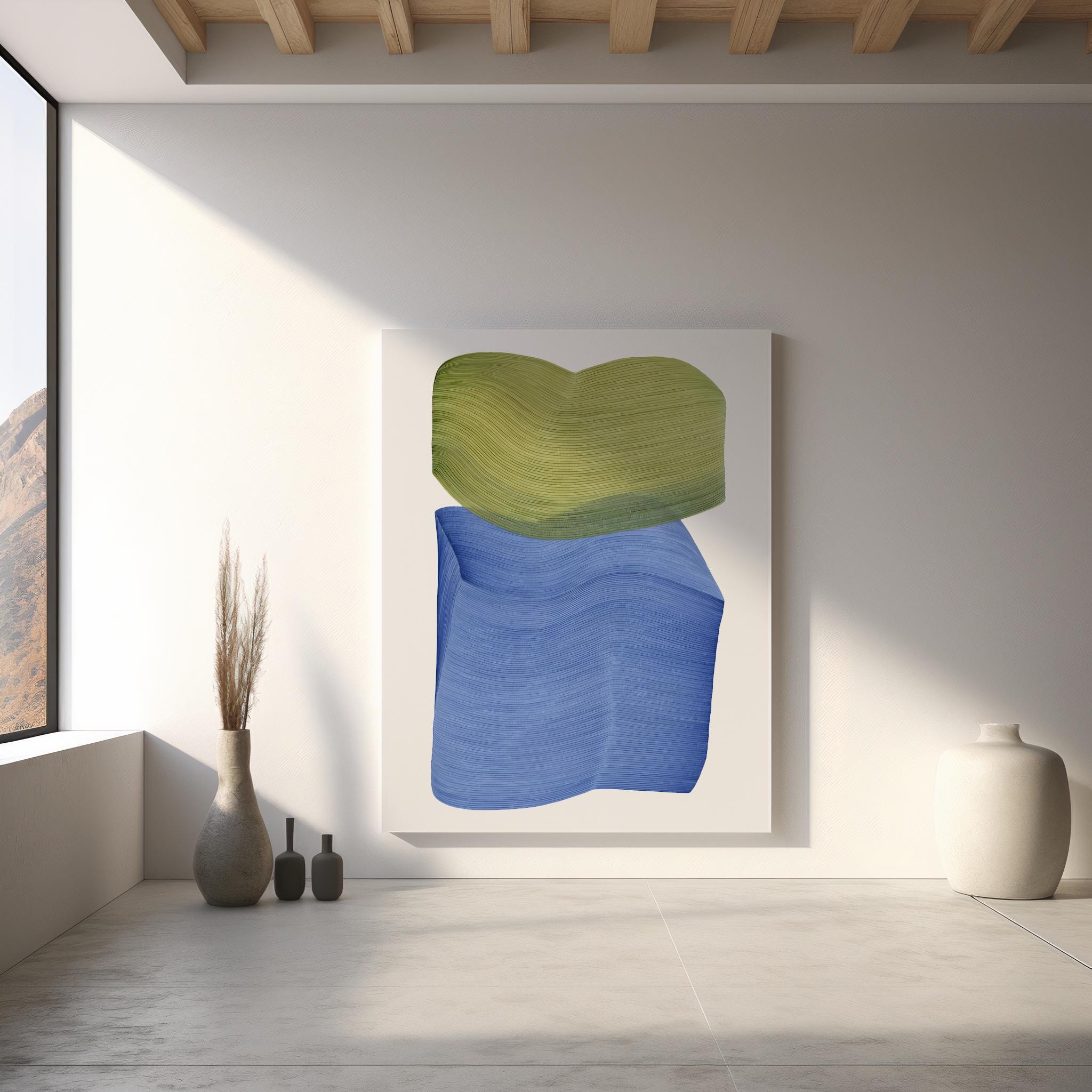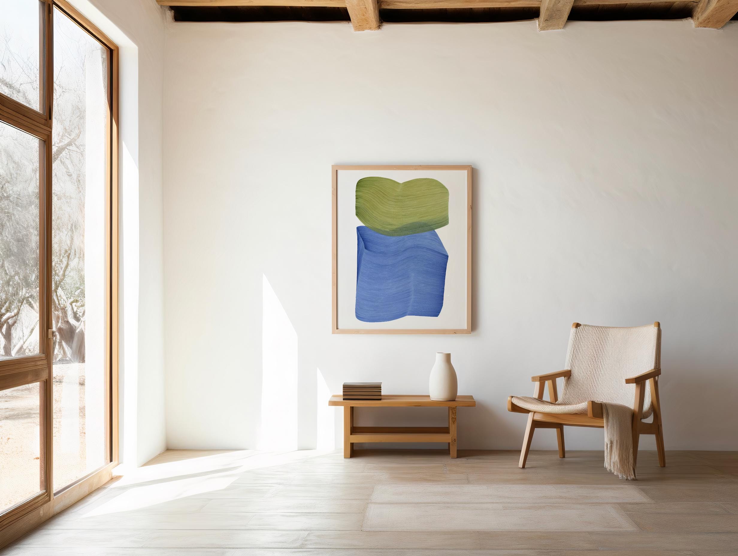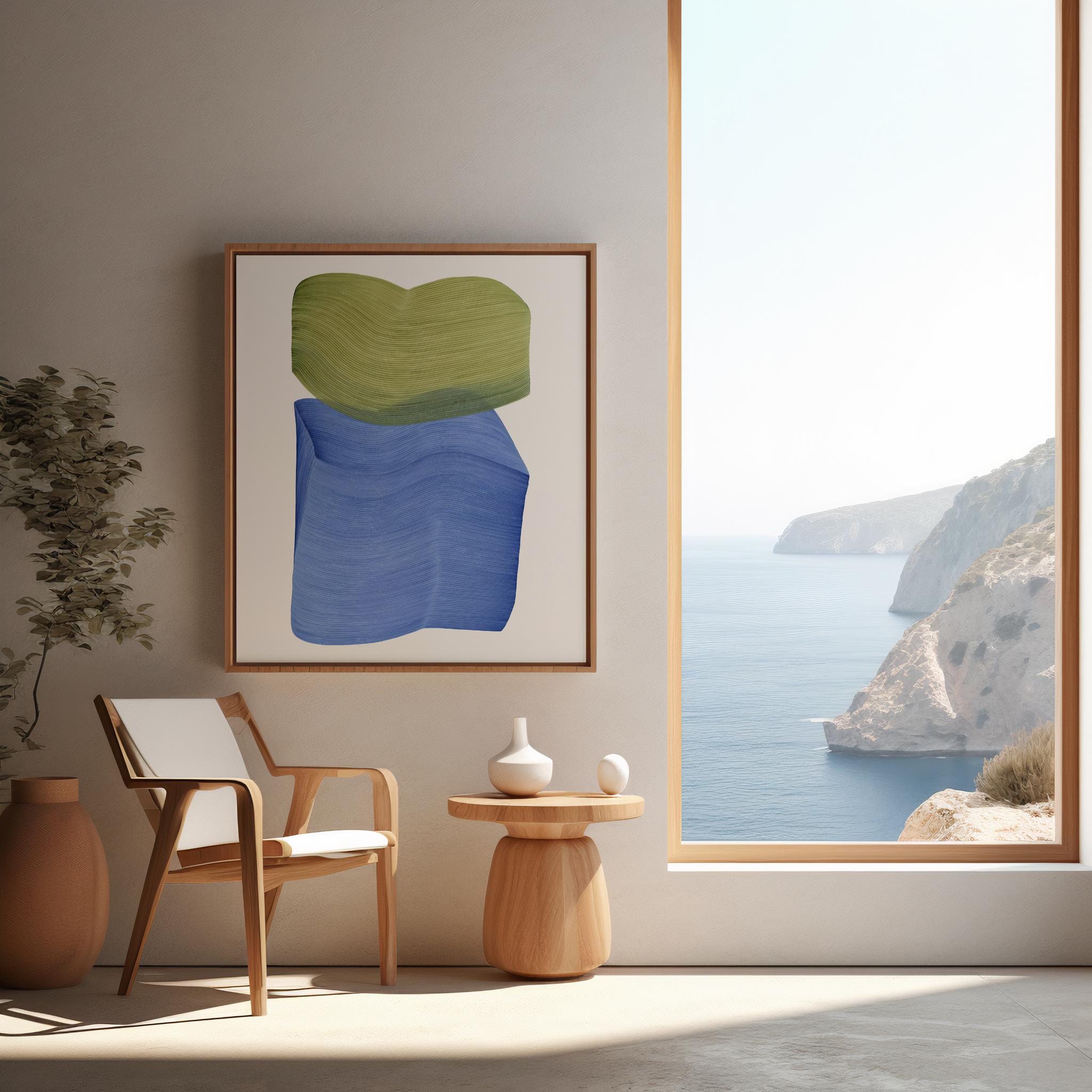 Transform your space instantly with this digital download abstract wall art, a minimalist abstract artwork featuring organic green and blue wavy forms. This modern design blends fluid lines and gentle color gradients, creating a serene visual perfect for any room in your home or office.