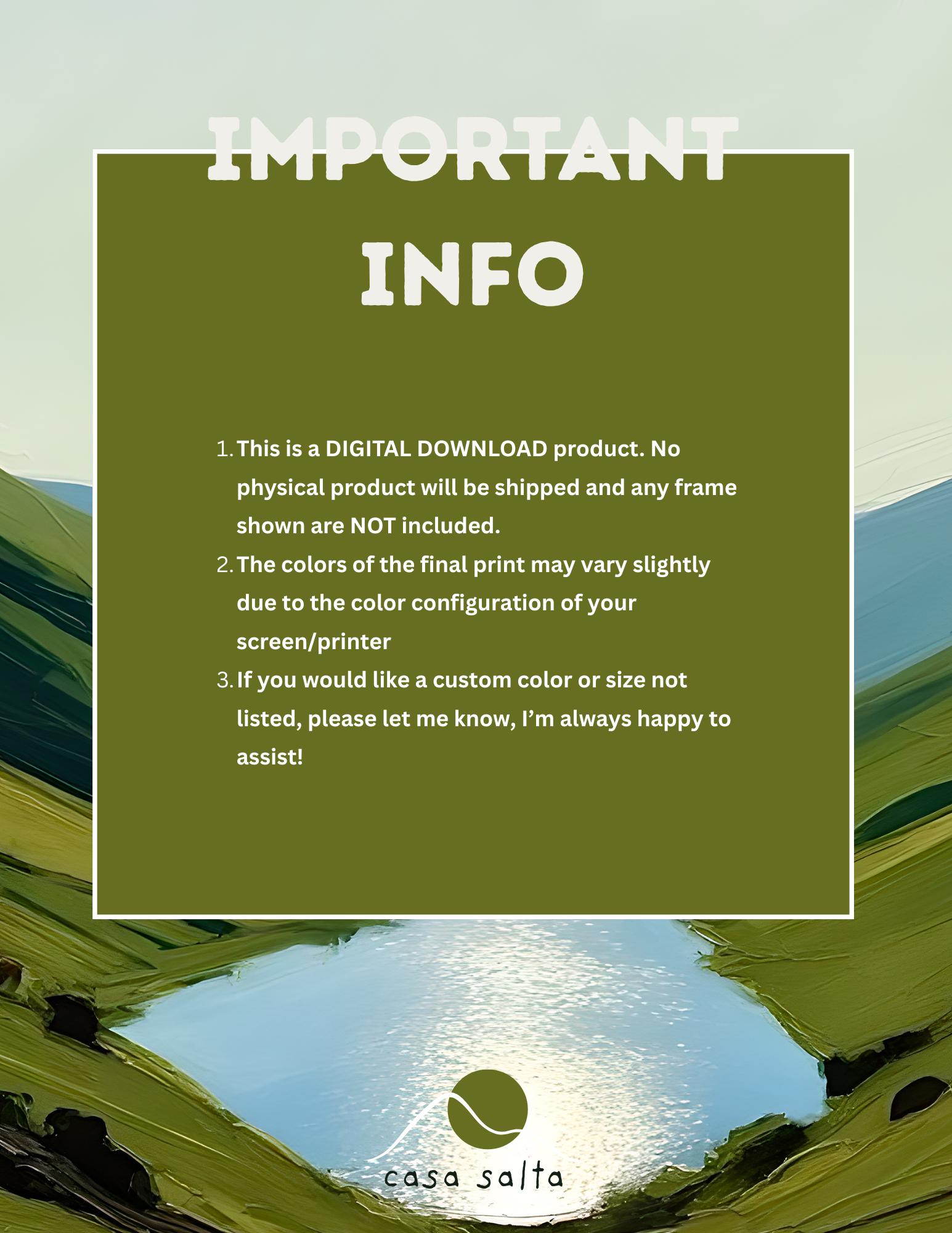 How It Works: - Purchase the listing - Get access to the google drive - Print at home or your favorite print shop - Frame and enjoy!