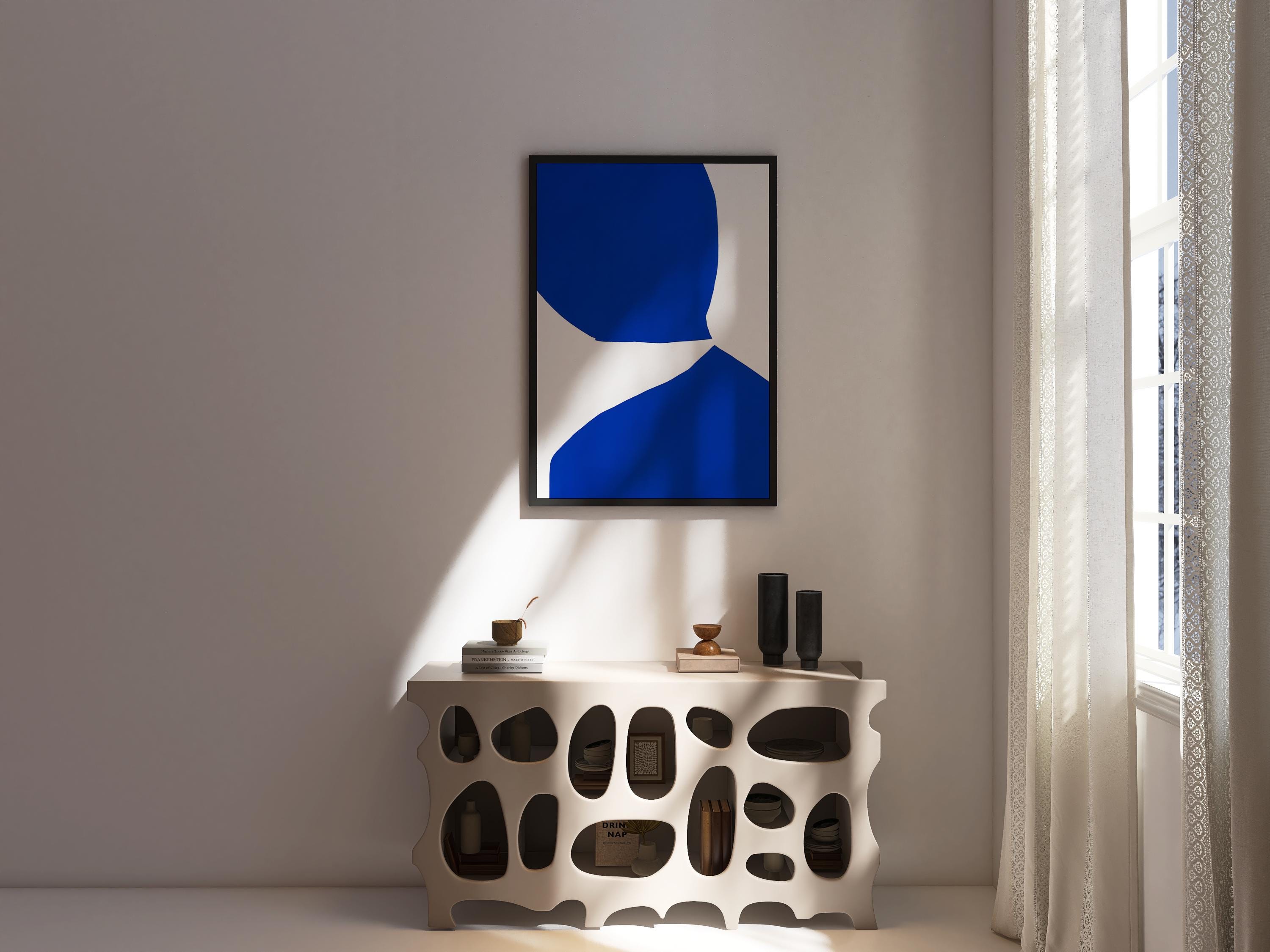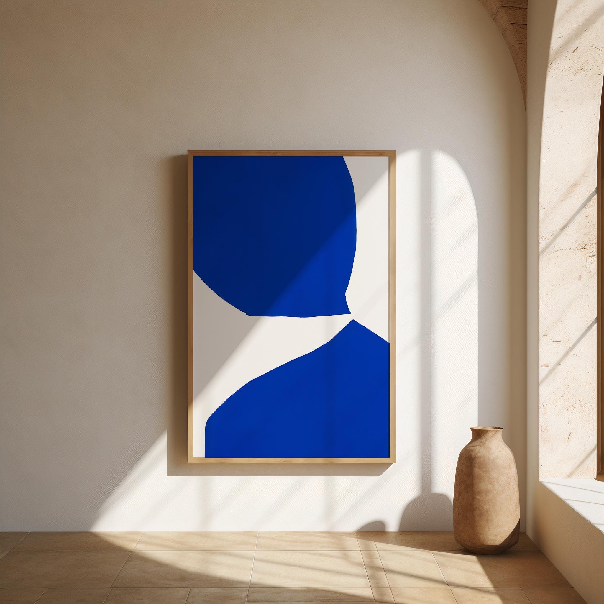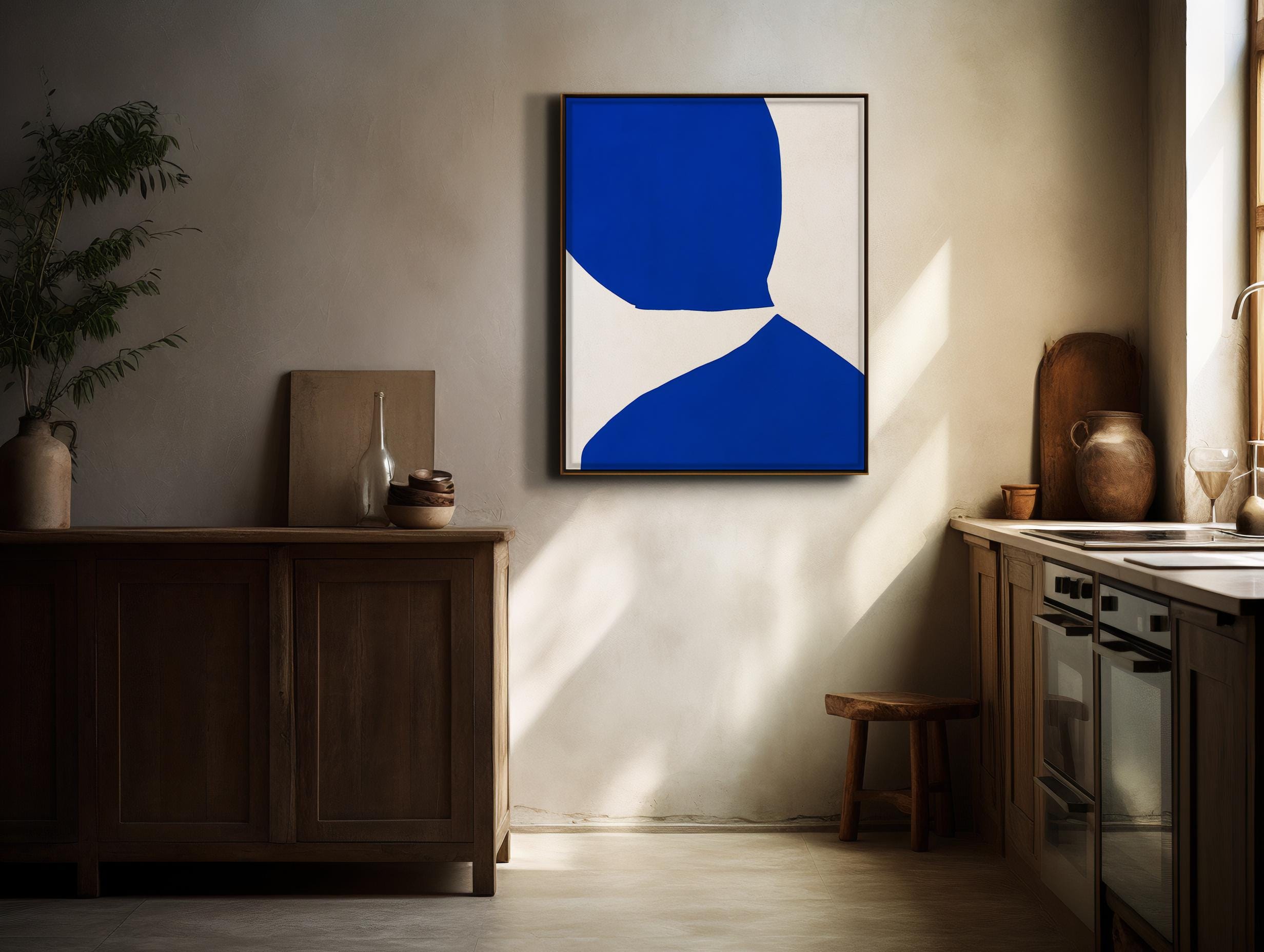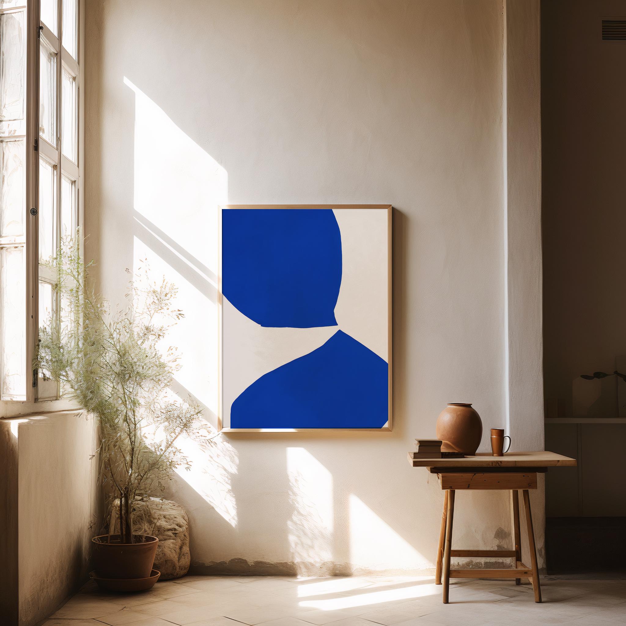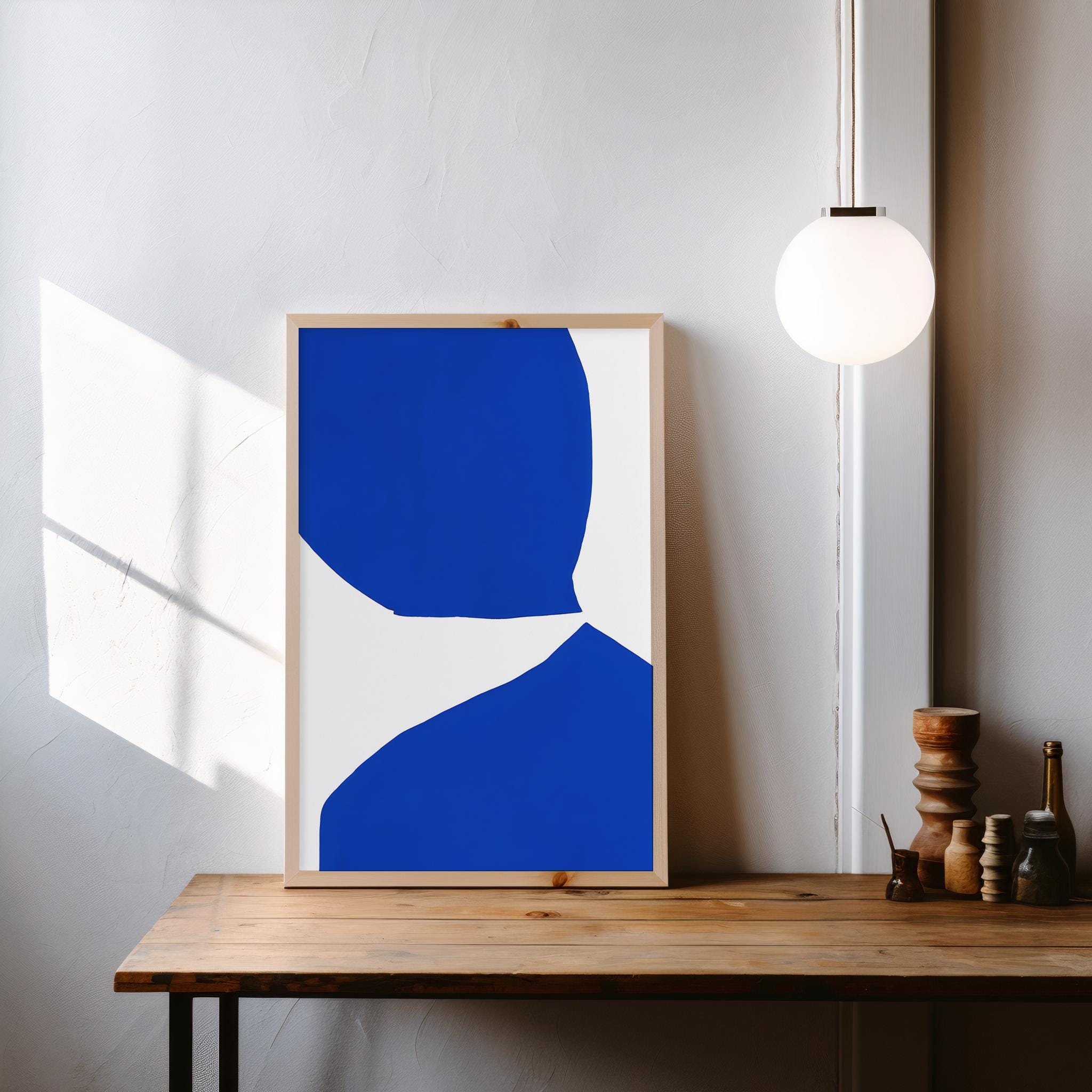 Elevate your space with this stunning digital download featuring an abstract composition of bold royal blue blobs on a clean white background. Created with artistic precision, this piece provides a modern aesthetic perfect for adding a splash of color and contemporary flair to any room. The high-resolution digital file ensures crisp, vivid details for a professional finish when printed.