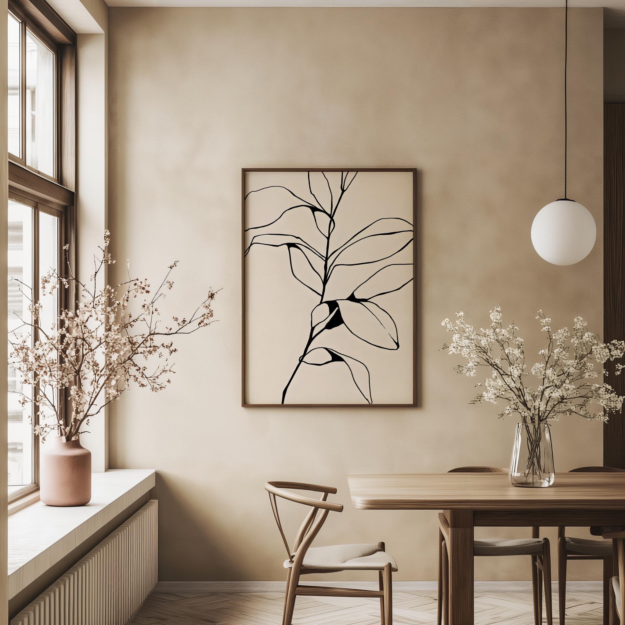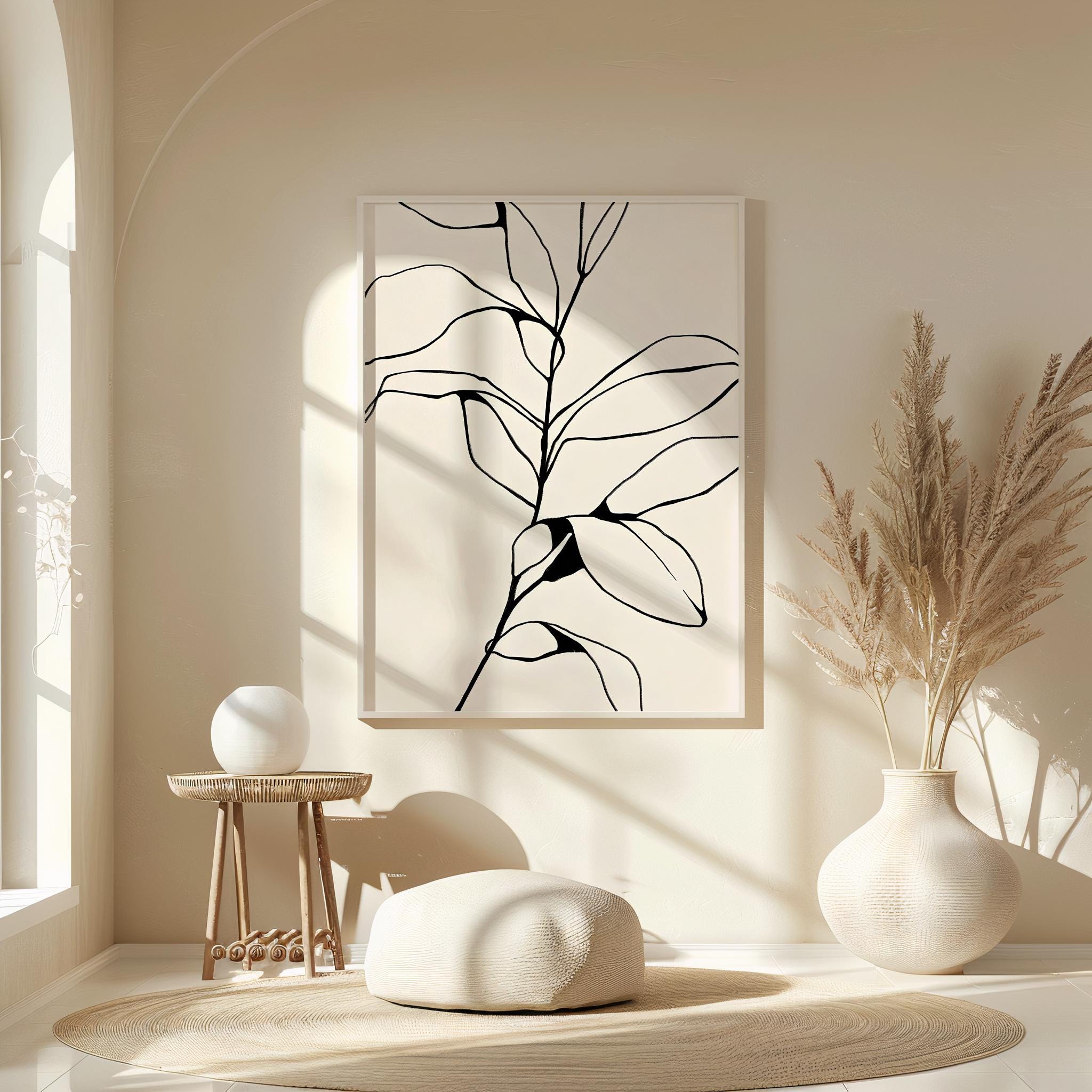 Digital Download | Bring a touch of natural elegance to your space with this Minimalist Botanical Line Art Print download. Featuring a graceful black and white line drawing of abstract leaves, this piece is perfect for modern, boho, or Scandinavian interiors. Ideal for living rooms, bedrooms, offices, or entryways, it adds effortless style to any wall.