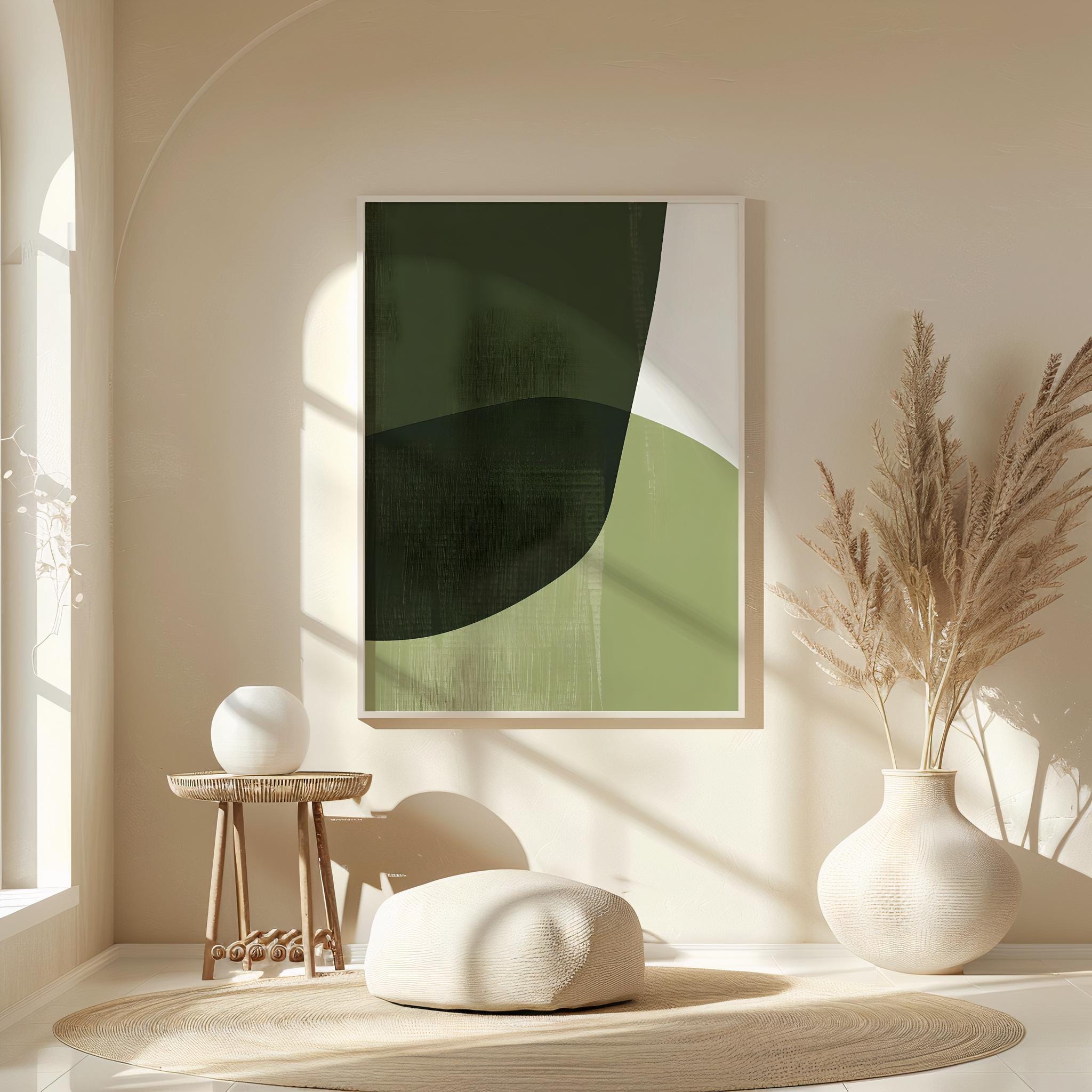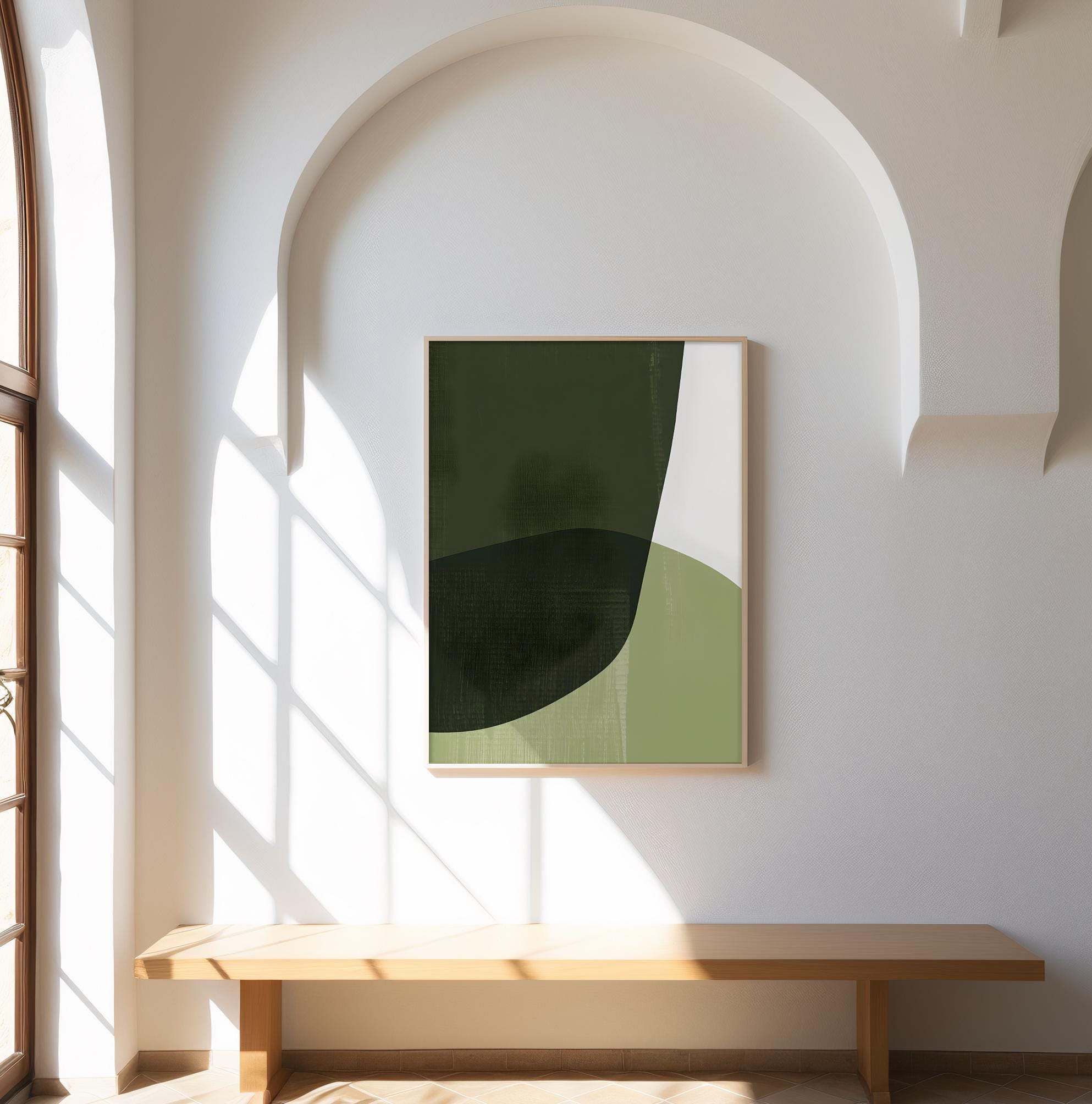 Digital Download | Add a fresh, contemporary touch to your space with this Abstract Green Wall Art Print. Featuring layered organic shapes in olive and deep green tones, this piece brings calming earth vibes and stylish modern design to any room. Perfect for a gallery wall or as a standalone statement.