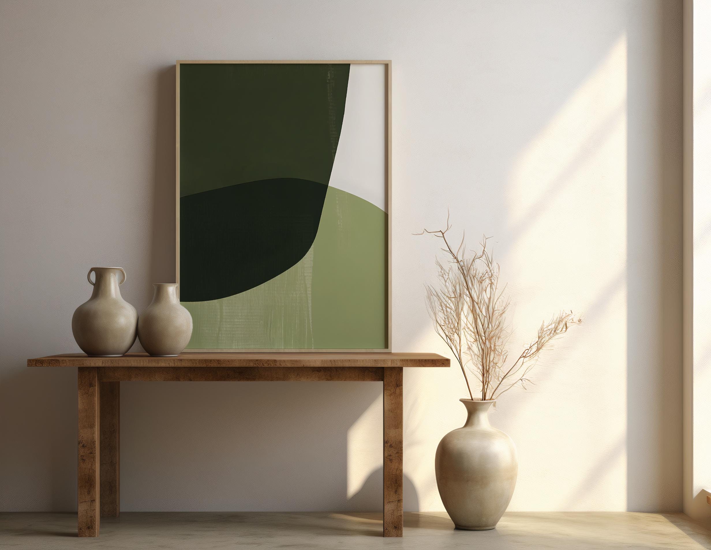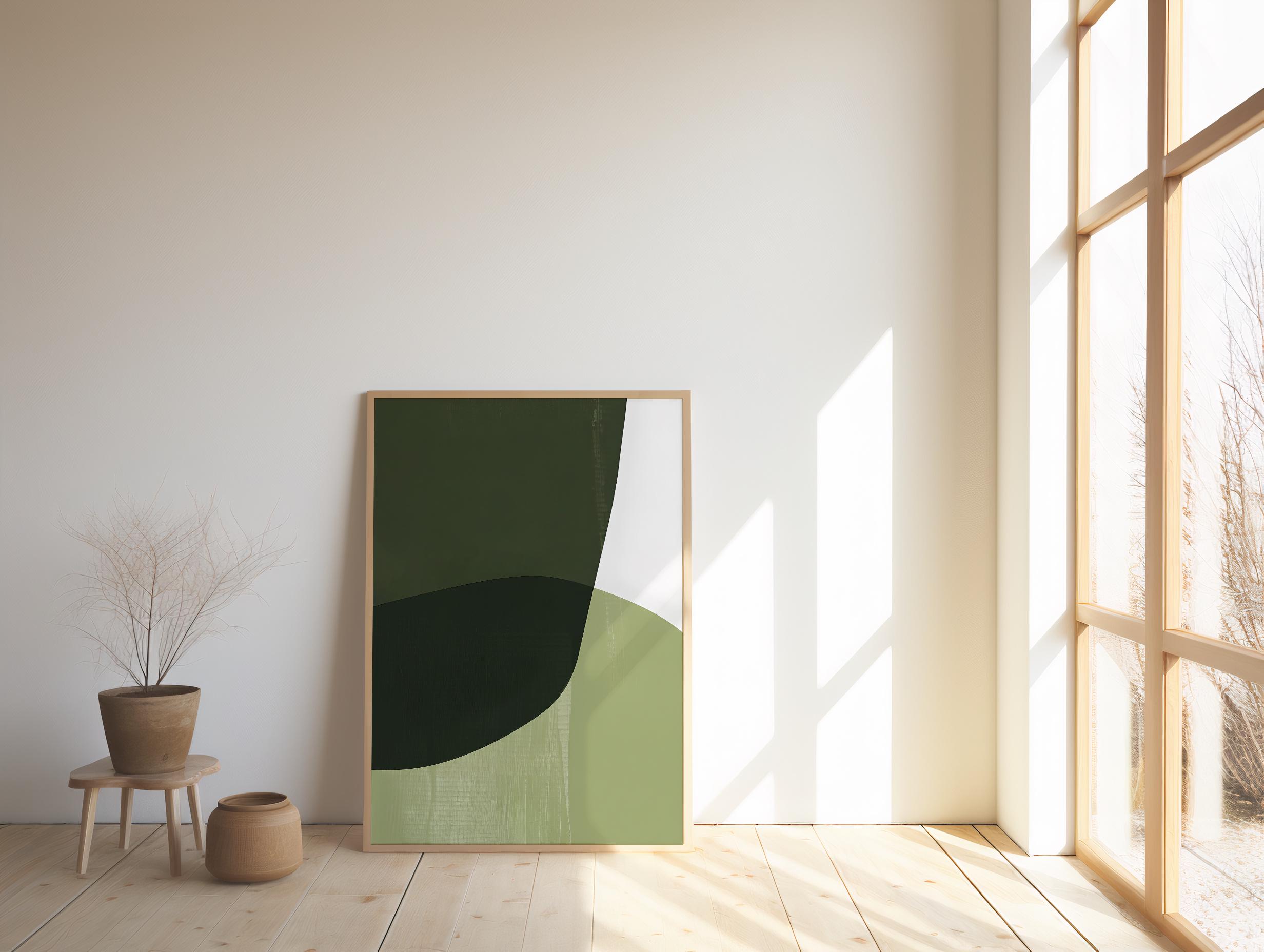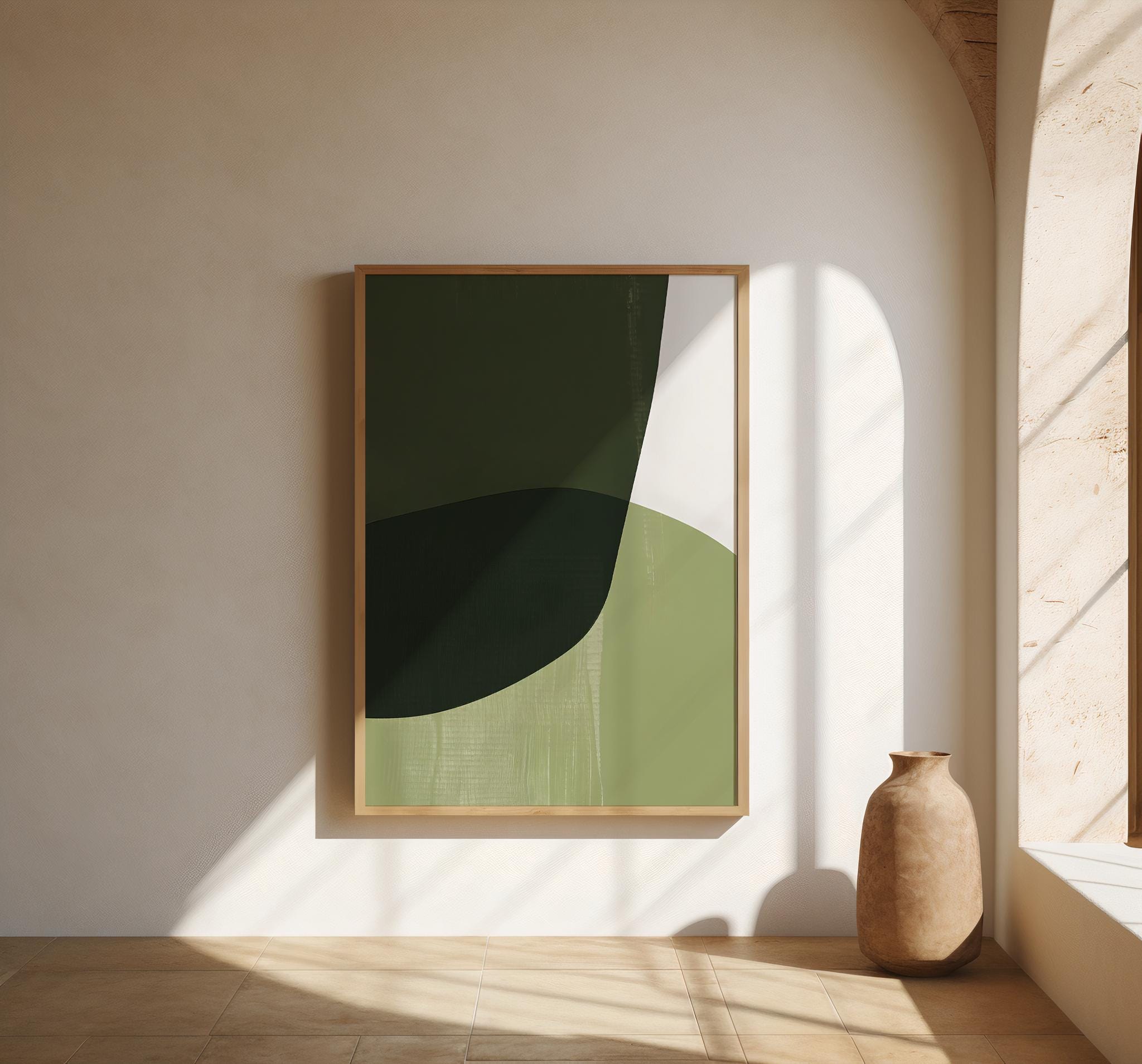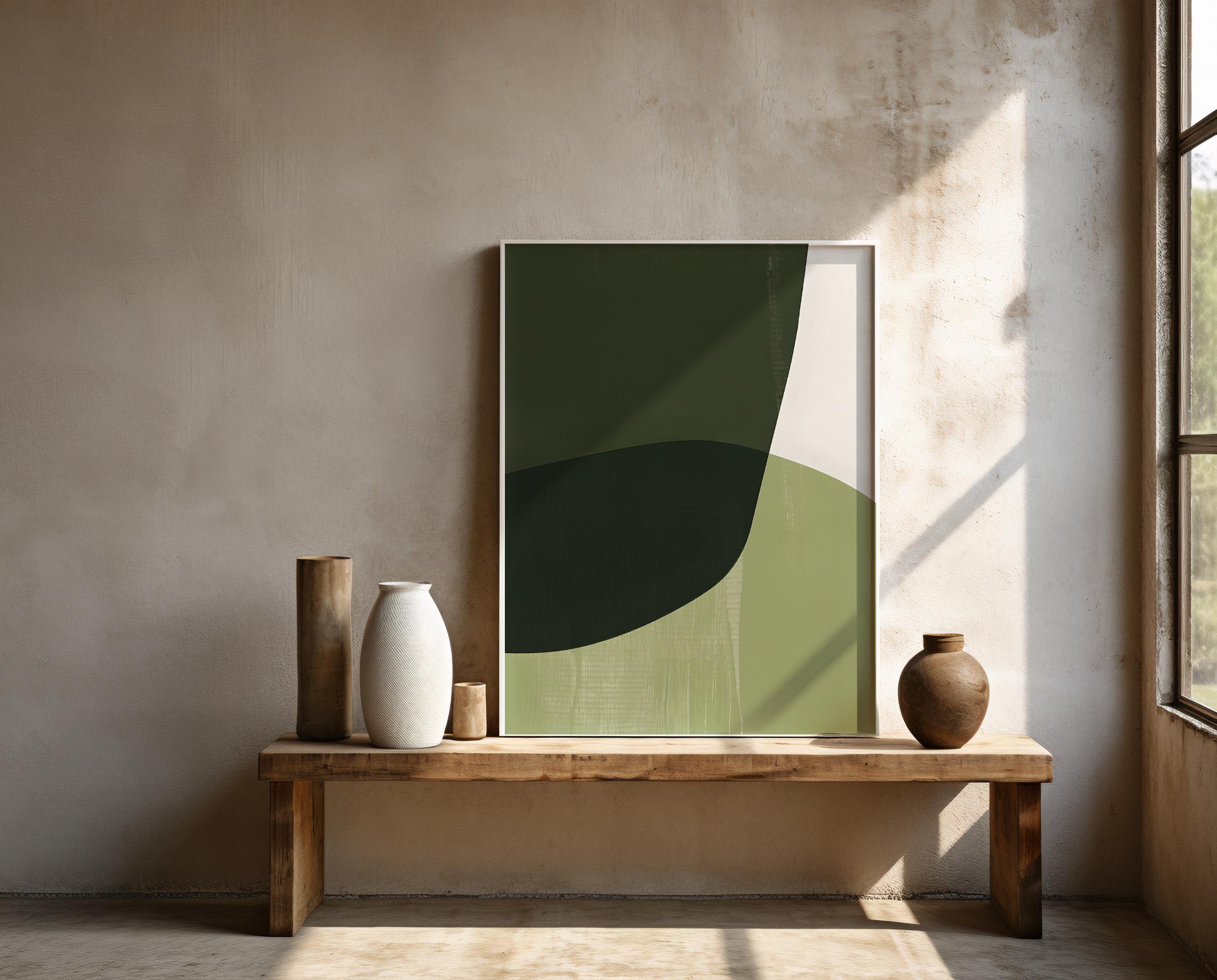 Digital Download | Create a modern, organic look in your home with this layered green abstract artwork featuring deep olive, sage, and soft textured brushstrokes. The natural palette and clean contemporary shapes make it perfect for neutral, minimalist, and organic-modern interiors.