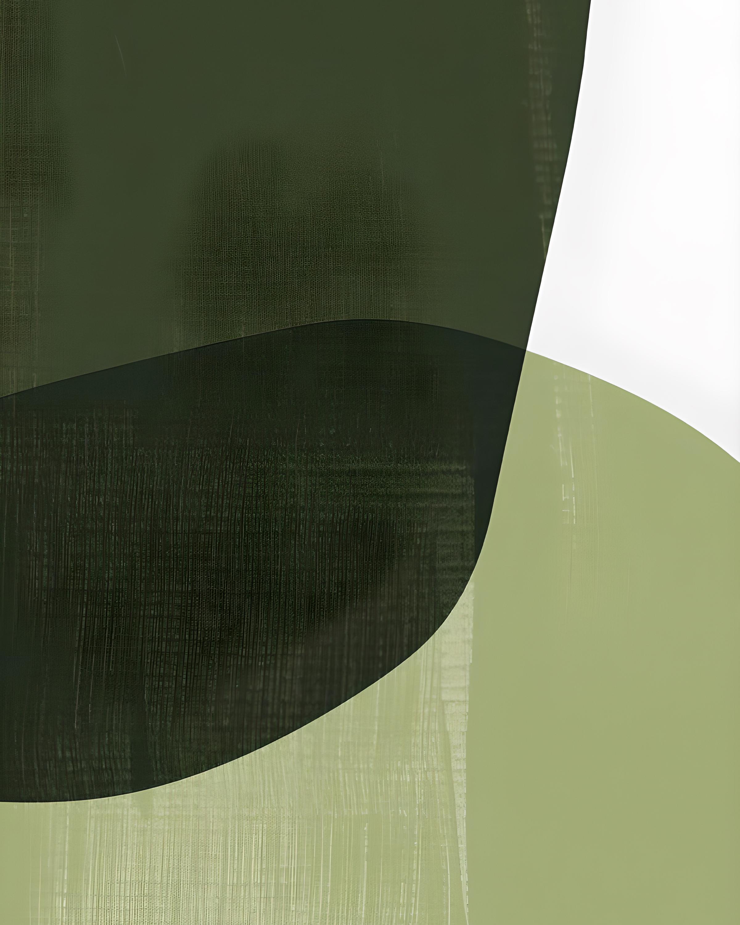Add a touch of modern sophistication to your space with this stunning abstract art print. Featuring a captivating blend of organic shapes in a soothing palette of deep olive and light sage green, this piece brings a sense of calm and natural elegance to any room. The subtle textured brushstrokes create depth and visual interest, making it a perfect focal point for a minimalist or contemporary interior.