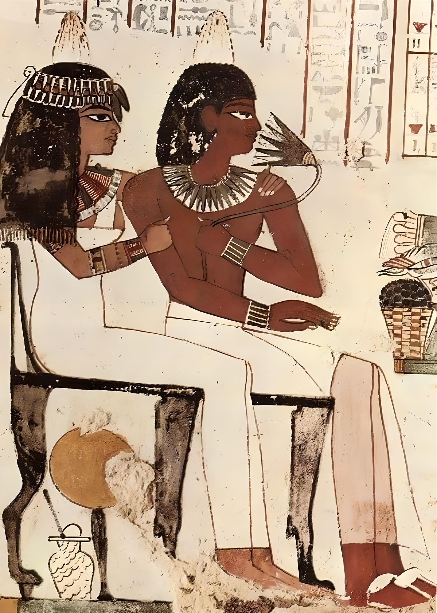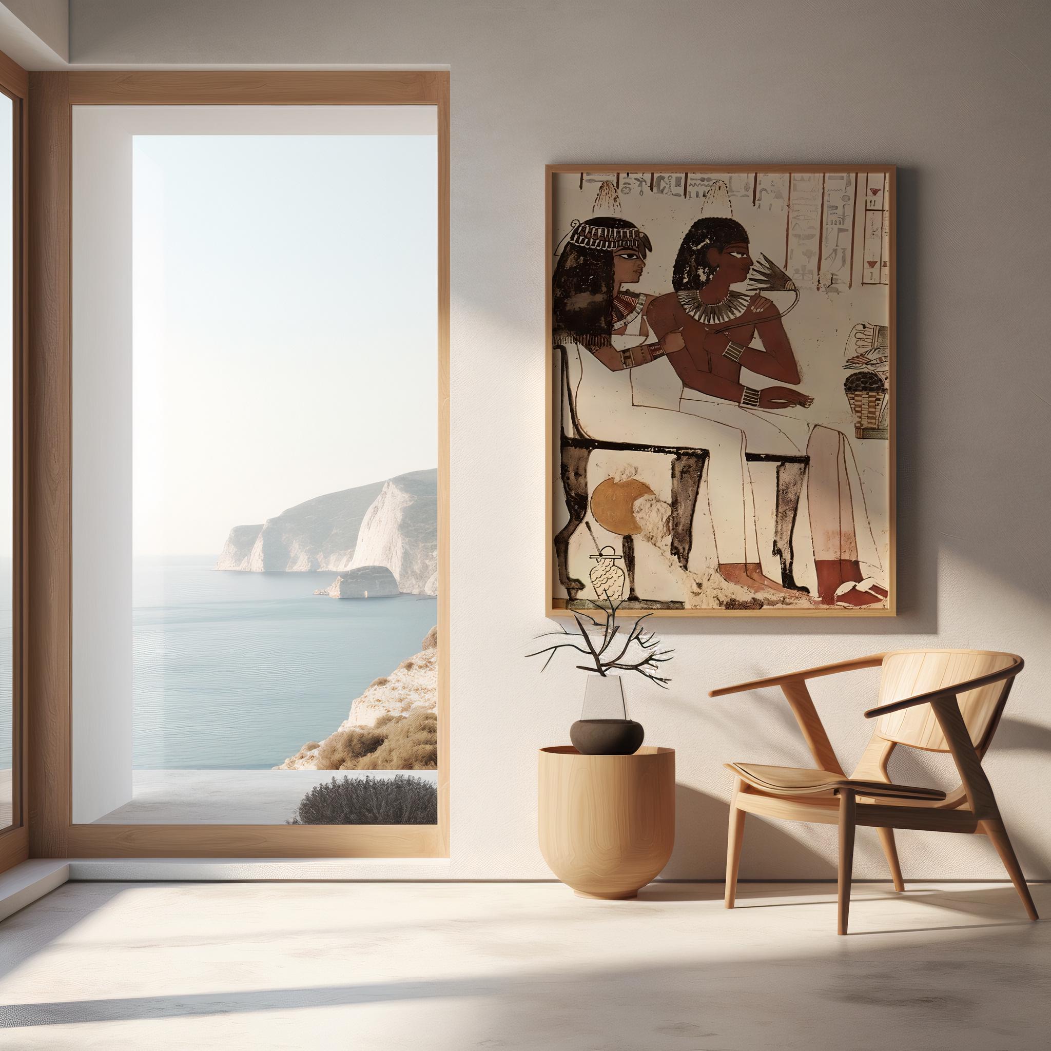 This striking artwork features a classic Ancient Egyptian scene inspired by traditional wall paintings and tomb art. Rich earthy tones, stylized figures, and historic symbolism capture the beauty and storytelling of ancient Egyptian culture.