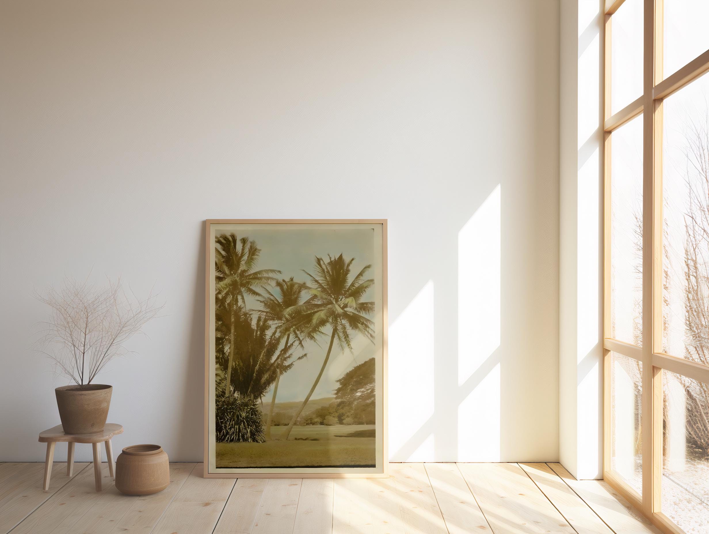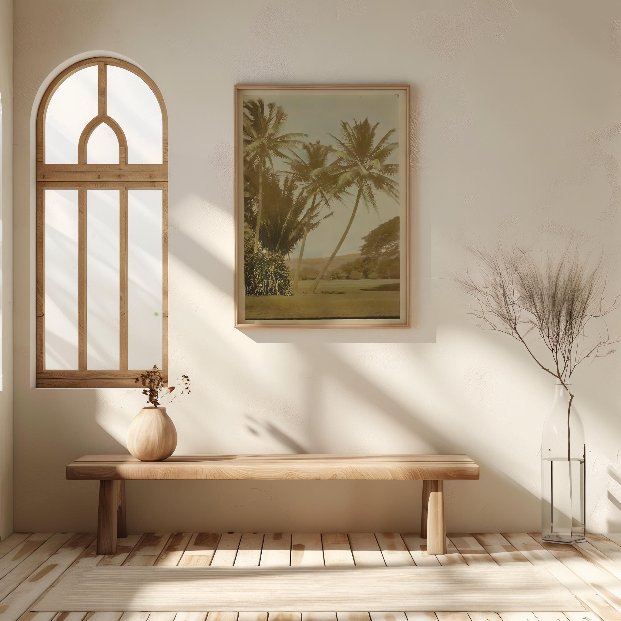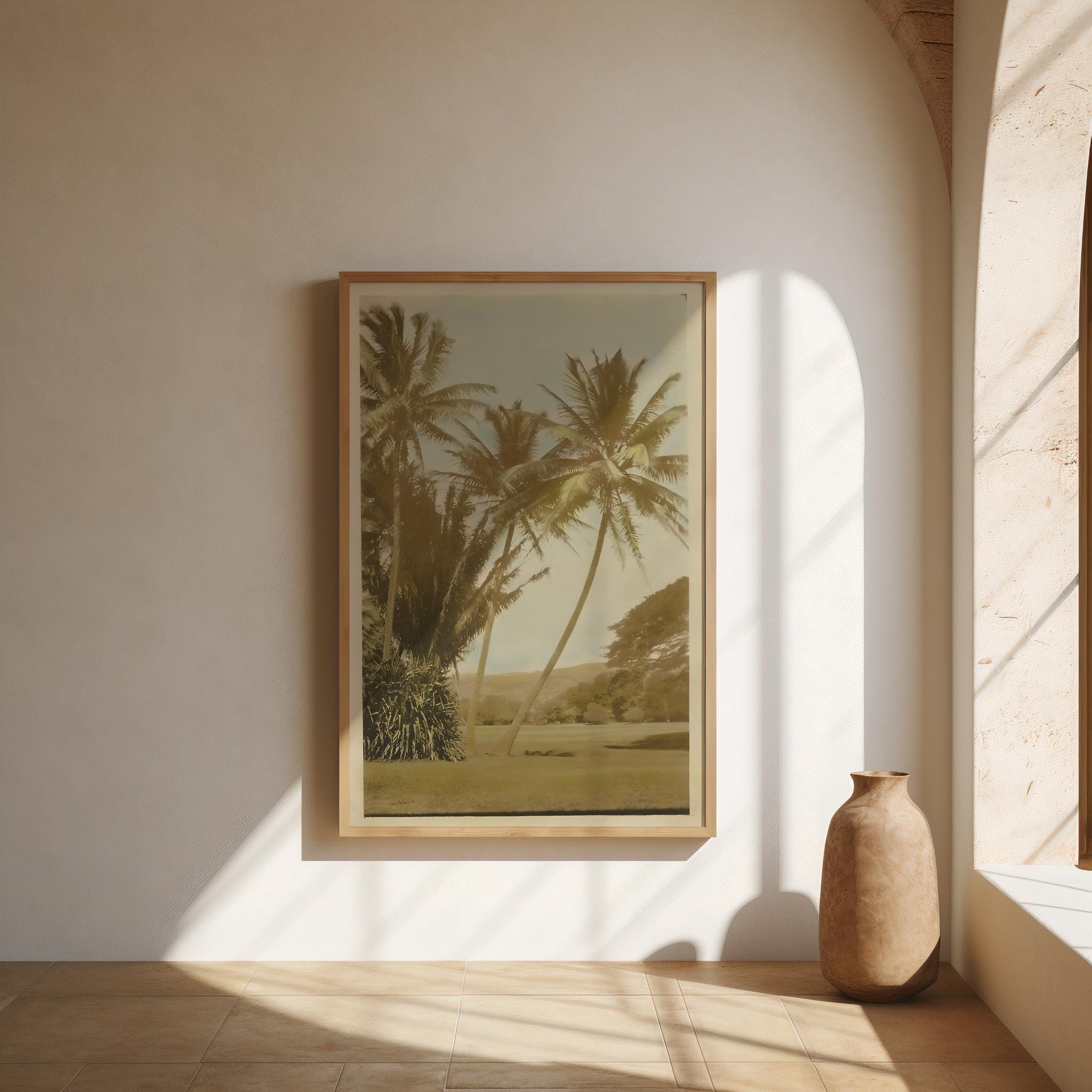 Digital Download | This digital download features a beautifully faded photograph of towering palm trees against a tranquil, sun-drenched landscape. With its soft, vintage aesthetic and muted colors, this print evokes a sense of nostalgia and peaceful tropical escape.