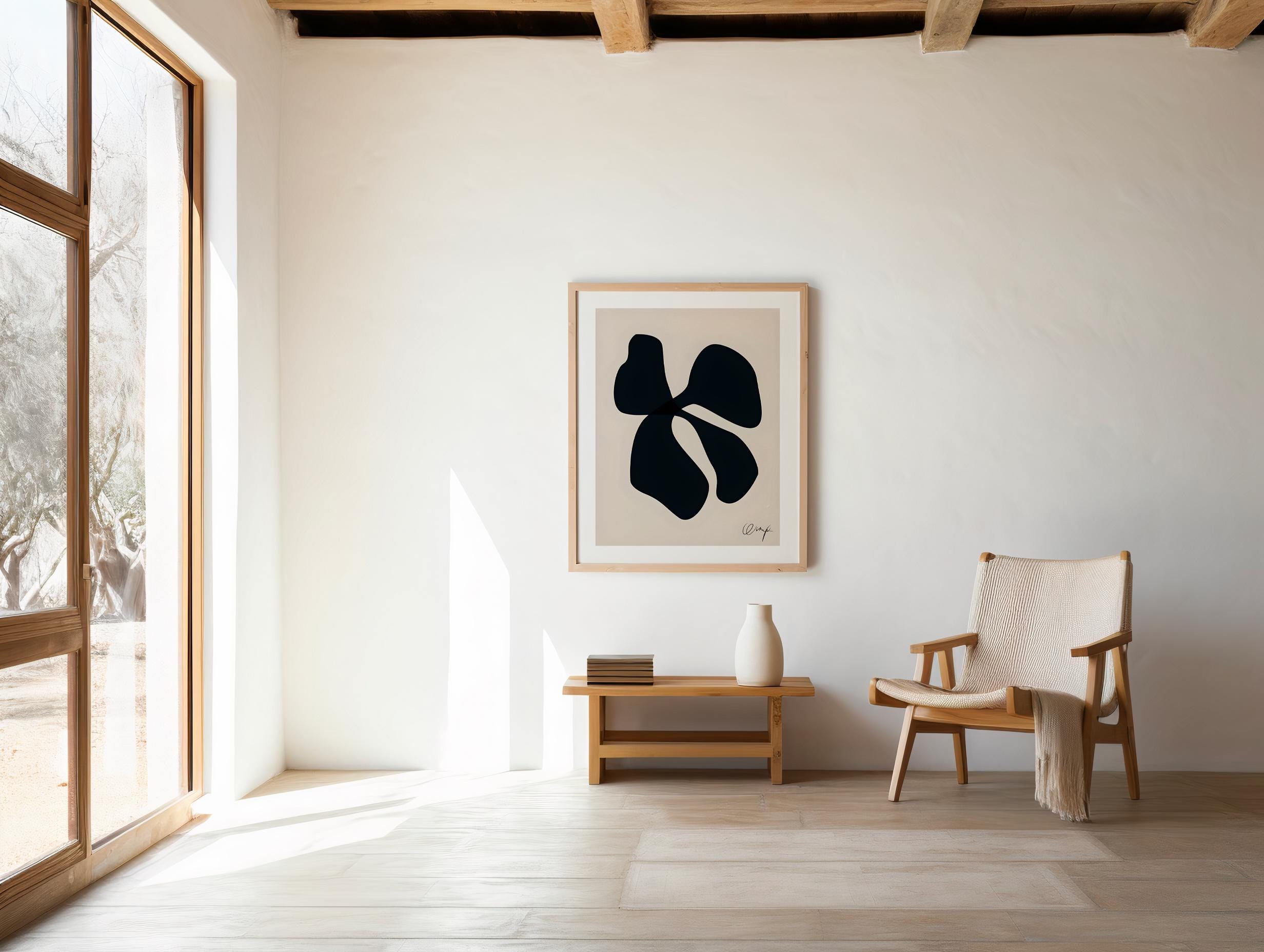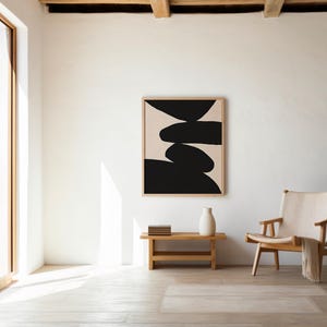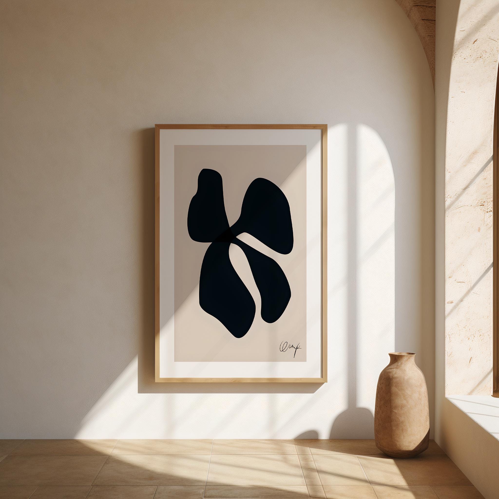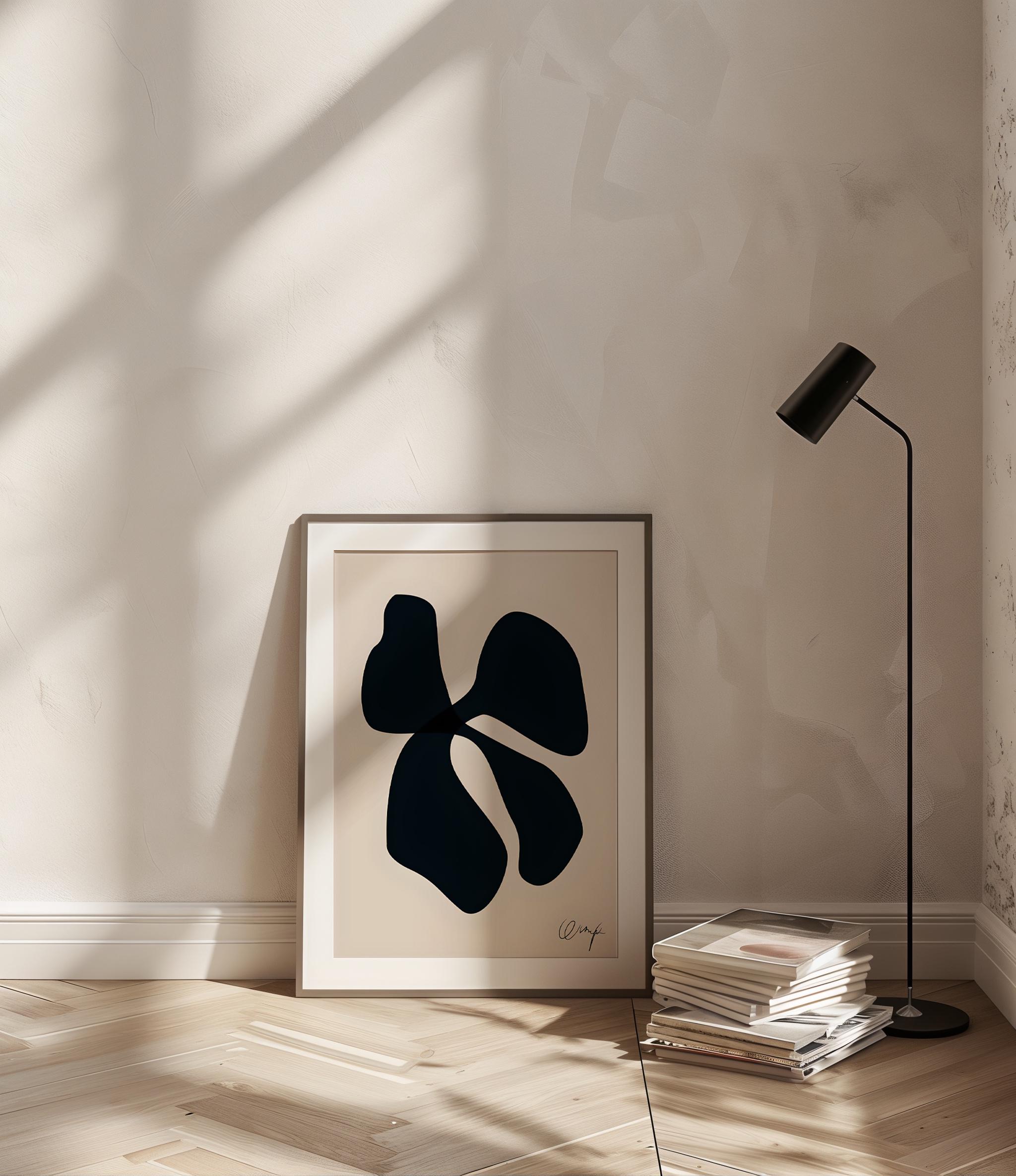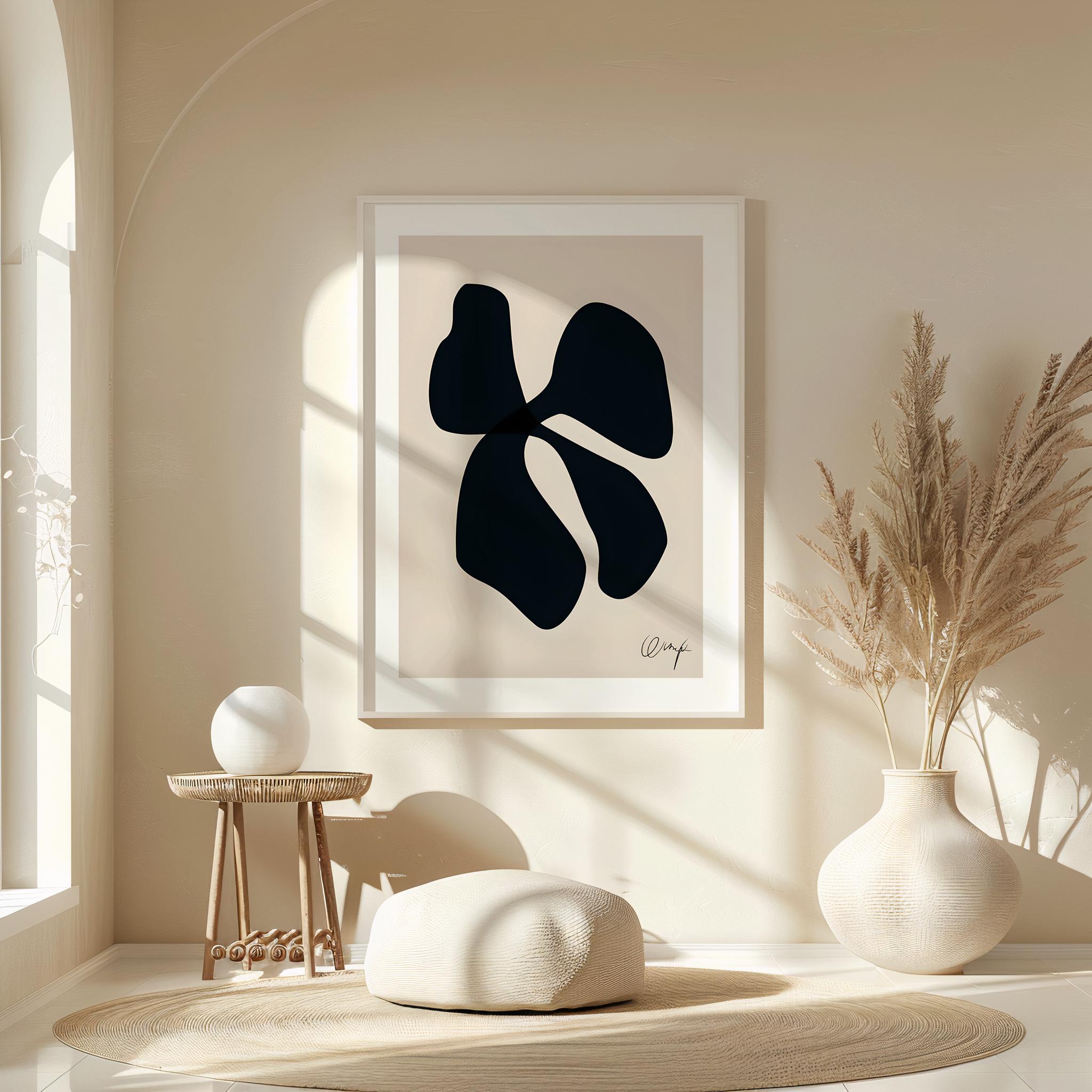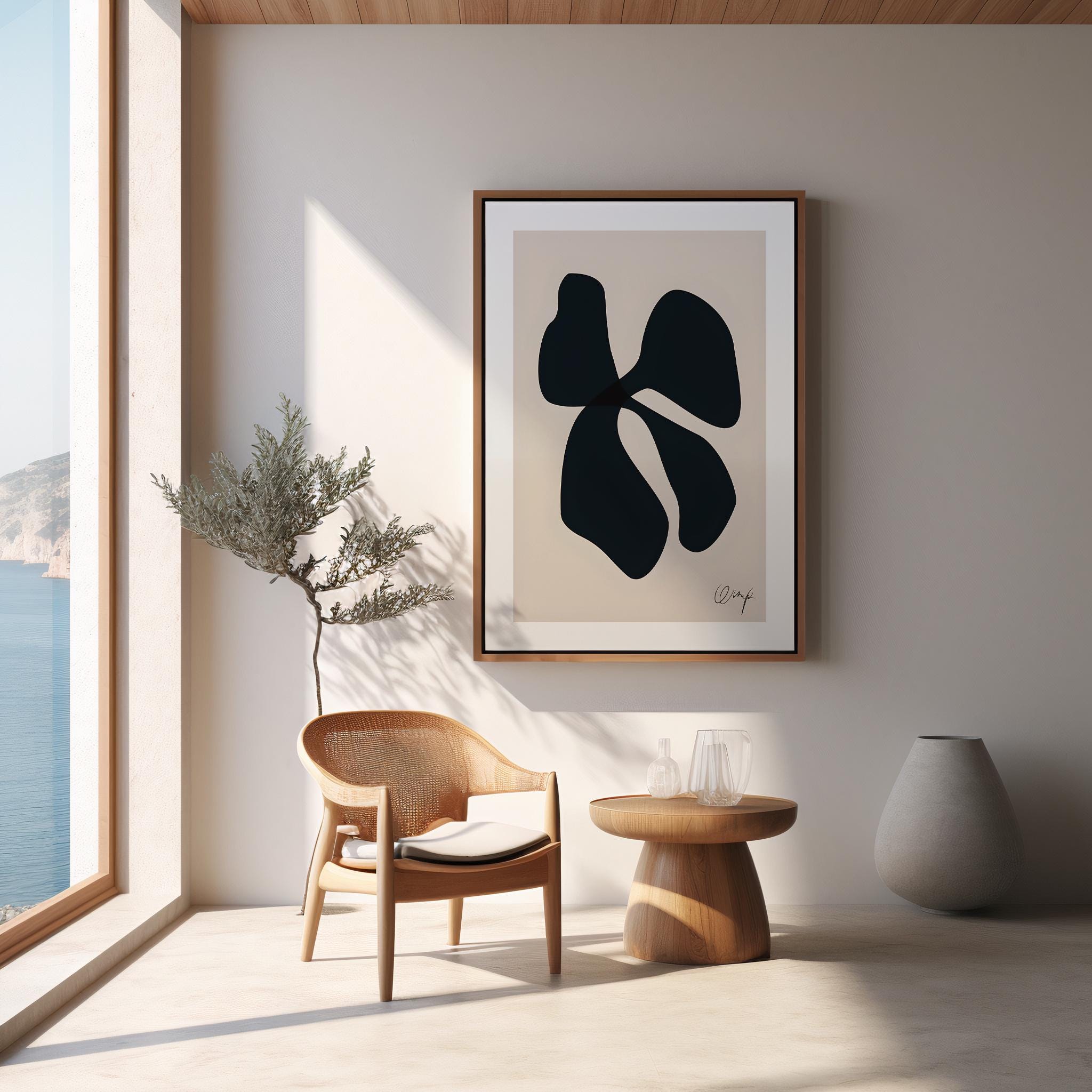 Digital Download | Introduce a sense of modern tranquility to your home with this stunning minimalist art print. Featuring a bold, abstract floral shape in deep black against a warm beige background, this piece embodies the elegance of Japandi and Scandinavian design.