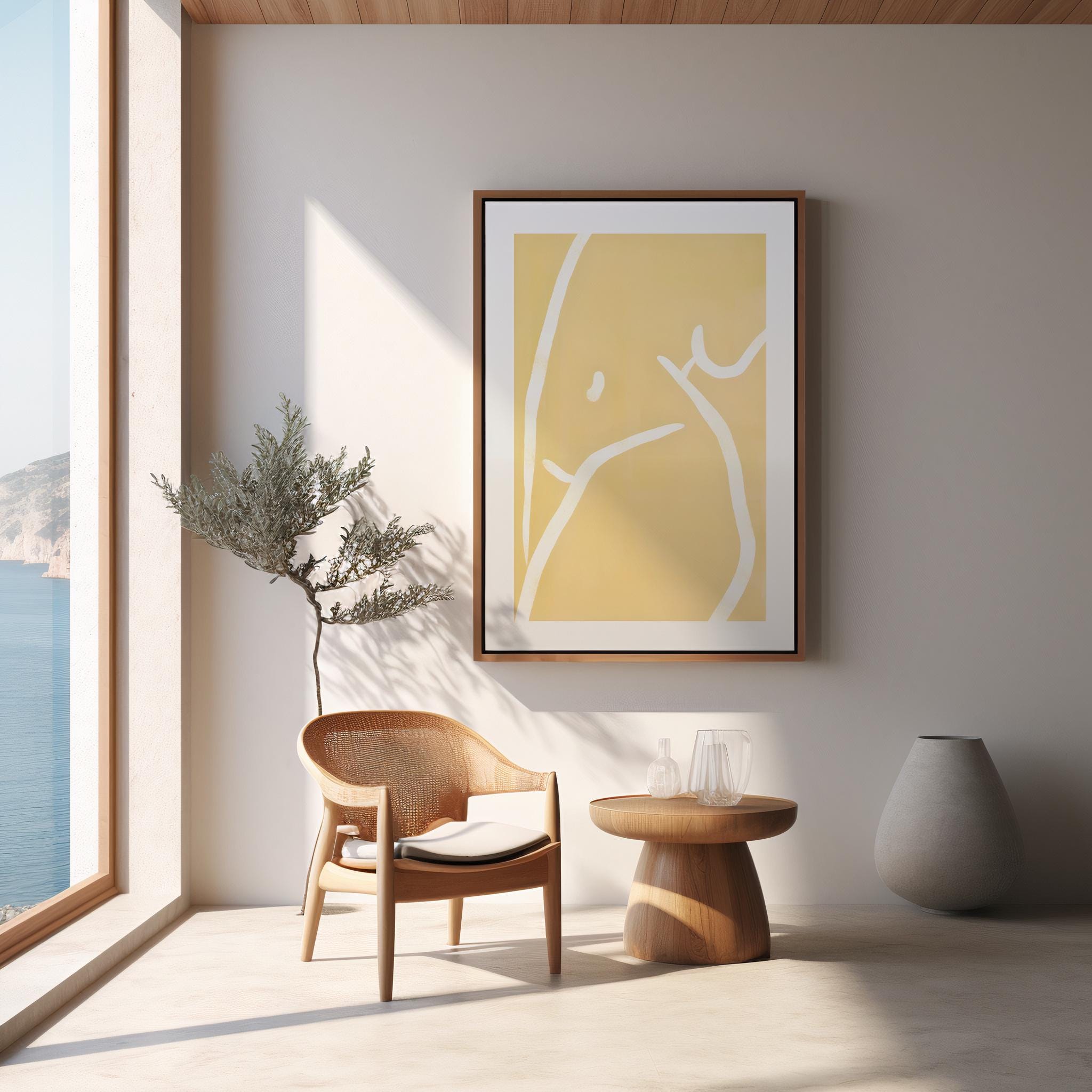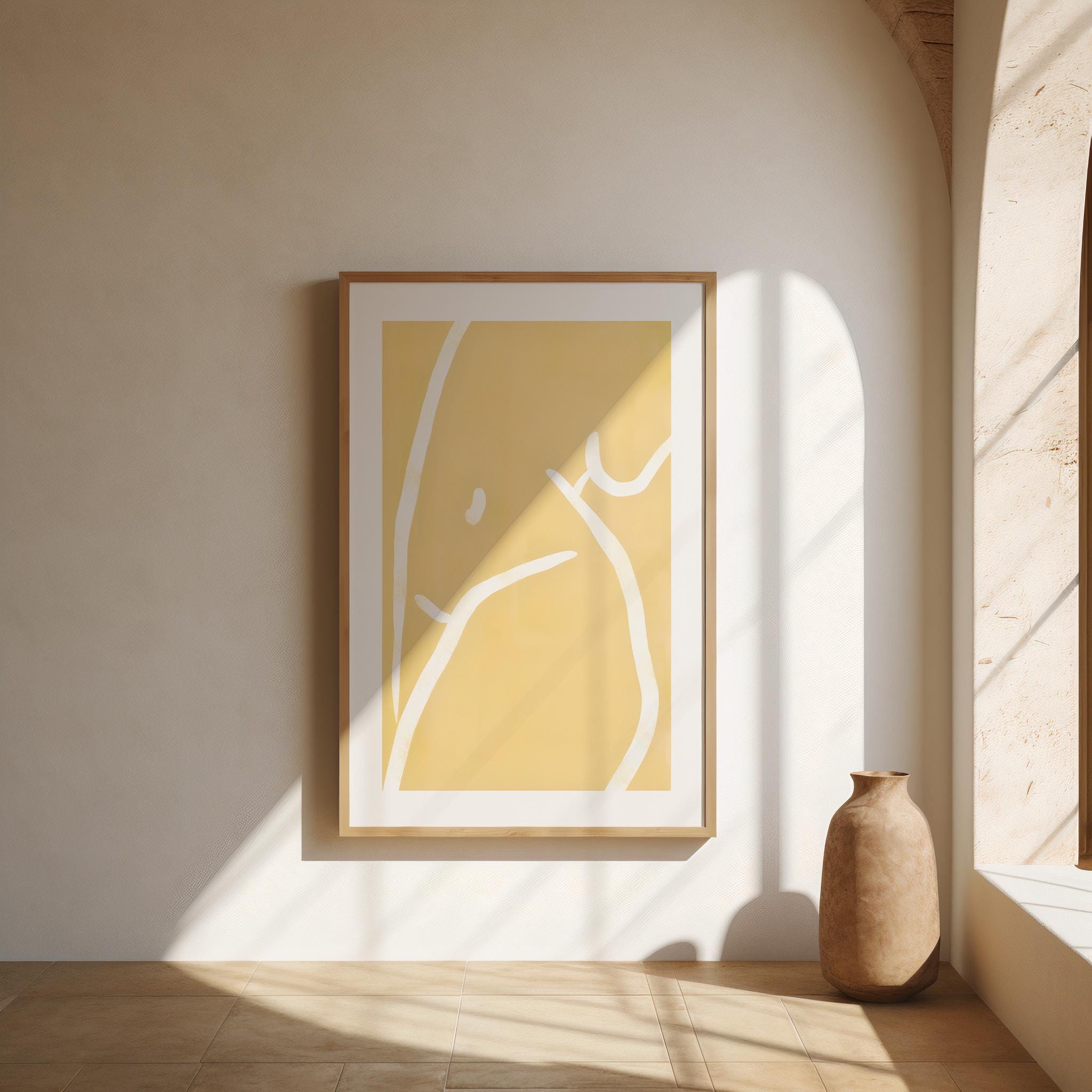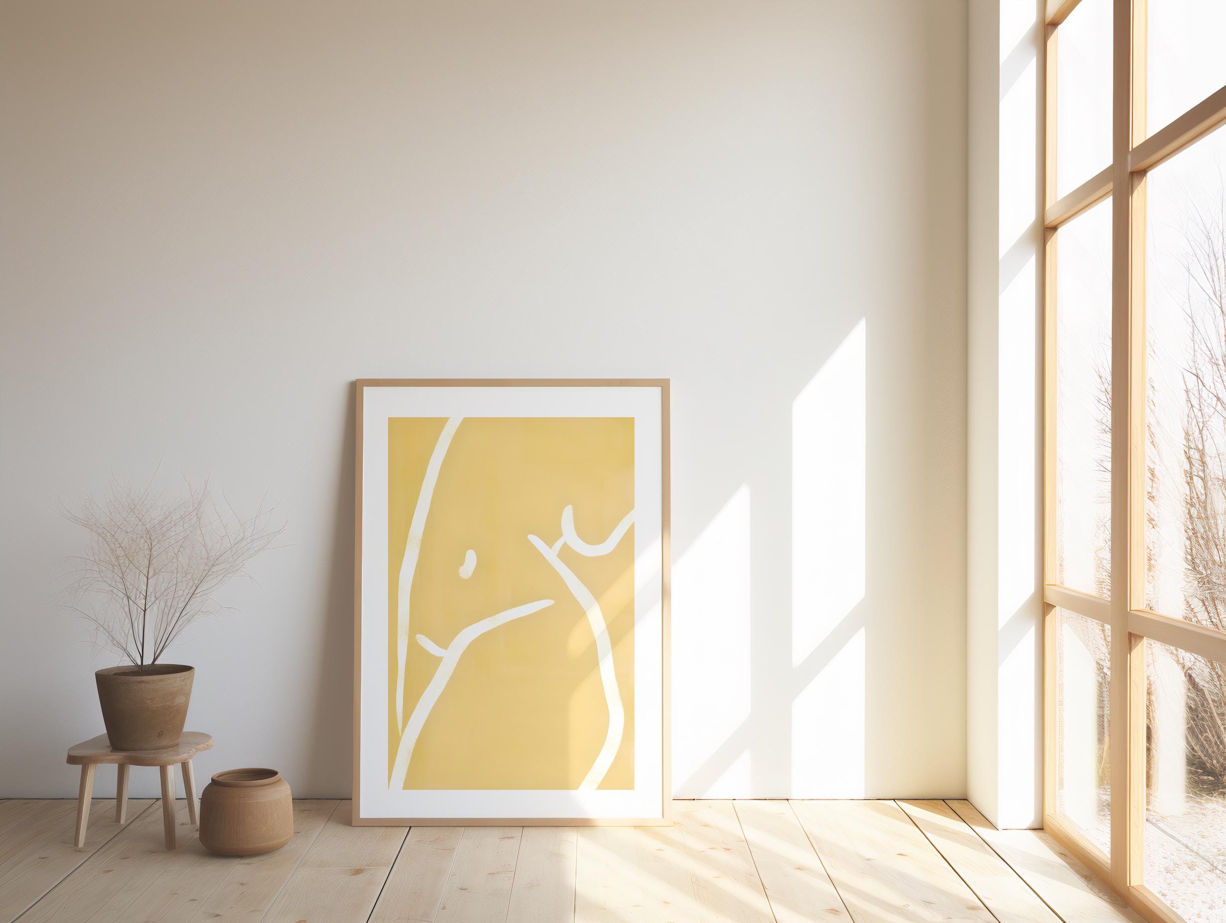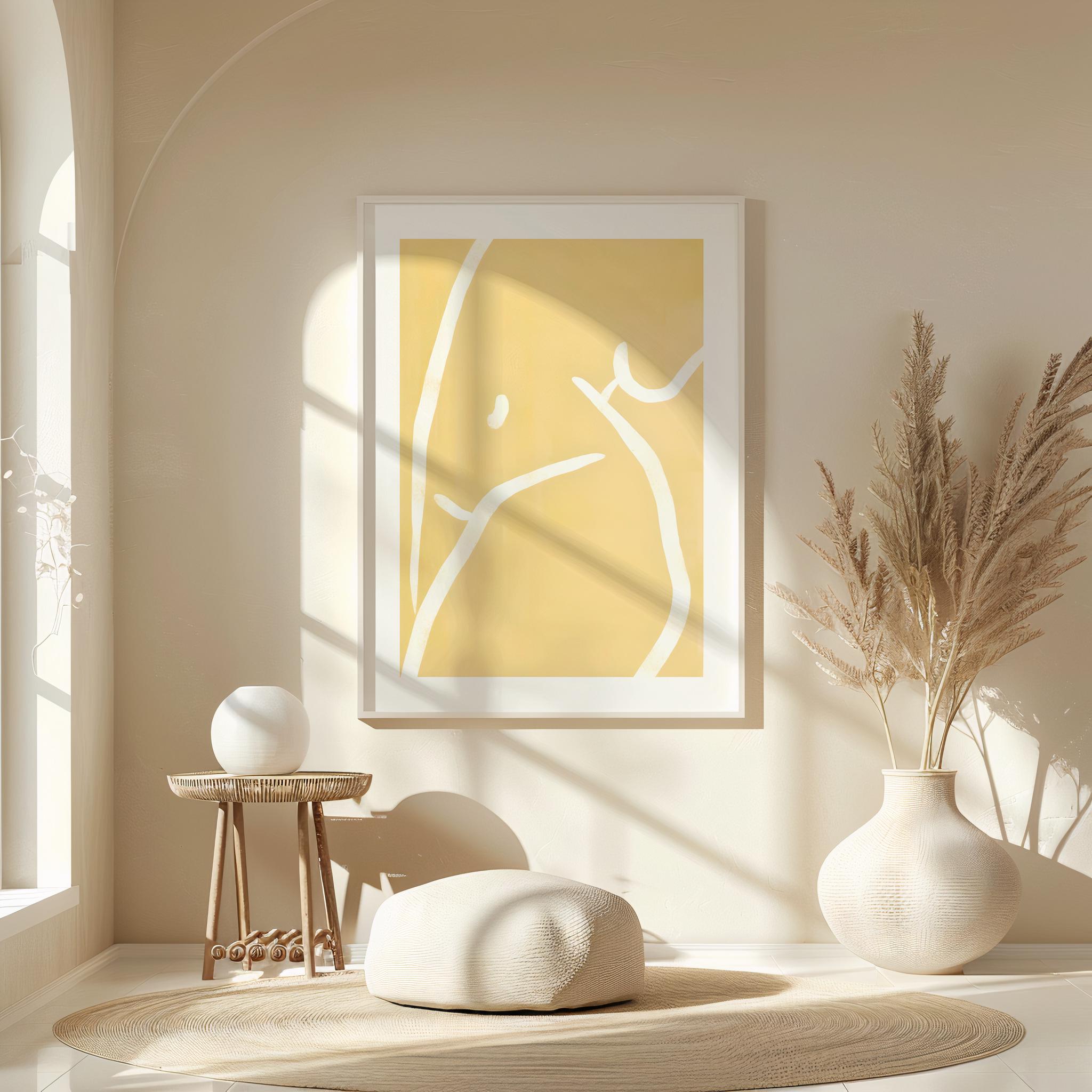 Digital Download | Celebrate the beauty of the human form with this elegant and minimalist line art print. Featuring an abstract depiction of the female figure in a soft white against a warm, sunny yellow background, this artwork exudes a sense of gentle confidence and modern simplicity.