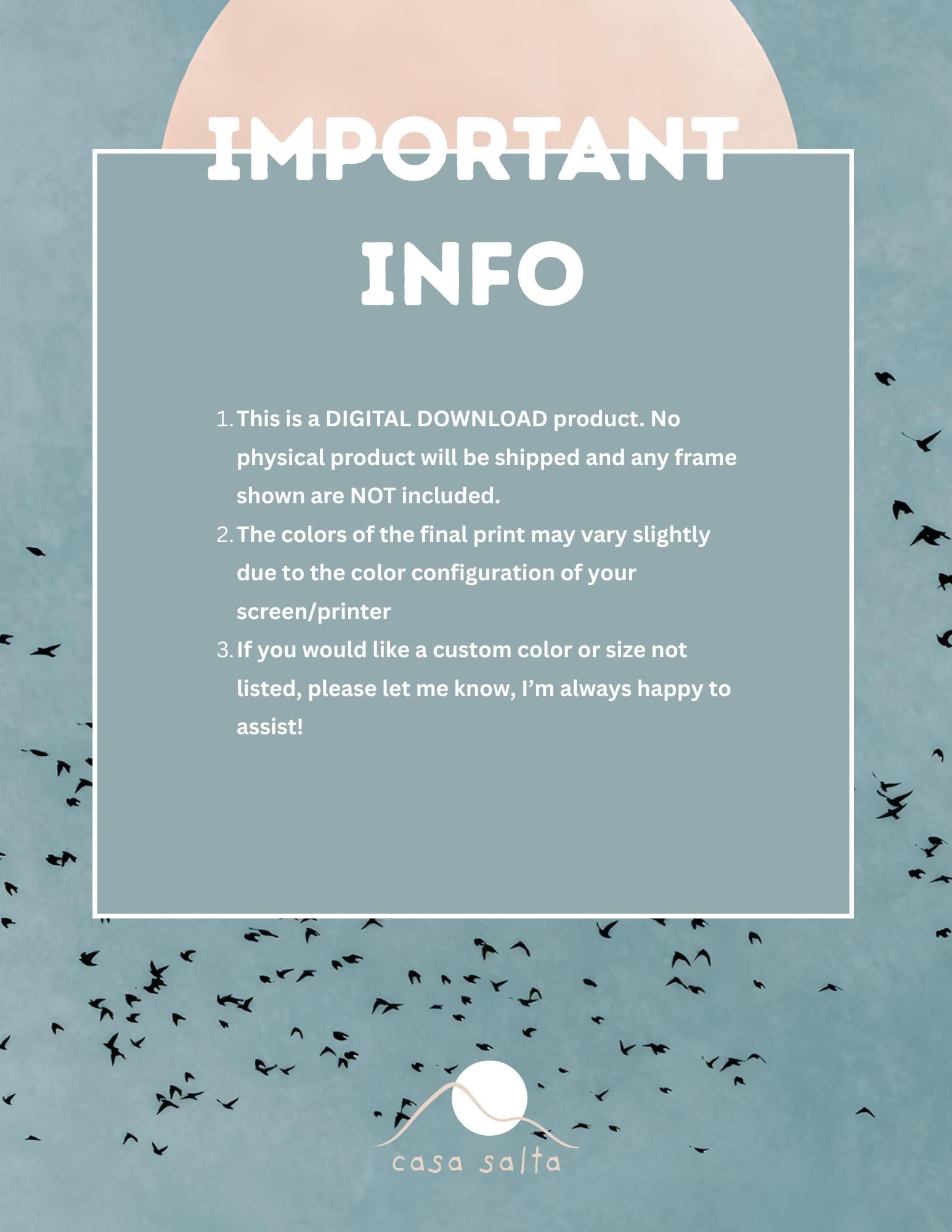 How It Works: - Purchase the listing - Get access to the google drive - Print at home or your favorite print shop - Frame and enjoy!