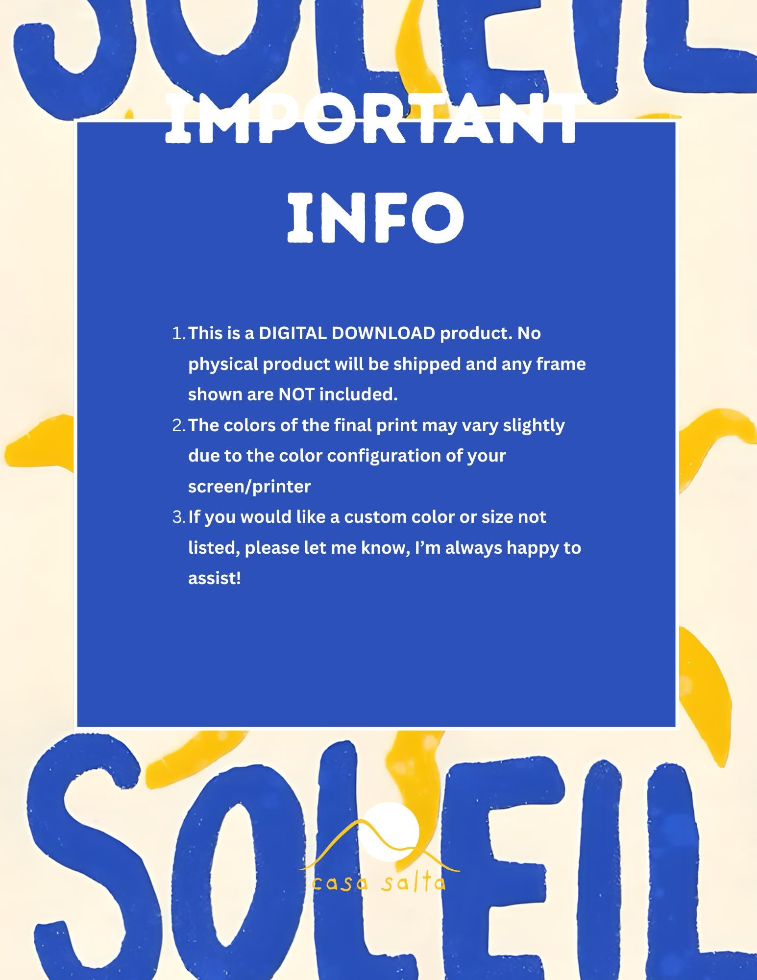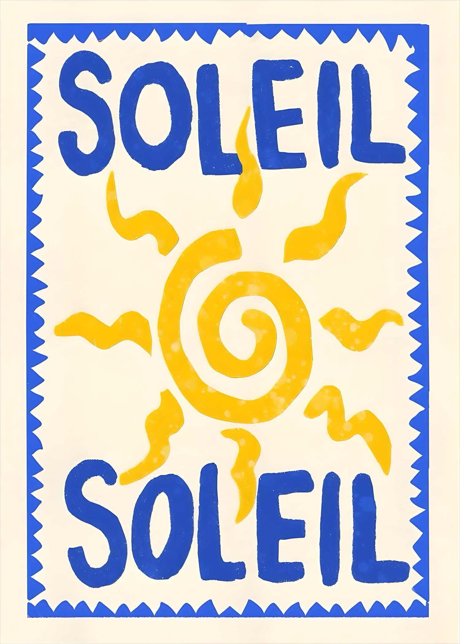 Bring a burst of sunshine into your home with this playful "Soleil" art print. Inspired by the iconic cut-out style of Henri Matisse, this piece captures the joyful, carefree spirit of a summer on the French Riviera.