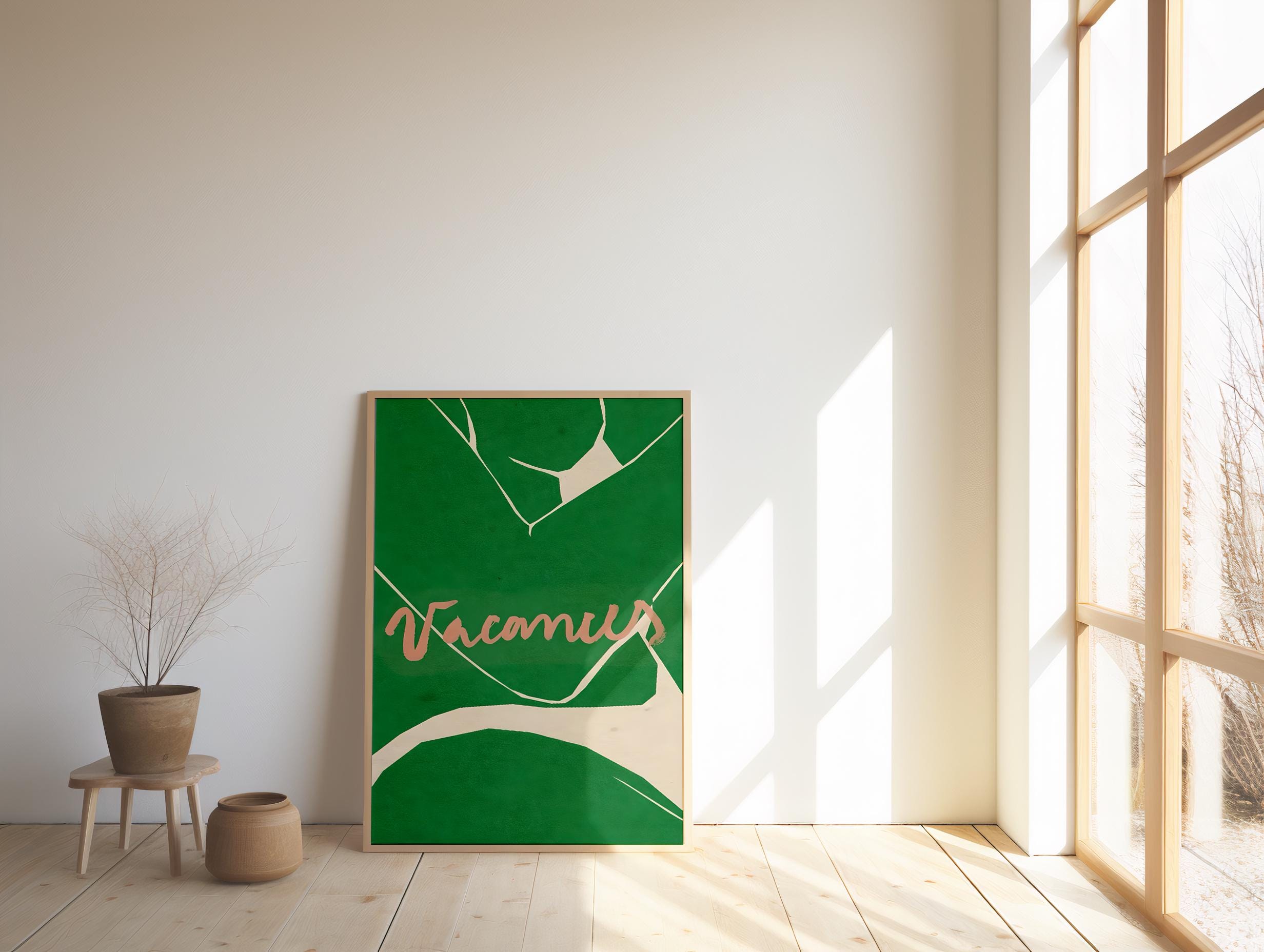 Elevate your space with this chic “Vacances” French Quote Print — a Matisse-inspired abstract artwork blending vibrant green tones with soft pink and cream accents for effortless style. This modern and minimalist design brings a touch of European holiday flair to your home, making it perfect for living rooms, bedrooms, home offices or gallery walls.