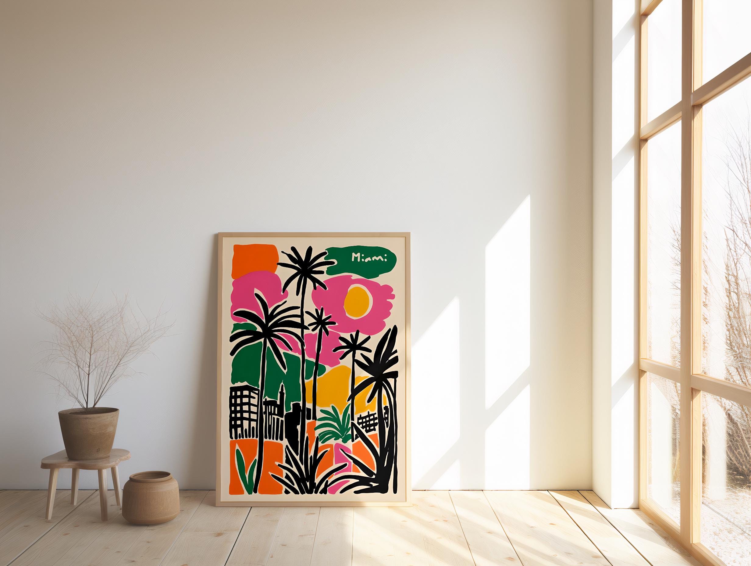 Digital Download | Instantly bring the vibrant, sun-soaked energy of Miami into your home with this stunning abstract art print! Featuring bold colors, stylized palm trees, and a modern aesthetic, this printable wall art is the perfect way to add a pop of personality to your living room, bedroom, office, or gallery wall.