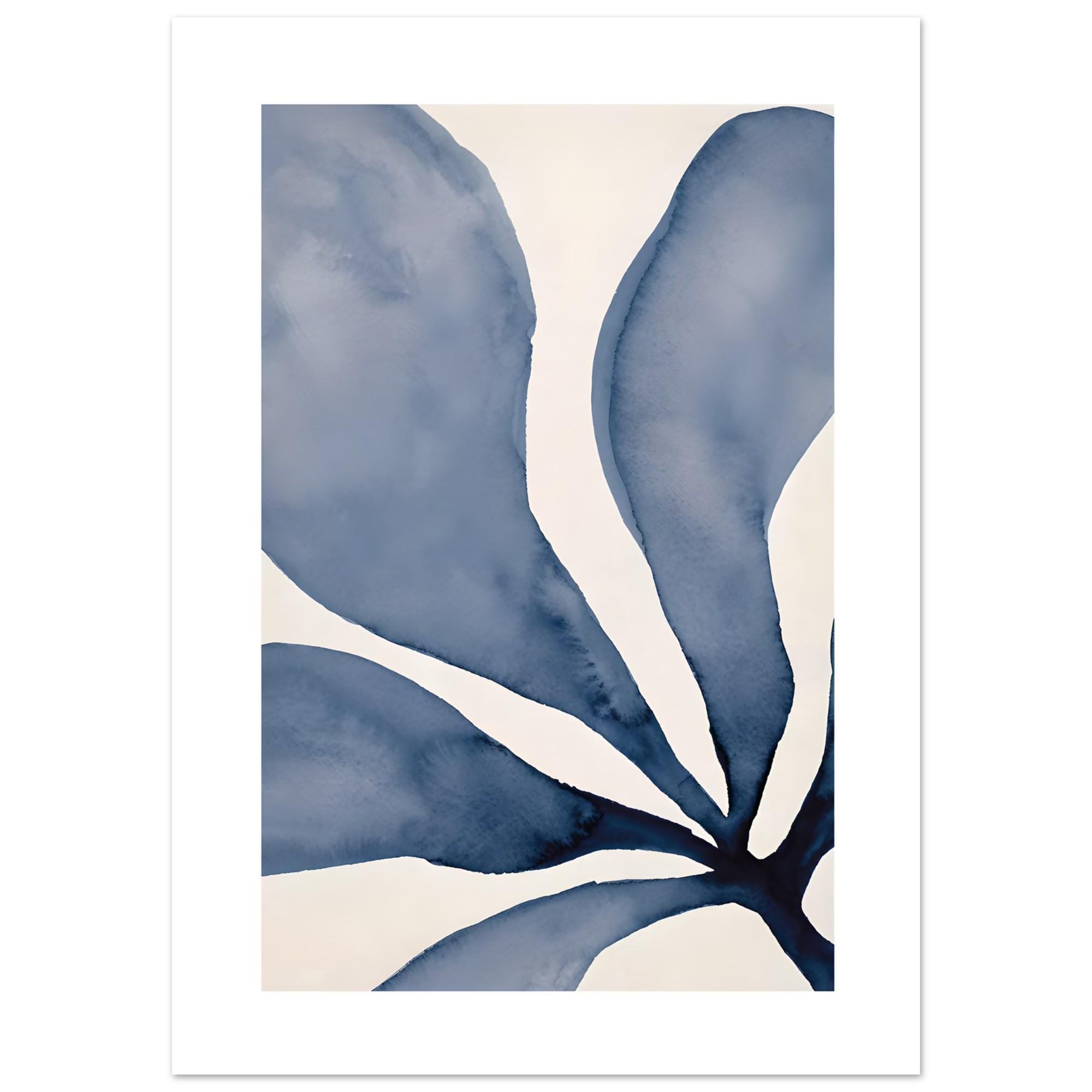 This navy blue botanical wall art features an oversized, cropped leaf form rendered in rich indigo and deep watercolor tones. The bold composition and generous negative space create a striking yet refined focal point for modern interiors.