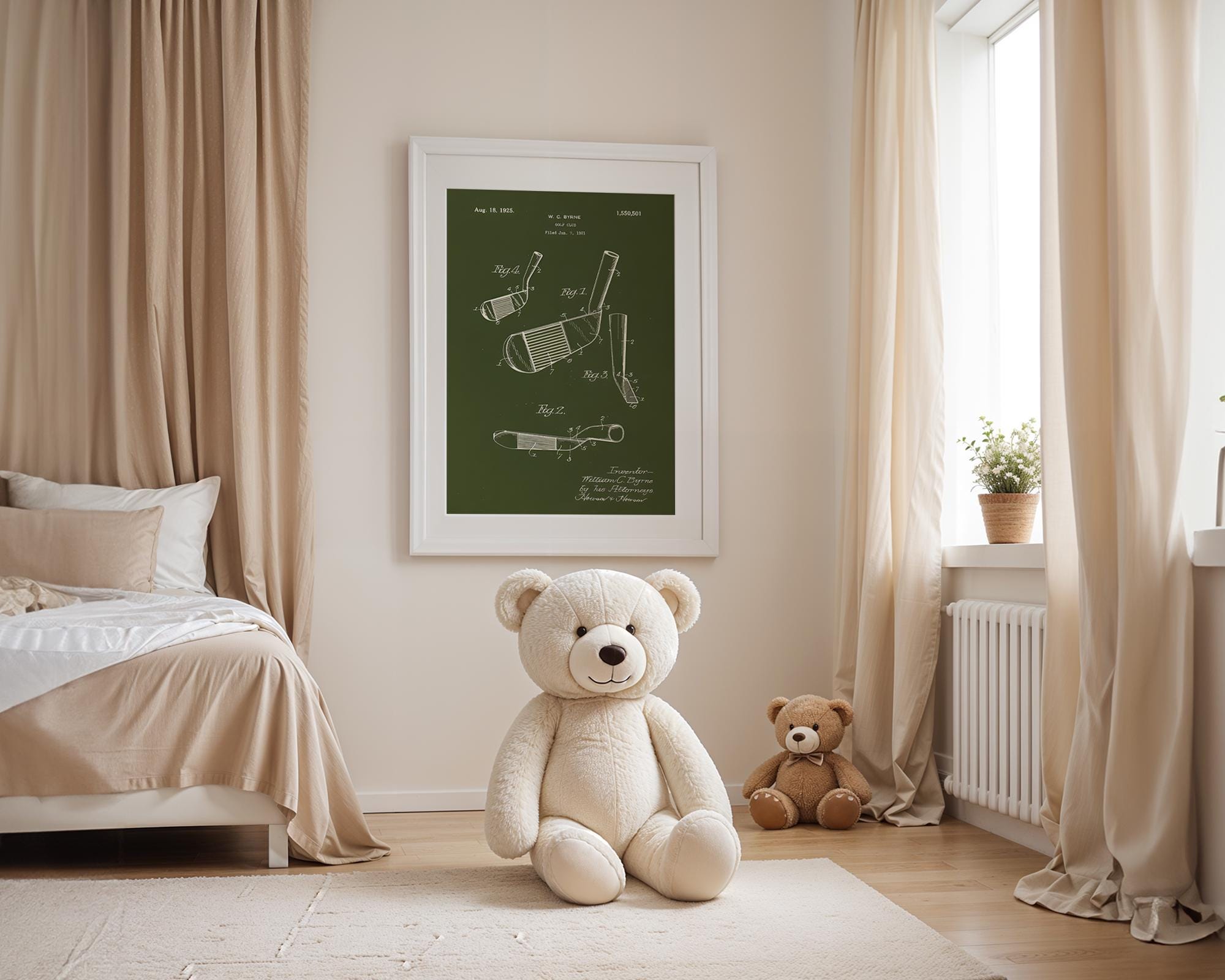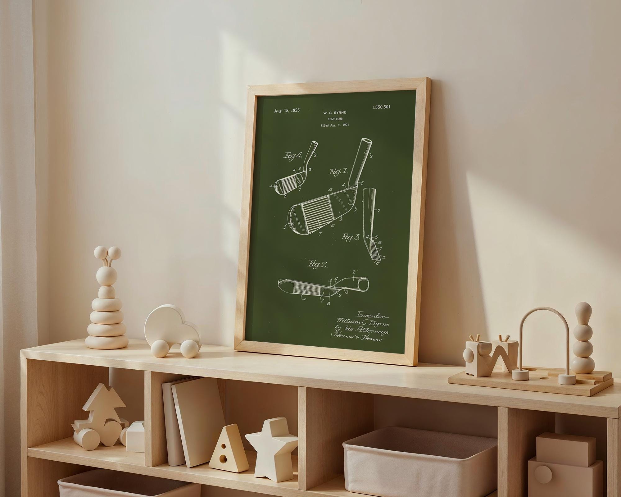 For the Golf-Themed Nursery: An unexpectedly charming and smart touch for a baby's room. Its clean lines and vintage aesthetic offer a refined yet playful feel, making it a unique alternative to traditional nursery art that will grow with your child.
