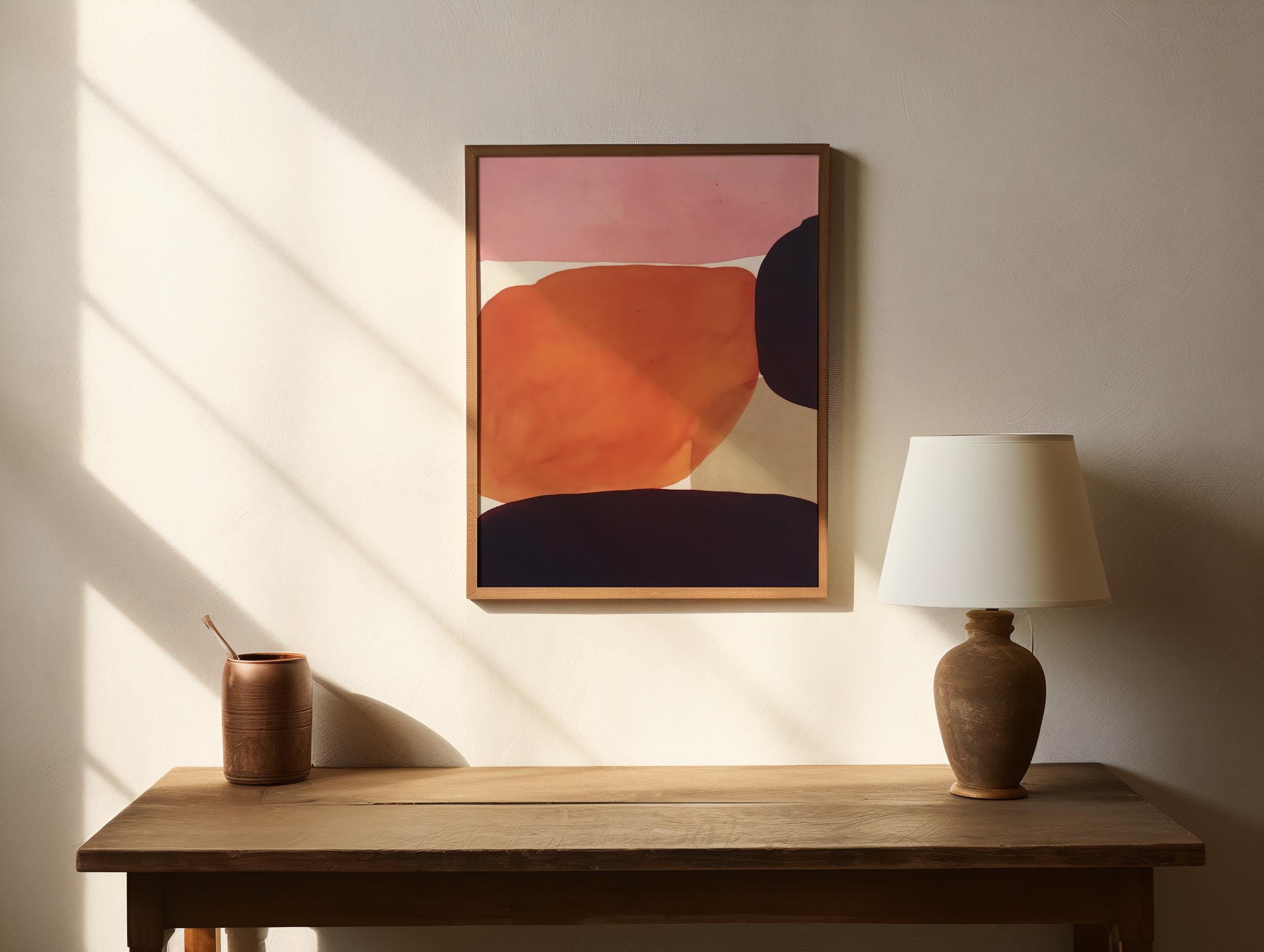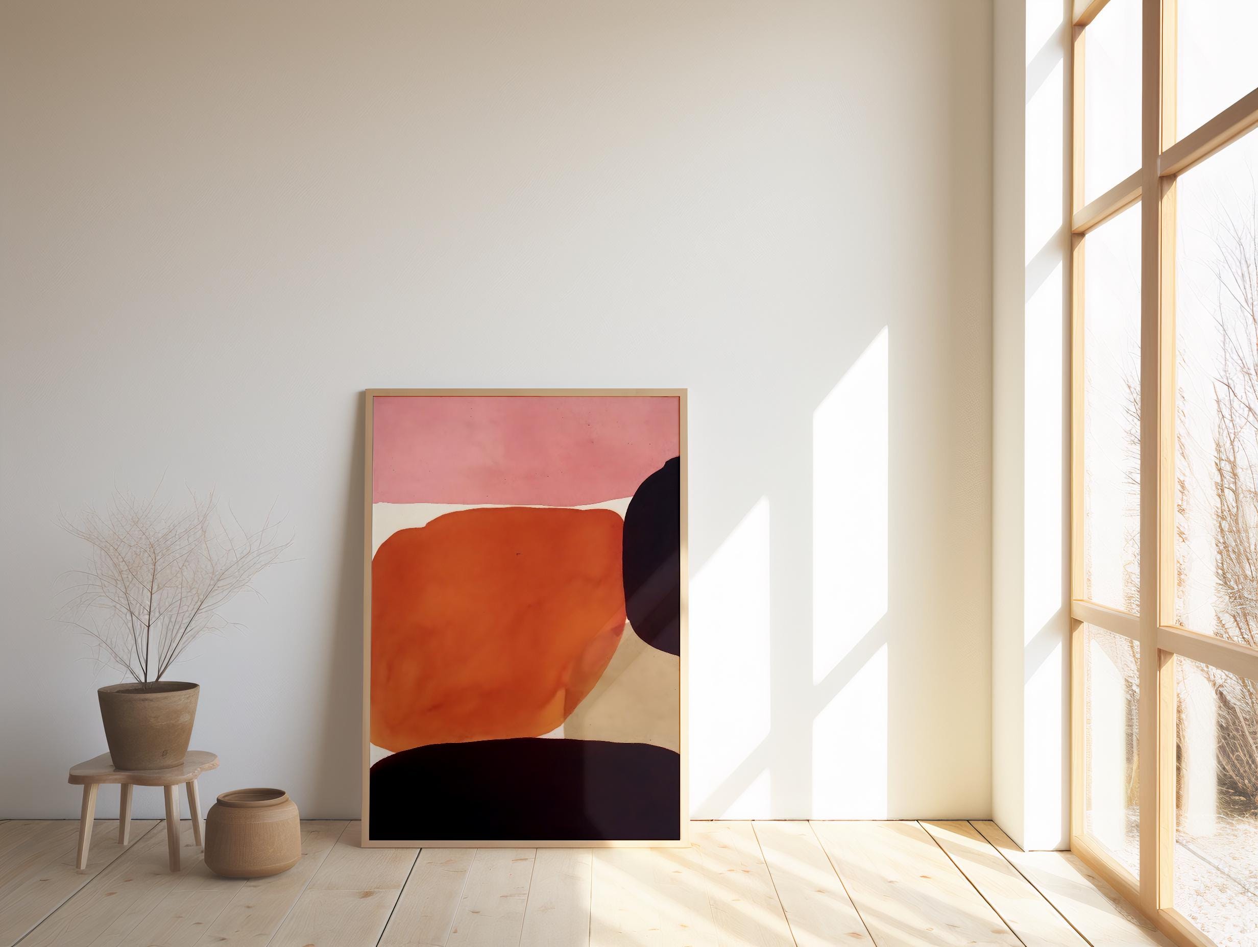Elevate your space with this fine art giclée print featuring warm color block shapes in pink, terracotta, and deep brown. Inspired by mid-century modern aesthetics, this minimalist abstract piece creates a sophisticated yet calming atmosphere—perfect for living rooms, bedrooms, studios, and offices.