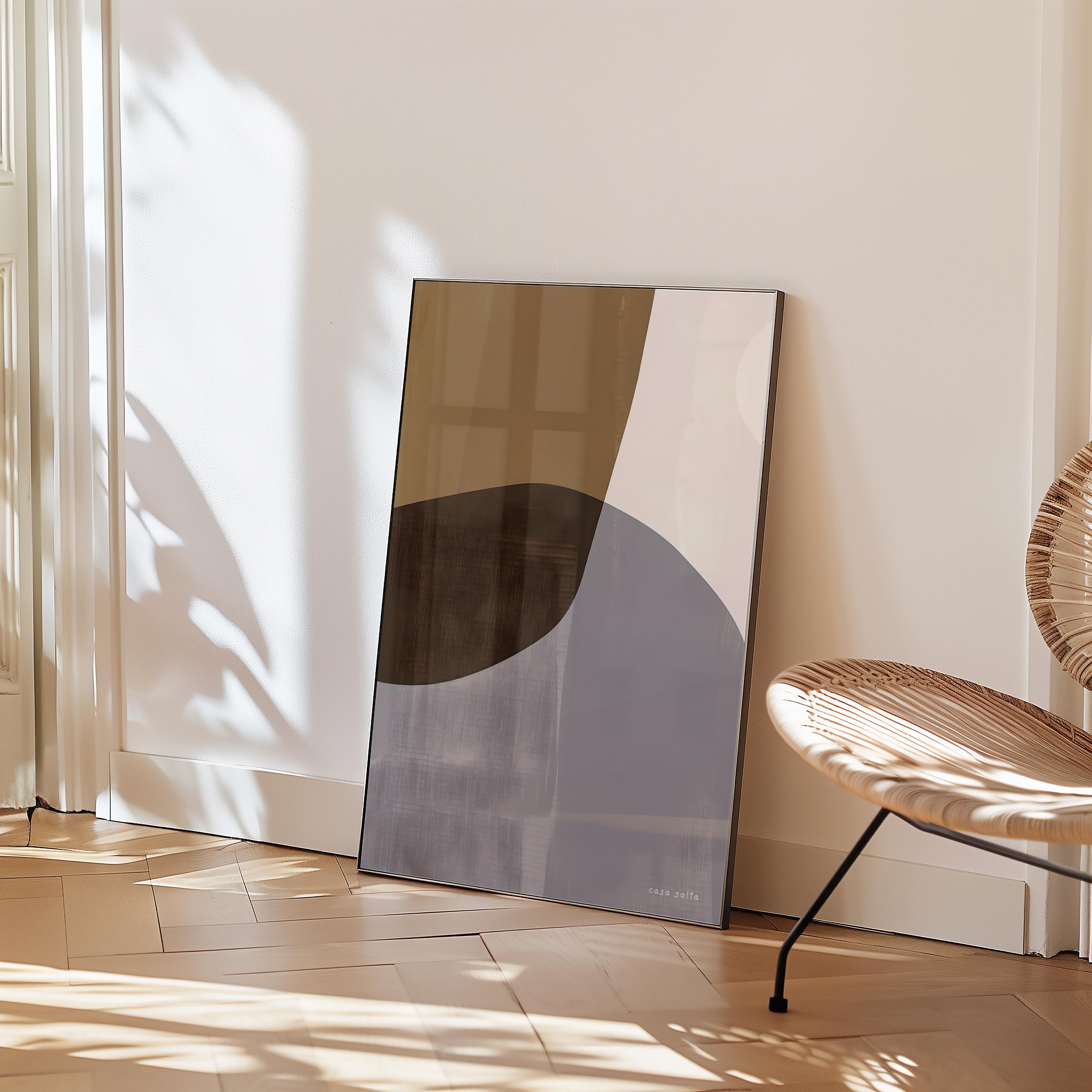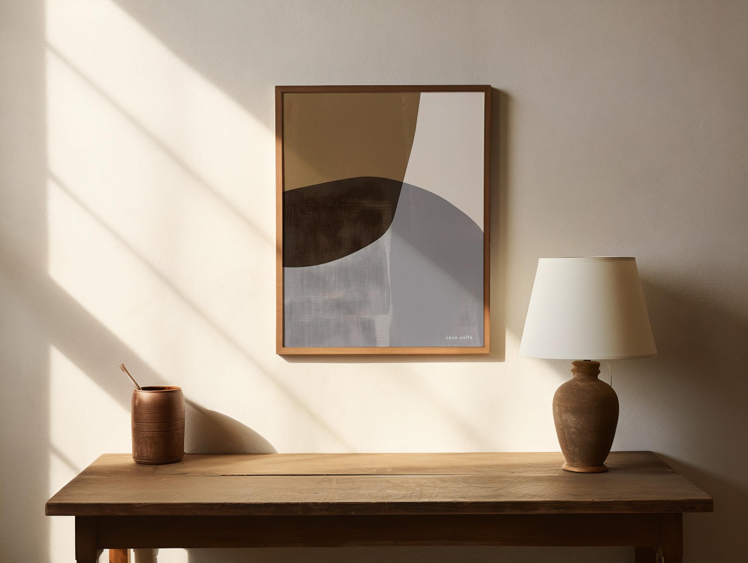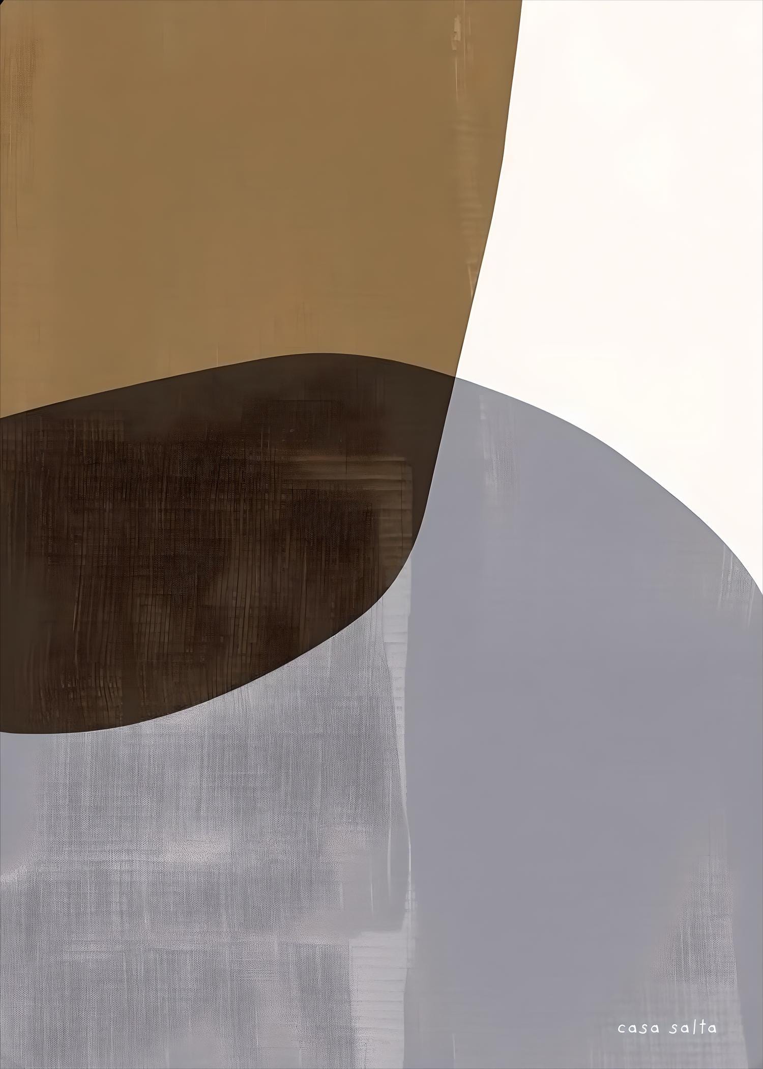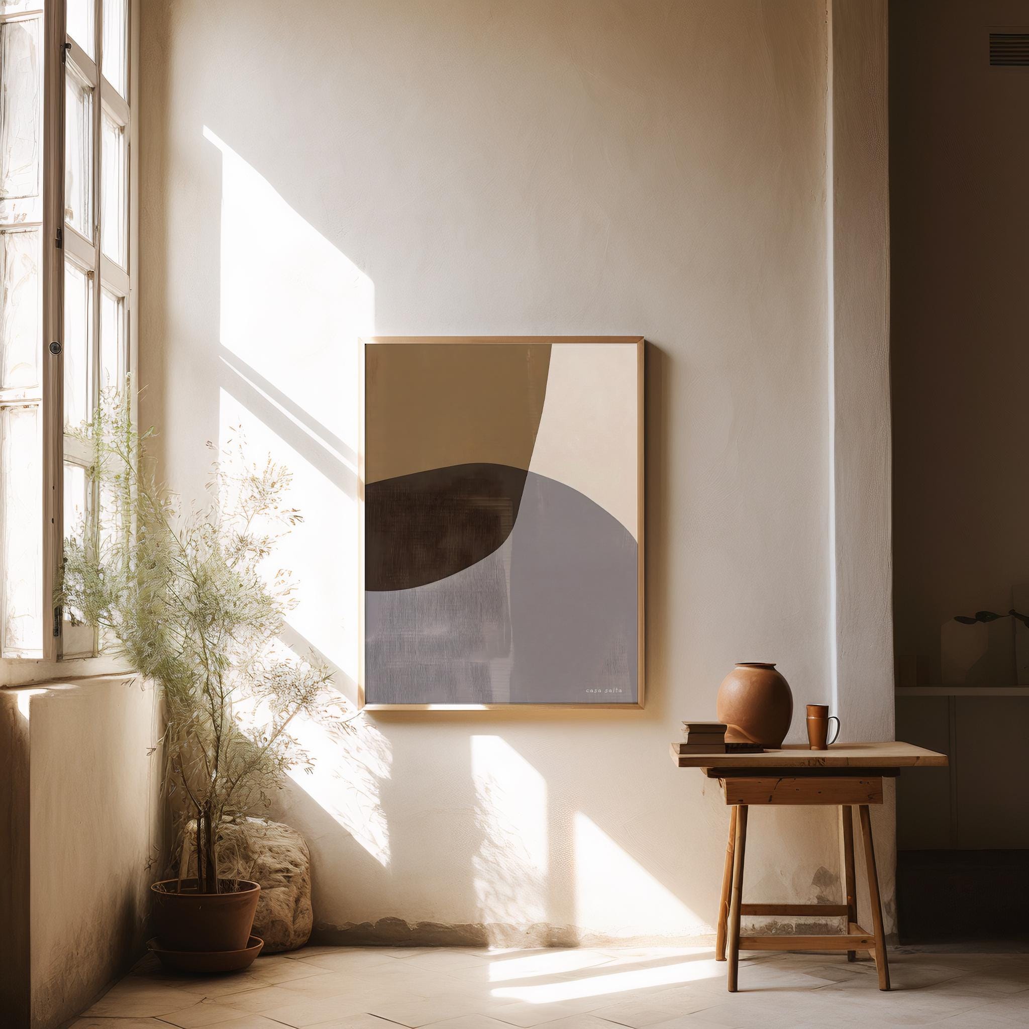 Digital abstract wall art featuring layered neutral shapes in brown, gray, and cream tones. Perfect for creating a modern, minimalist atmosphere in living rooms, bedrooms, offices, or studios. Download instantly and print at home or with a professional printer.
