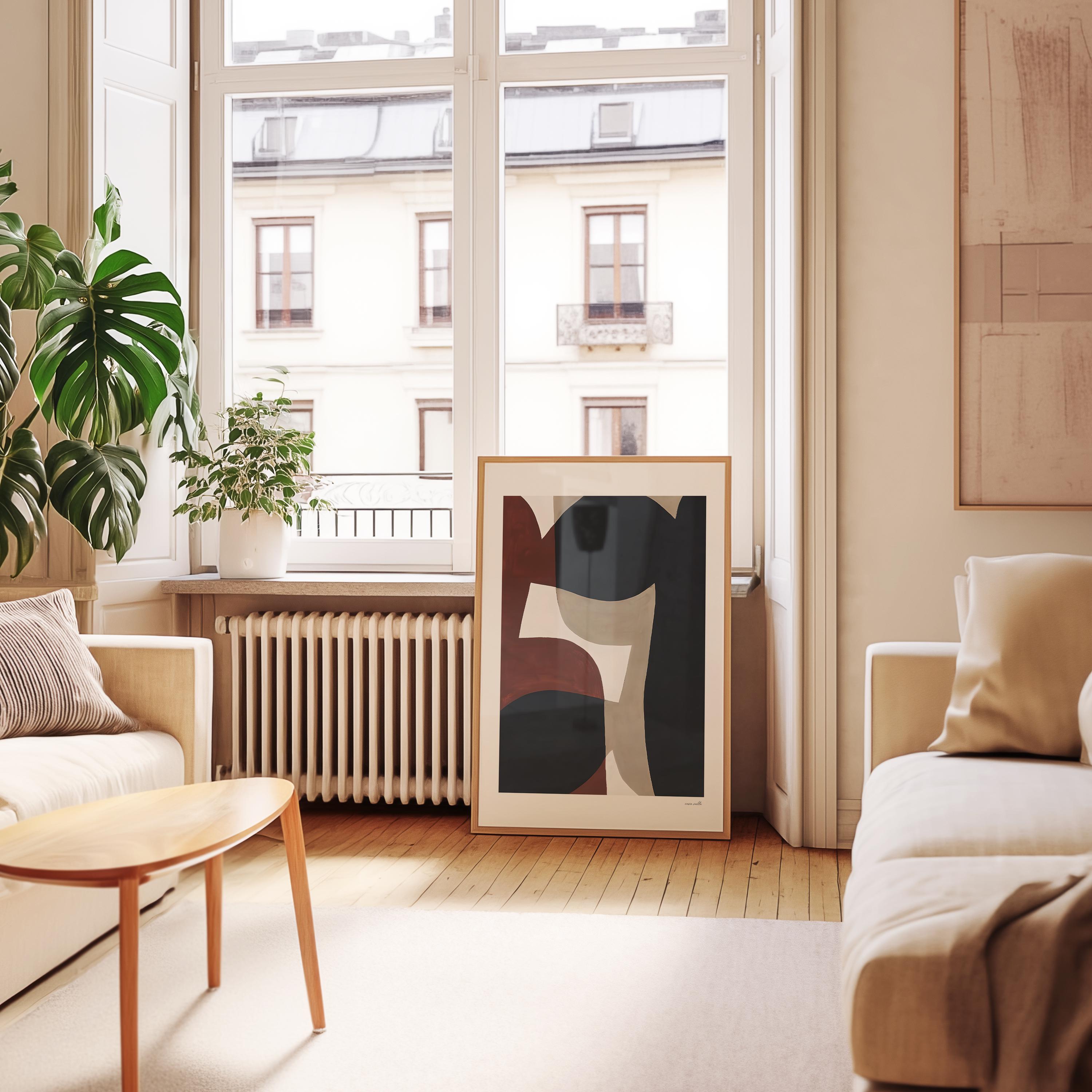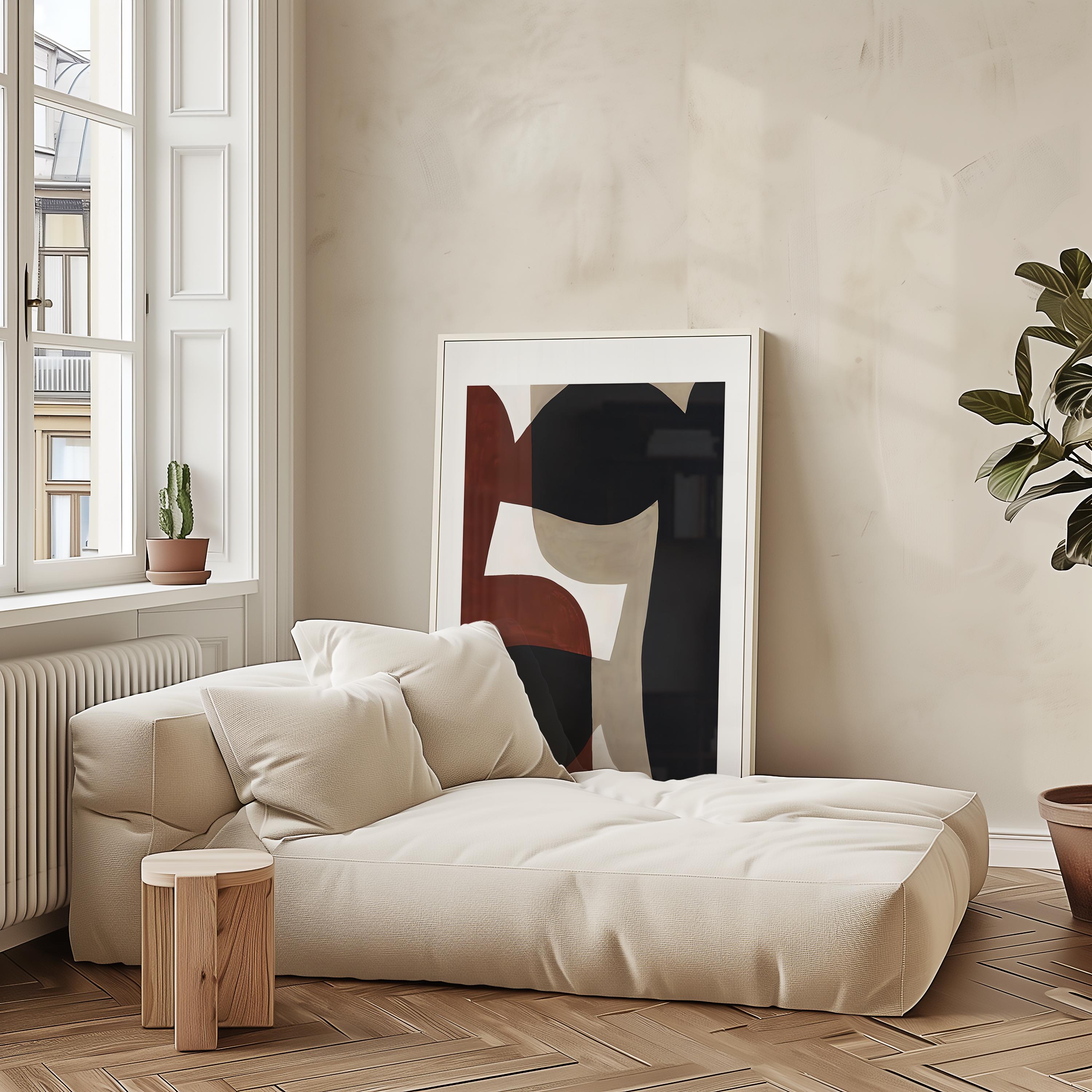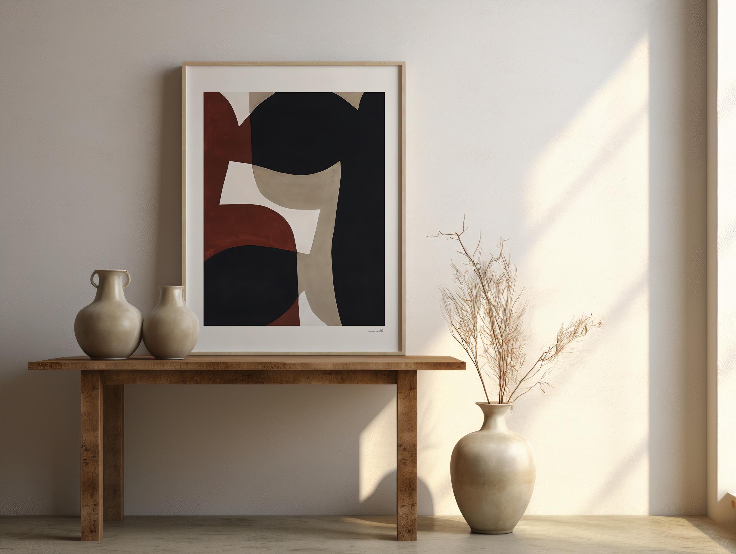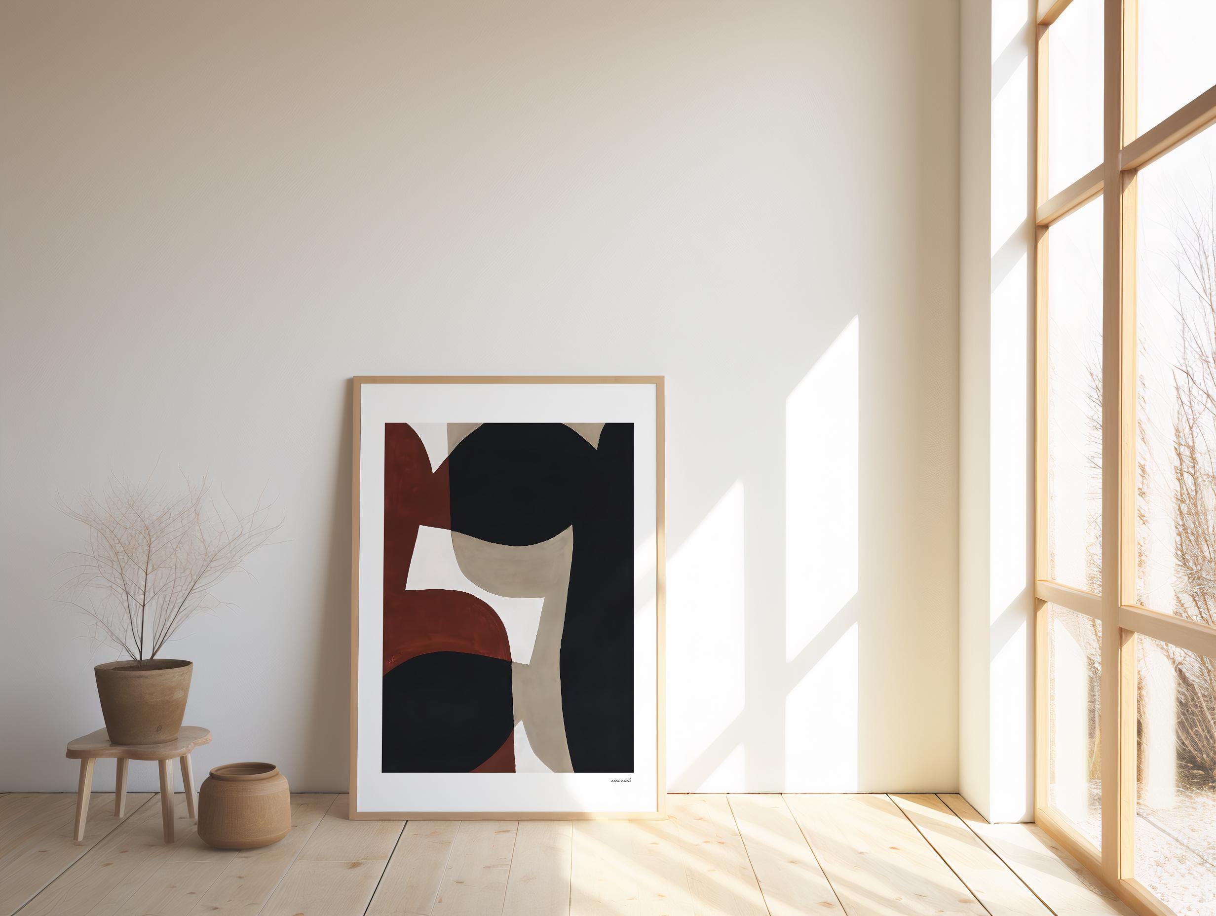 Add bold sophistication to your home with this abstract modern digital print. Featuring overlapping organic shapes in black, beige, rust red, and white, this minimalist geometric design brings a touch of contemporary style to any space. Perfect for living rooms, offices, or creative studios, this artwork is delivered as an instant digital download—print and frame it your way.