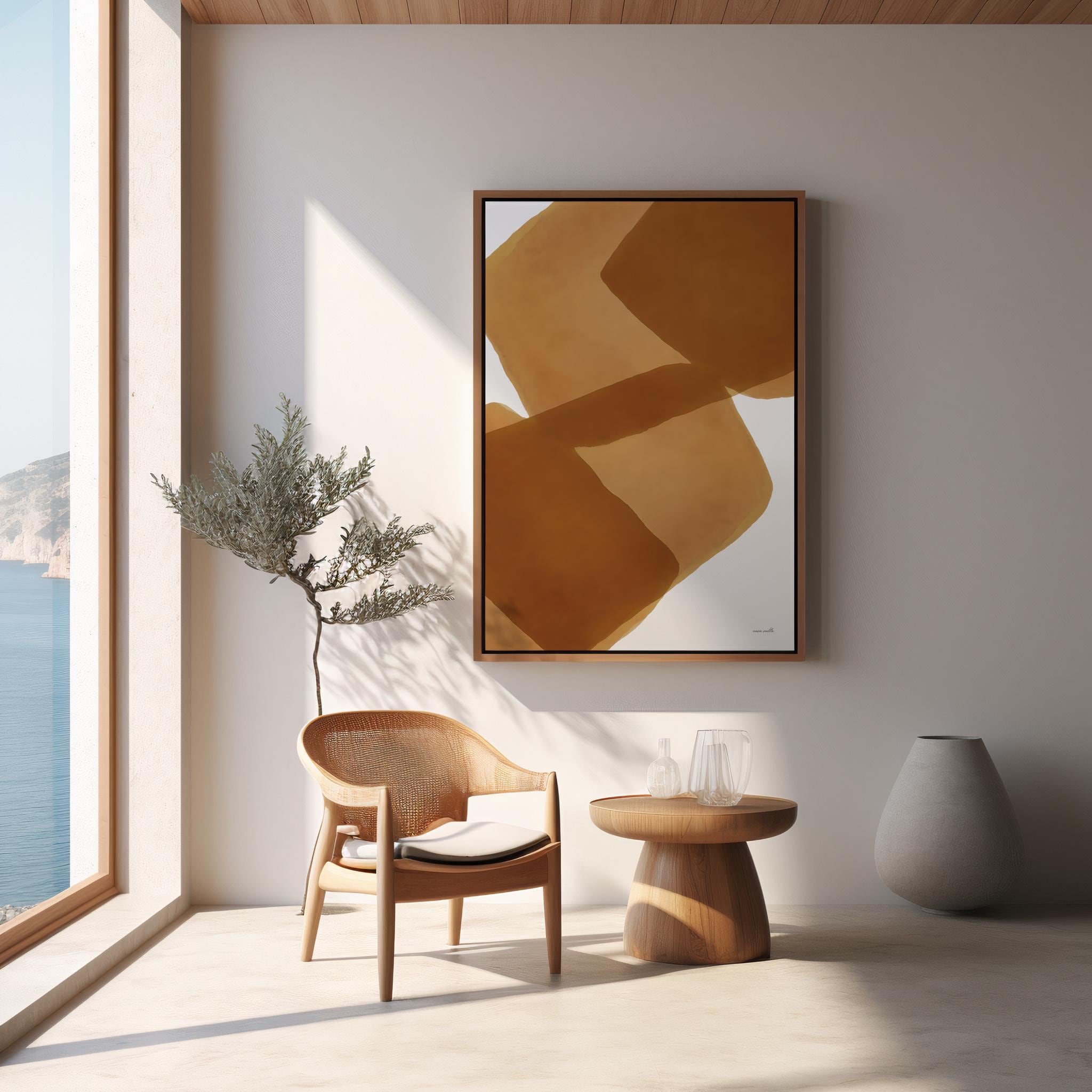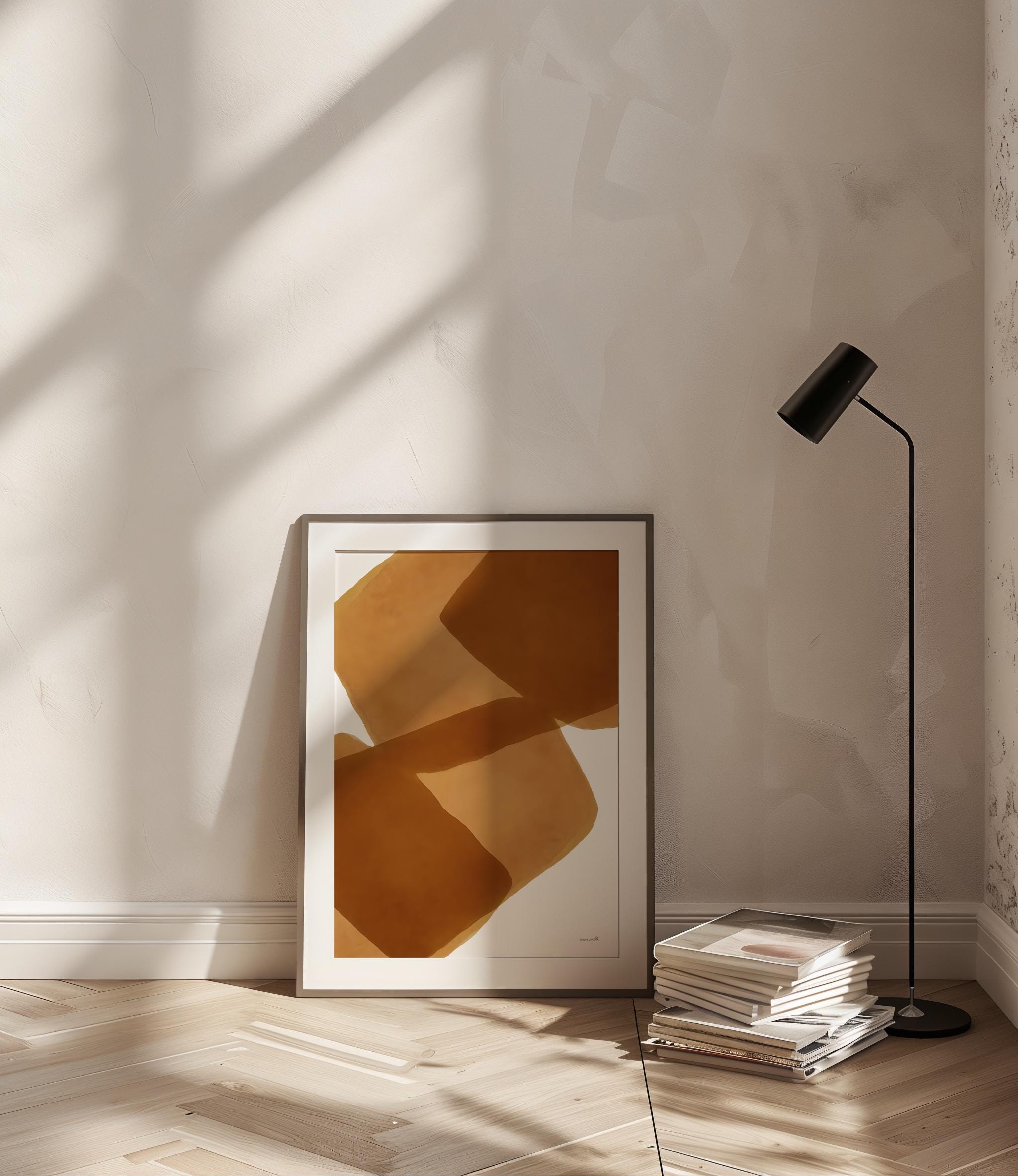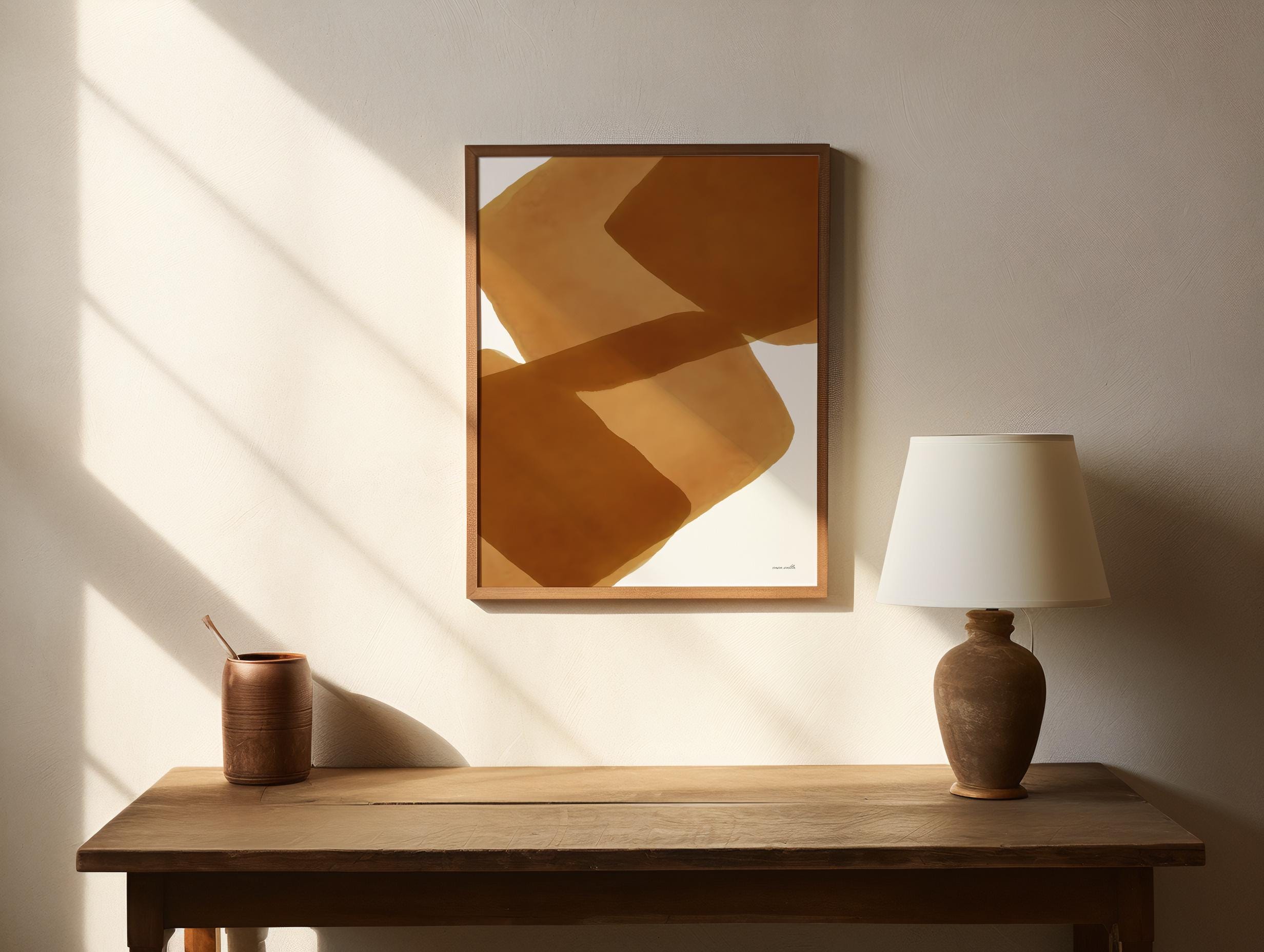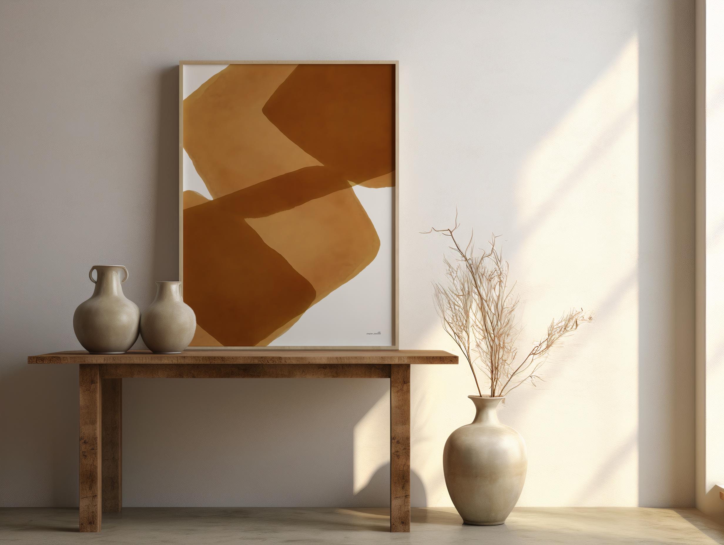 This abstract digital artwork features overlapping organic shapes in warm brown tones. The soft, translucent layers create depth and balance, making it a versatile piece that complements modern, minimalist, or bohemian interiors. Perfect for living rooms, bedrooms, offices, or creative spaces, this digital download allows you to print and frame the artwork instantly in your preferred size.
