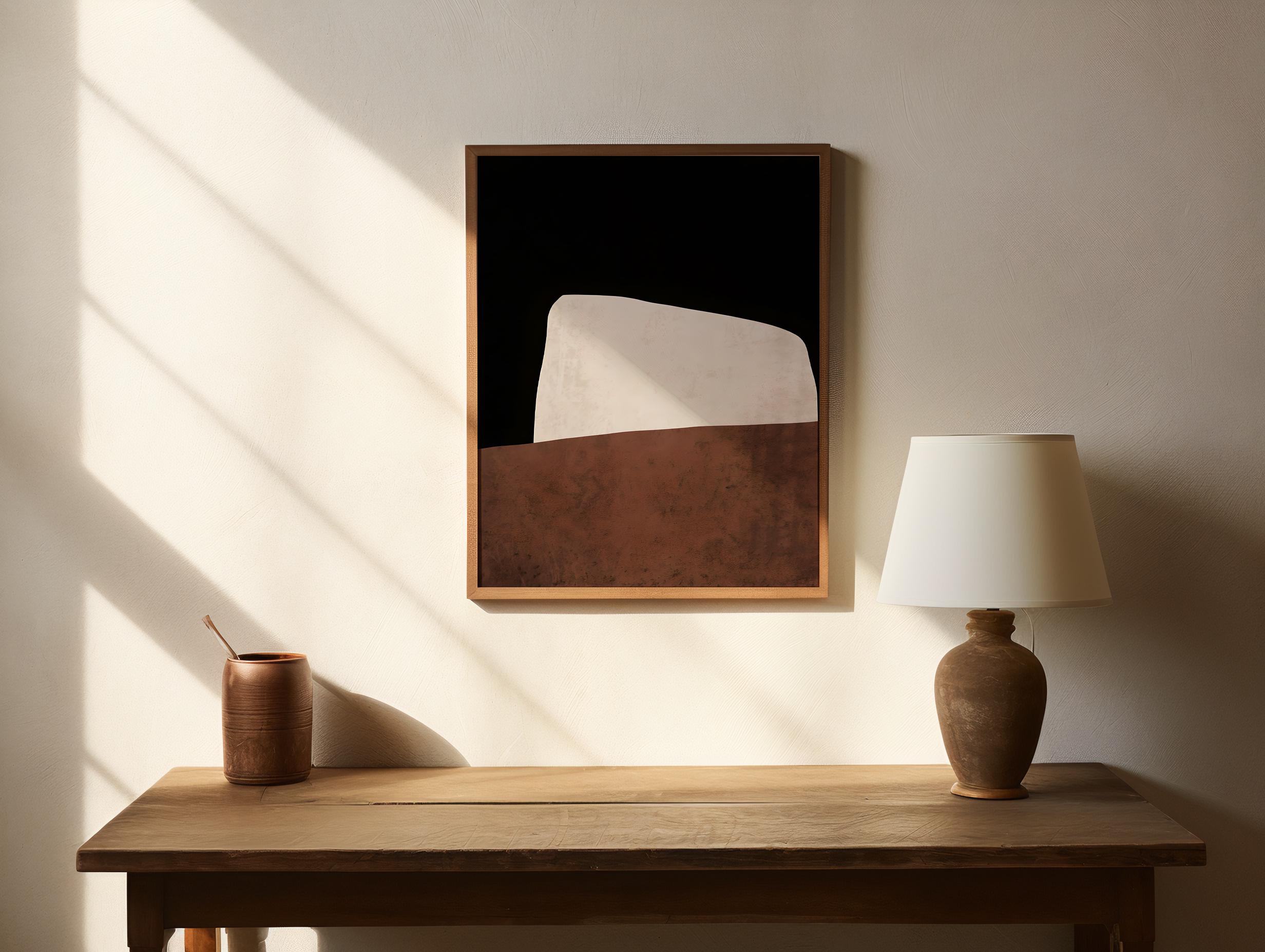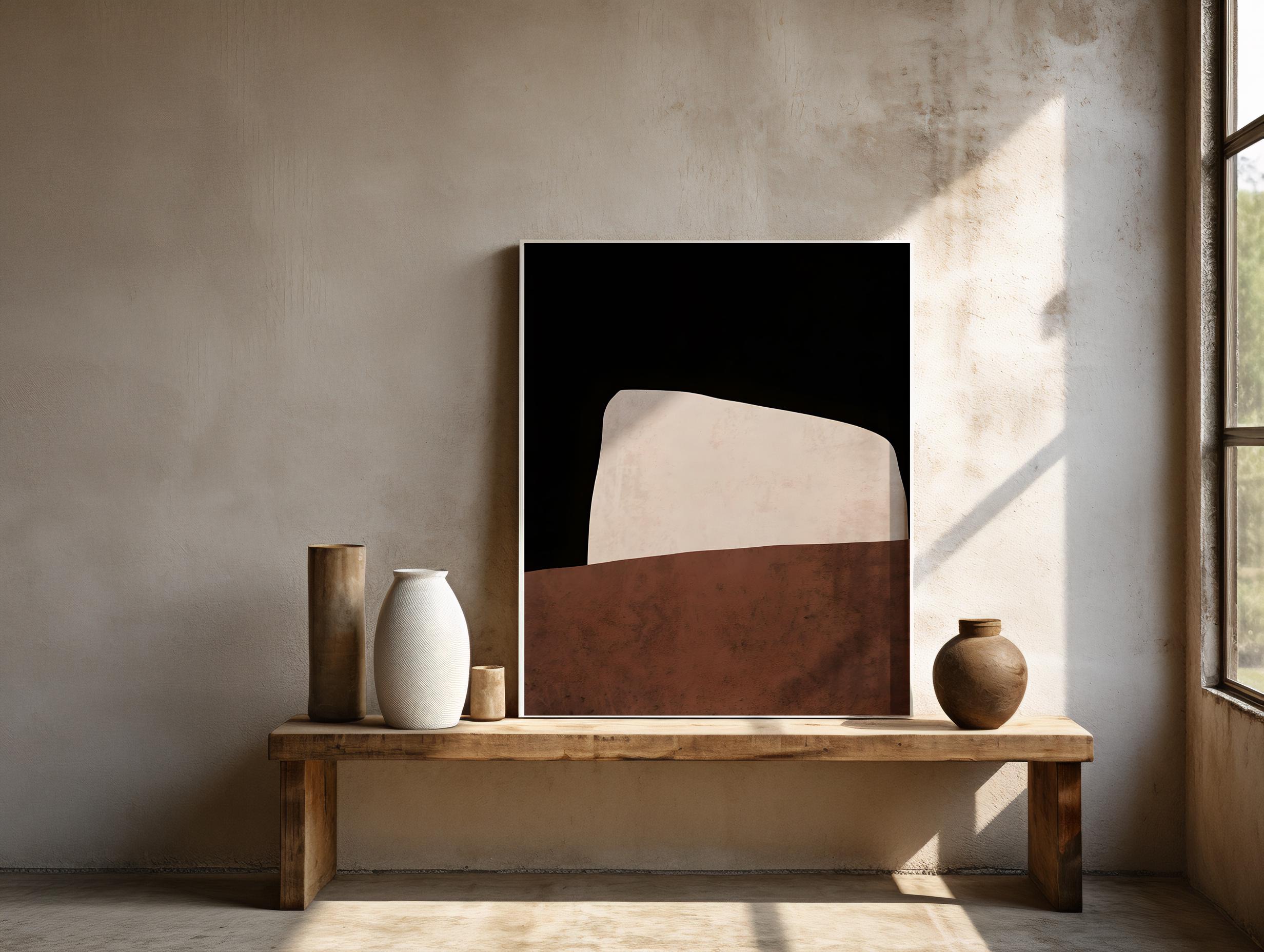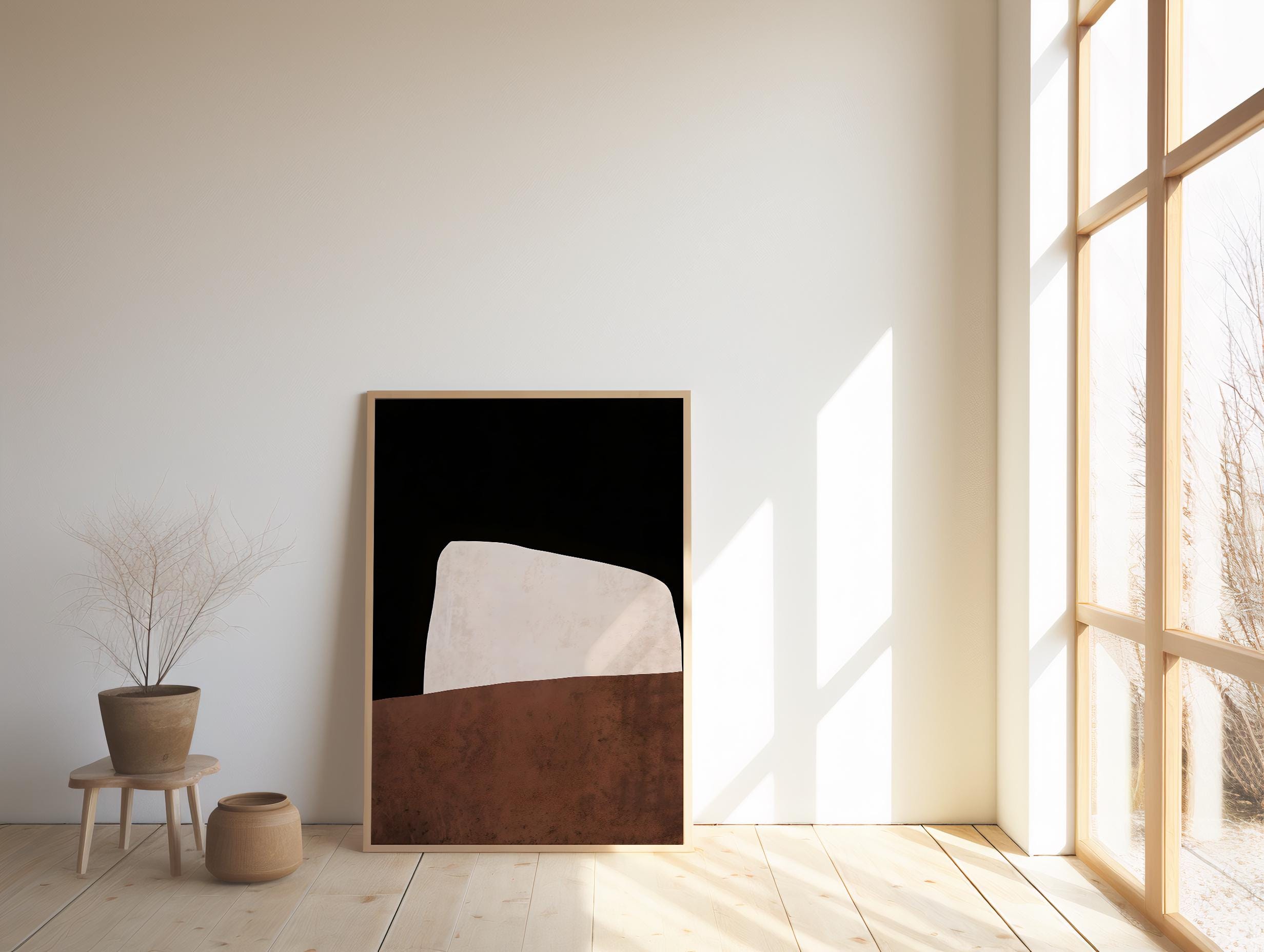 Modern and earthy, this abstract digital artwork combines deep brown and neutral beige tones with a minimalist composition that evokes natural textures and organic balance. Perfect for contemporary, bohemian, or wabi-sabi interiors, this piece adds depth and warmth to any space. Designed for instant download, allowing you to print and display it in your preferred size and format.