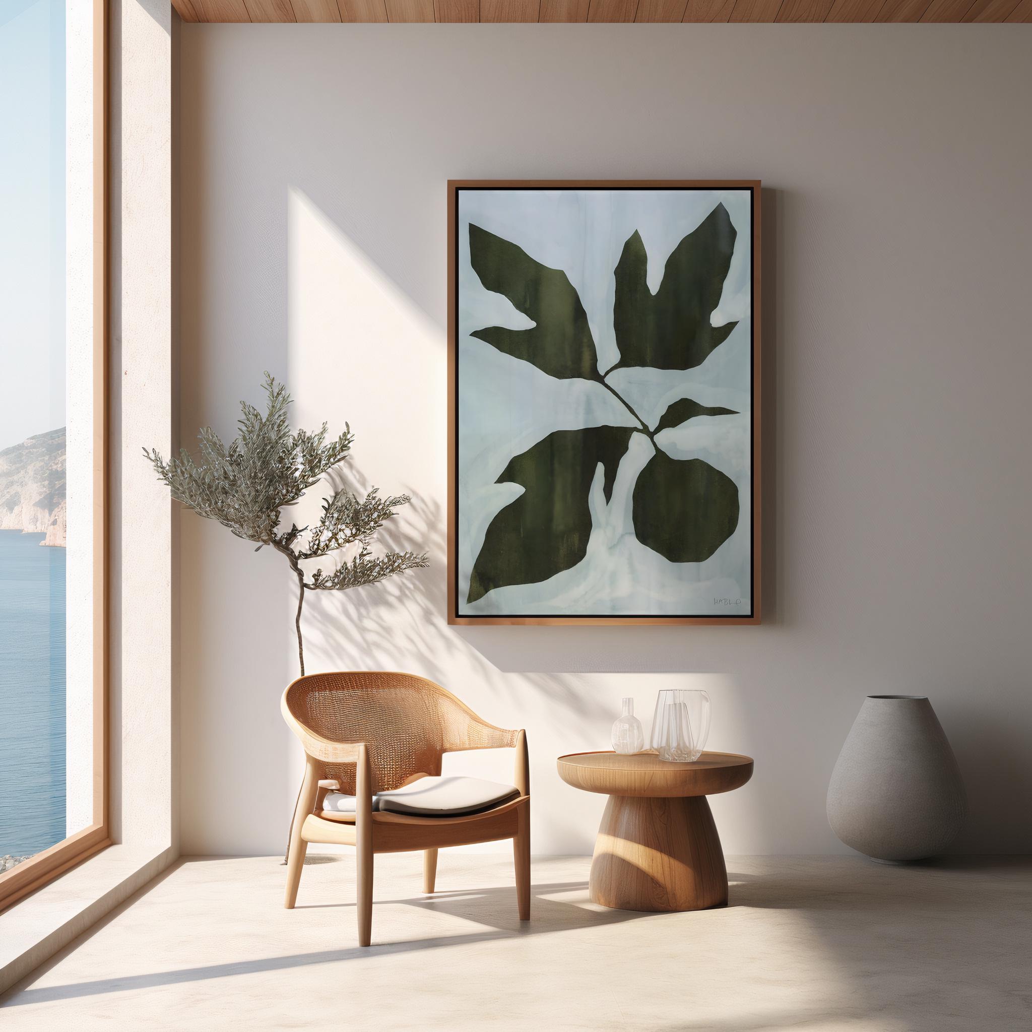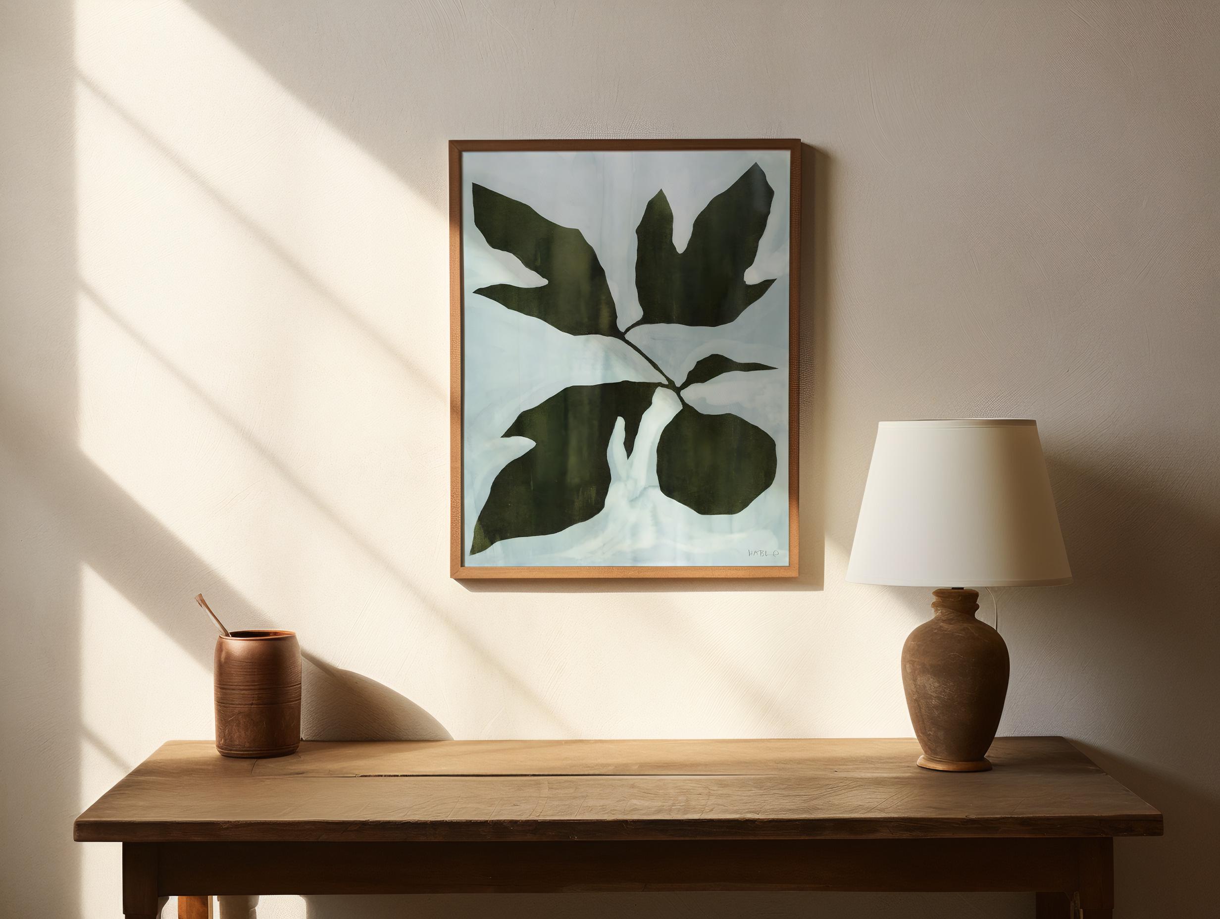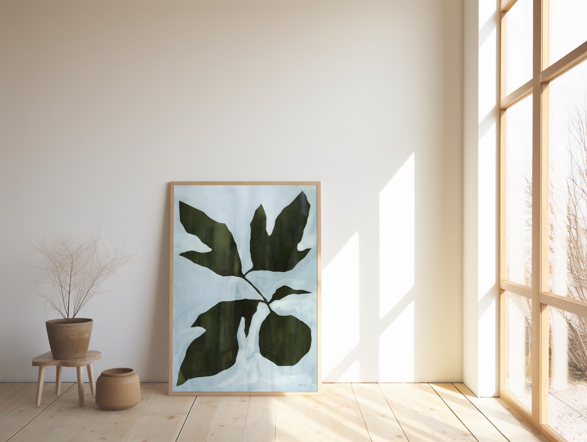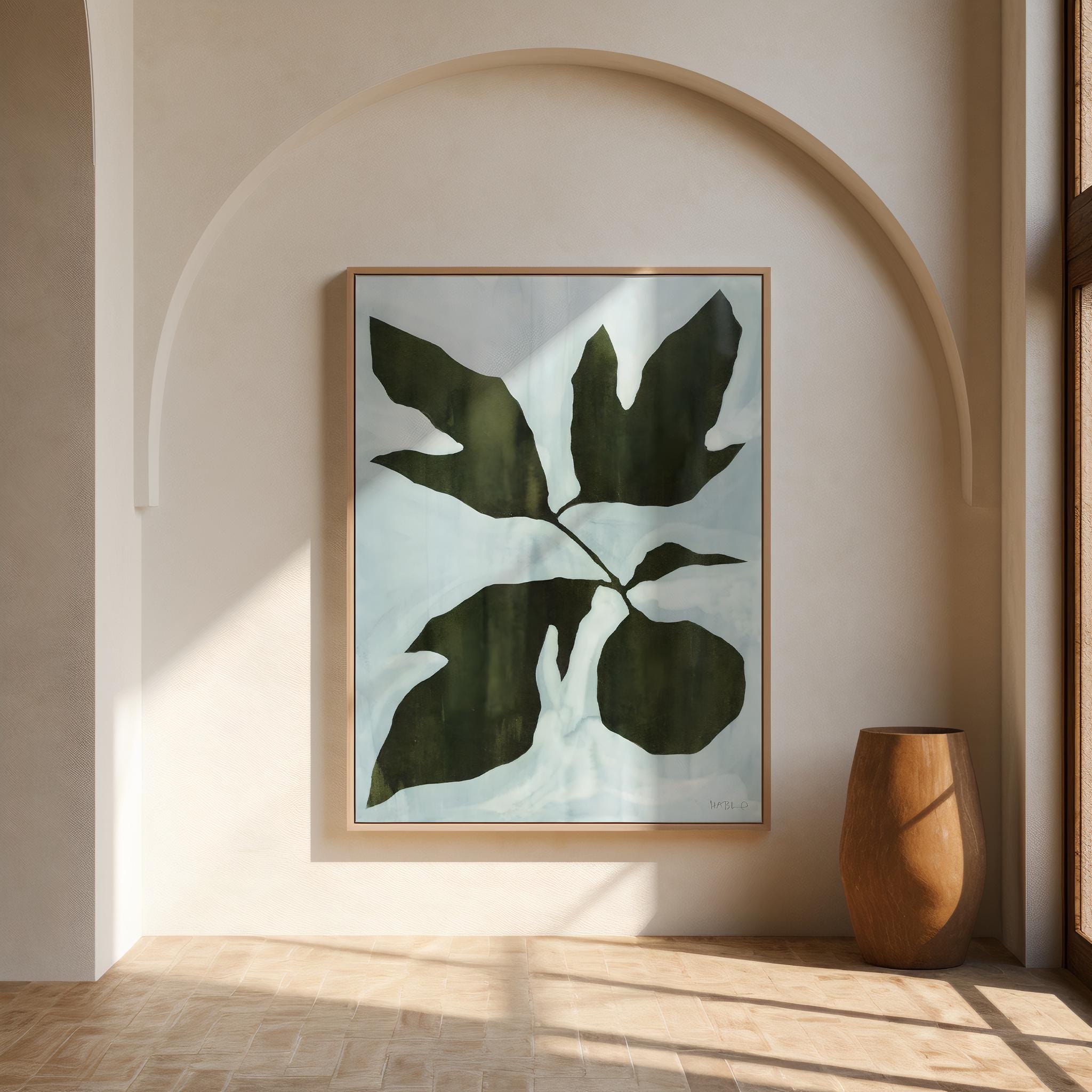 Bring calm sophistication into your home with this minimalist botanical art print. Featuring a striking green leaf silhouette against a soft watercolor-style background, this piece blends organic form with modern design—perfect for creating a serene, natural atmosphere in any space.