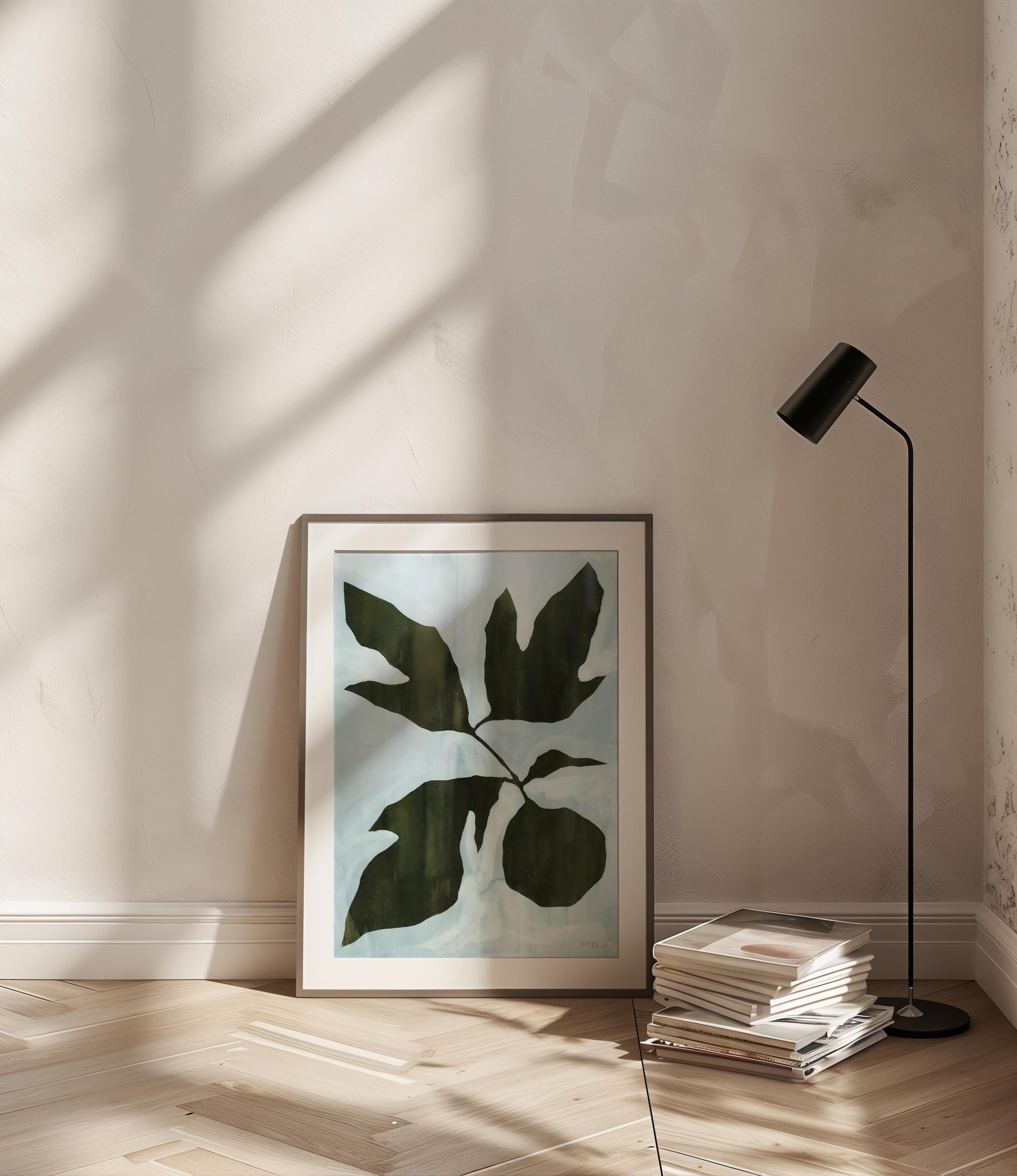 Discover the elegance of simplicity with our Fine Art Botanical Poster — a modern interpretation of nature in its purest form. Featuring an abstract green leaf silhouette against a soft, painterly background, this piece brings a calm and organic touch to any space.