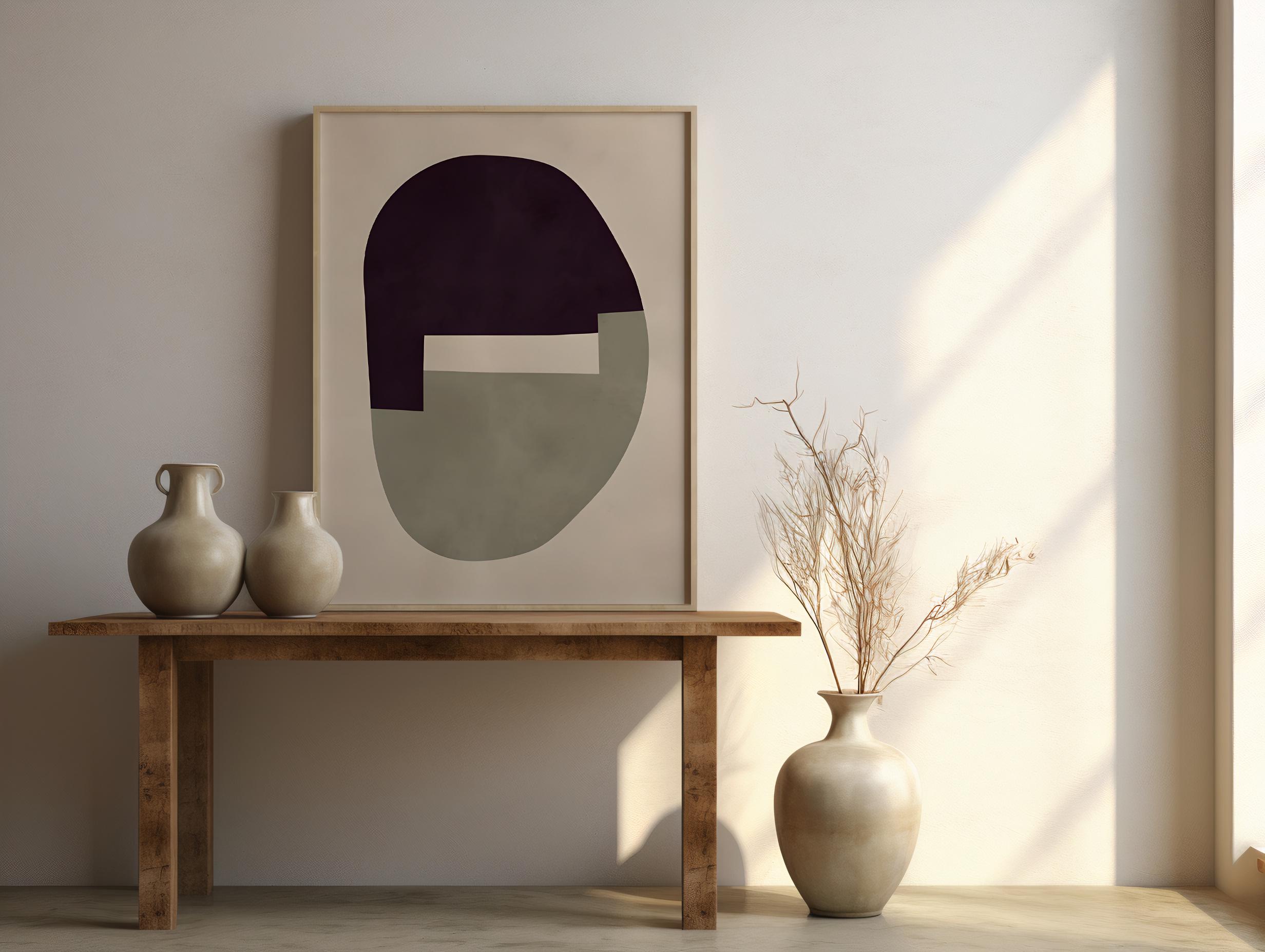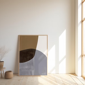 Instantly elevate your space with this neutral abstract wall art—a minimalist design featuring soft beige and taupe tones with bold geometric shapes. Perfect for lovers of modern, Scandinavian, or mid-century decor, this digital download print adds effortless sophistication to any room.