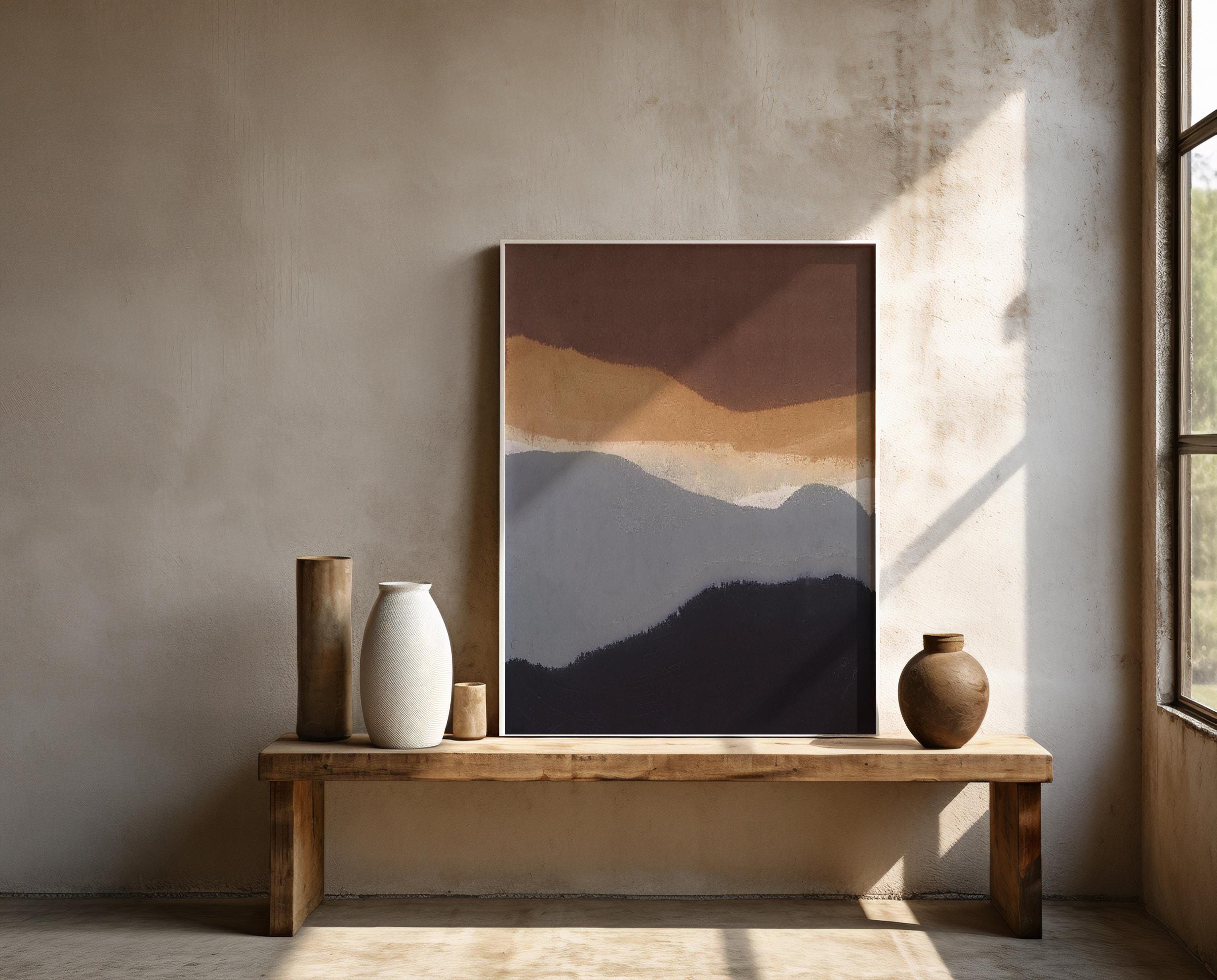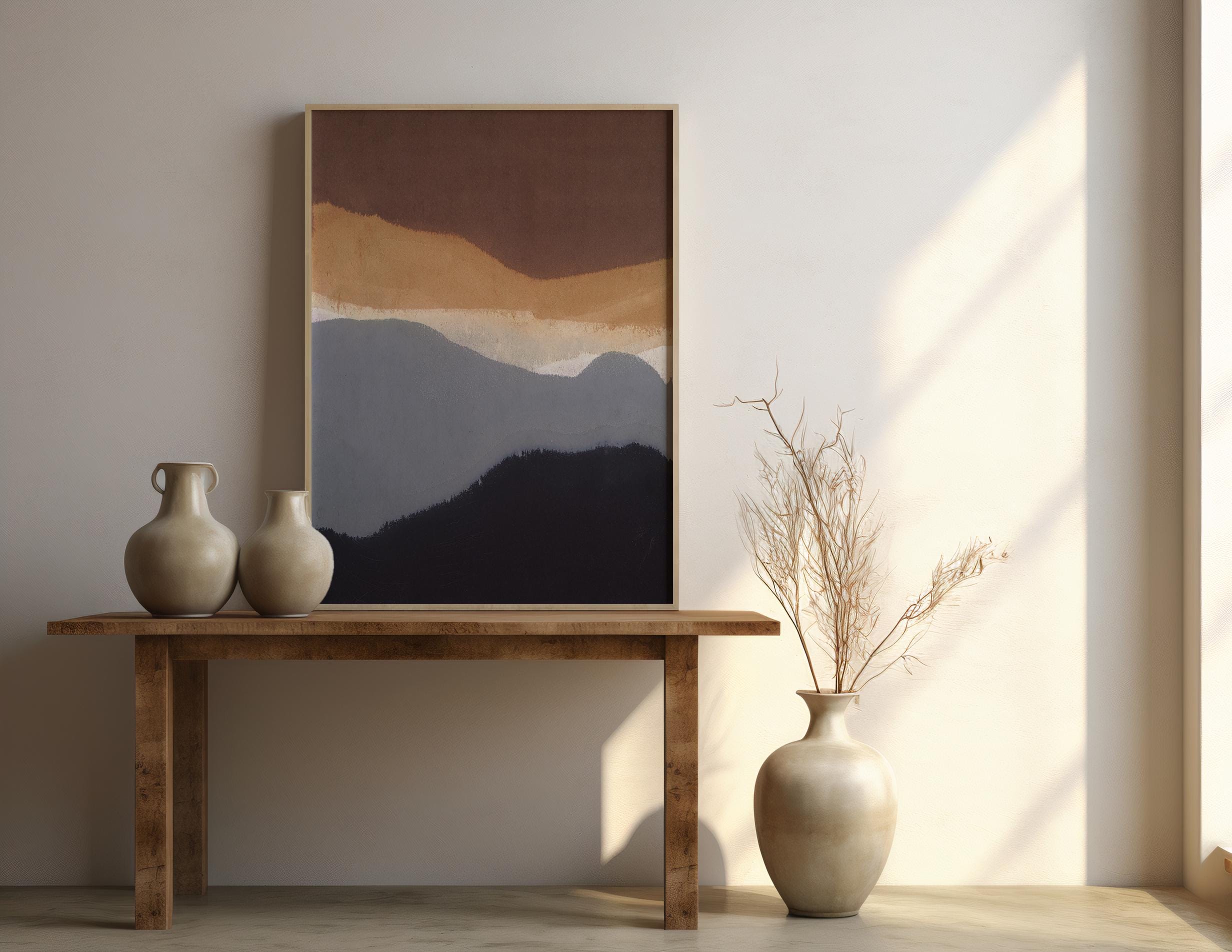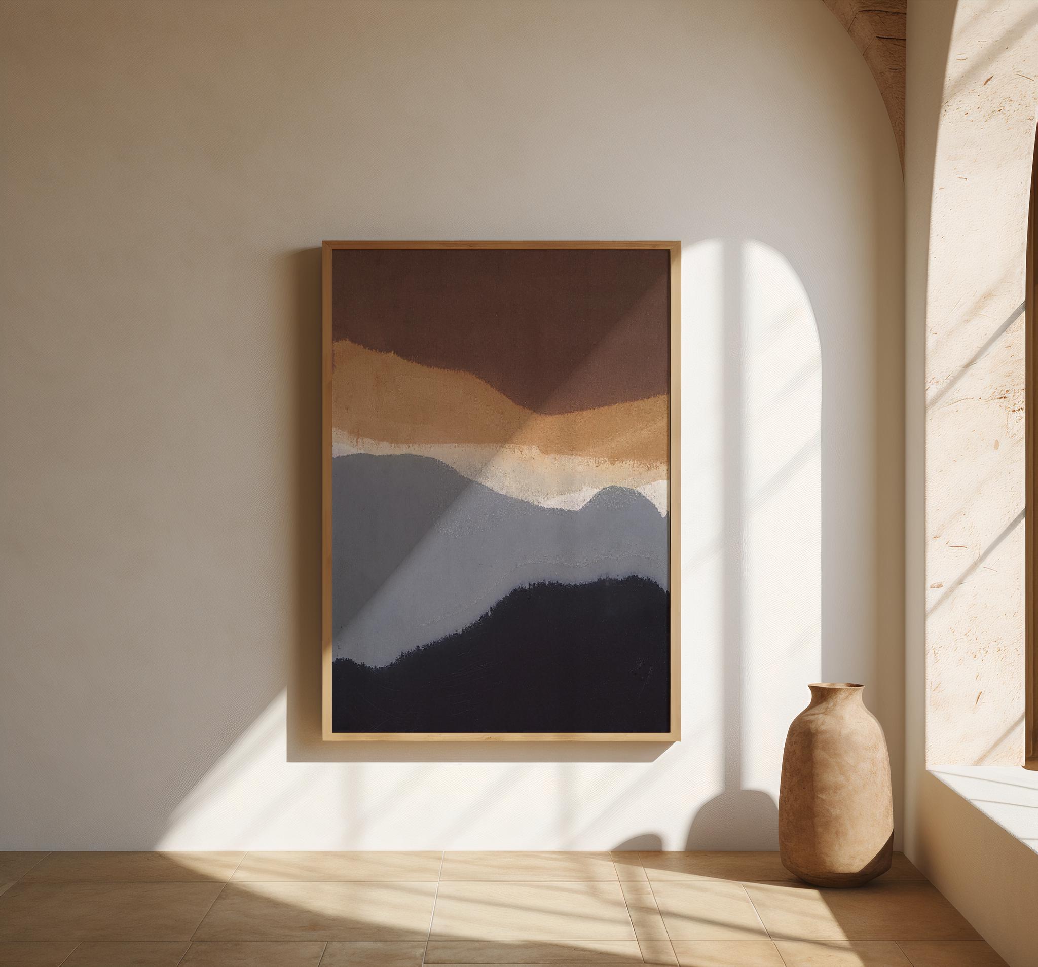 Mountain Landscape Wall Art | Earthy Brown Blue Layers – Printable | Instant Download
