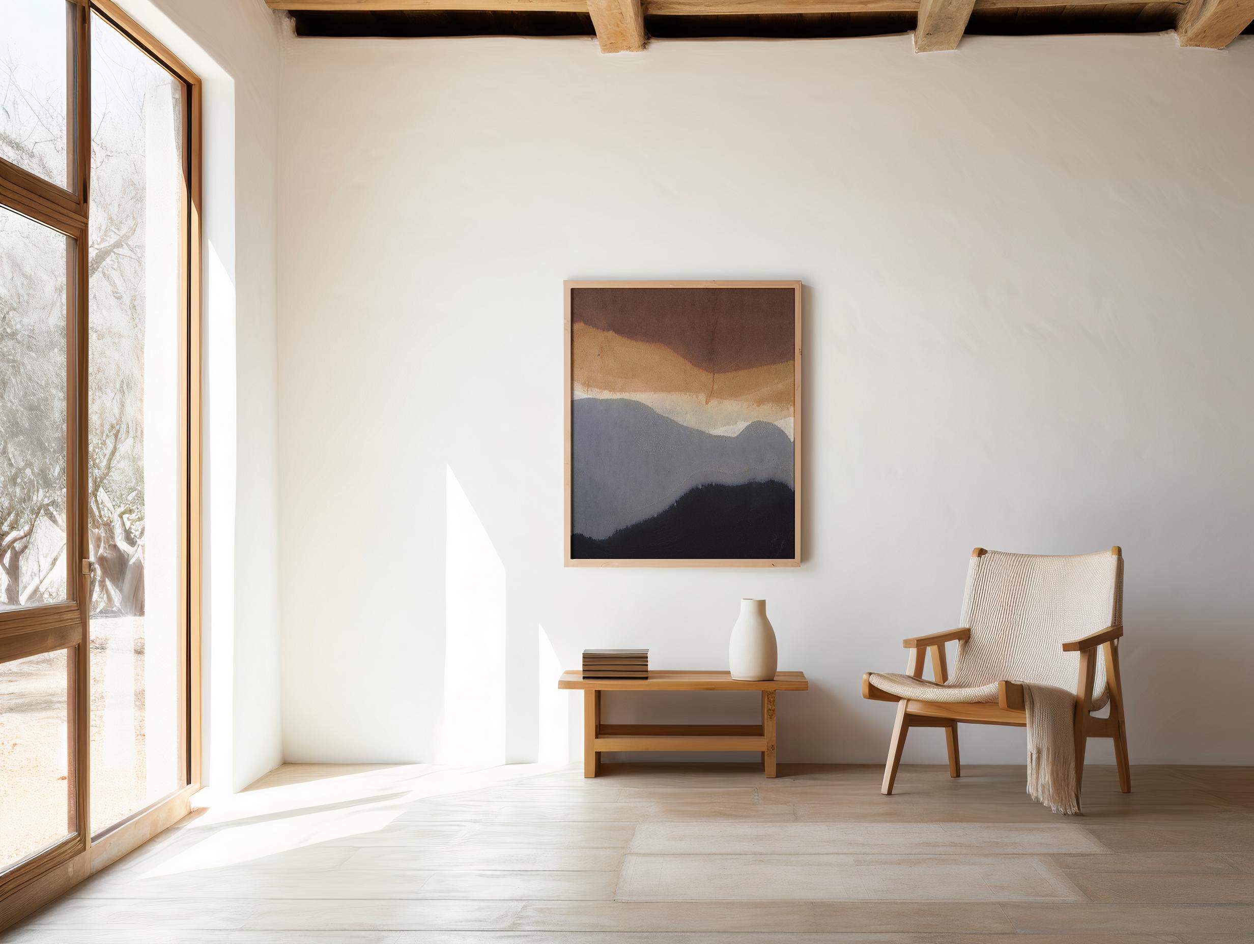 Transform your home with this neutral landscape abstract print inspired by soft, natural tones and organic shapes. The layered earth-tone palette of brown, beige, and blue-gray hues brings warmth and calm to any modern, boho, or minimalist space.