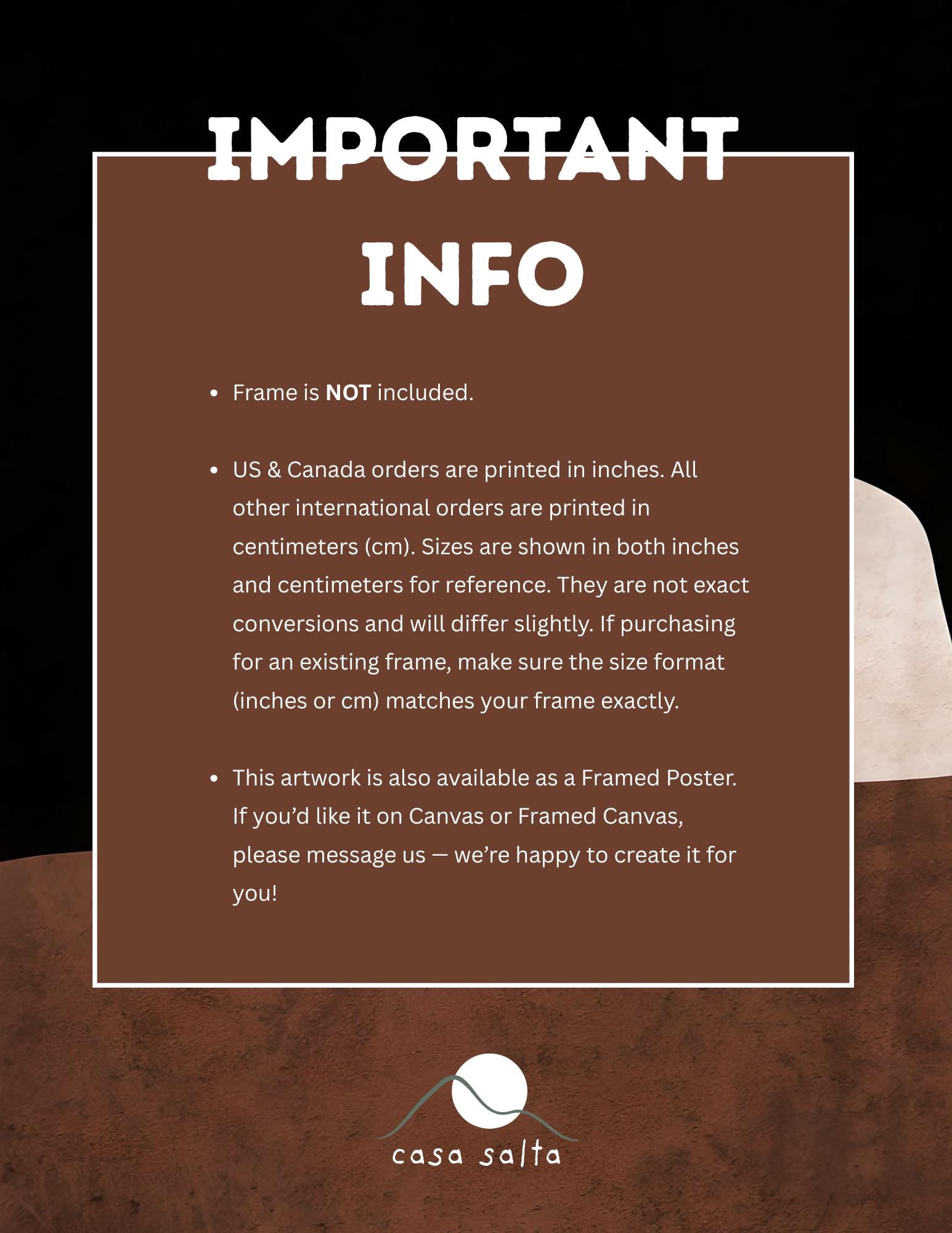 If you’d like this artwork on Canvas or Framed Canvas and don’t see it listed, please message us — we’re happy to create it for you.