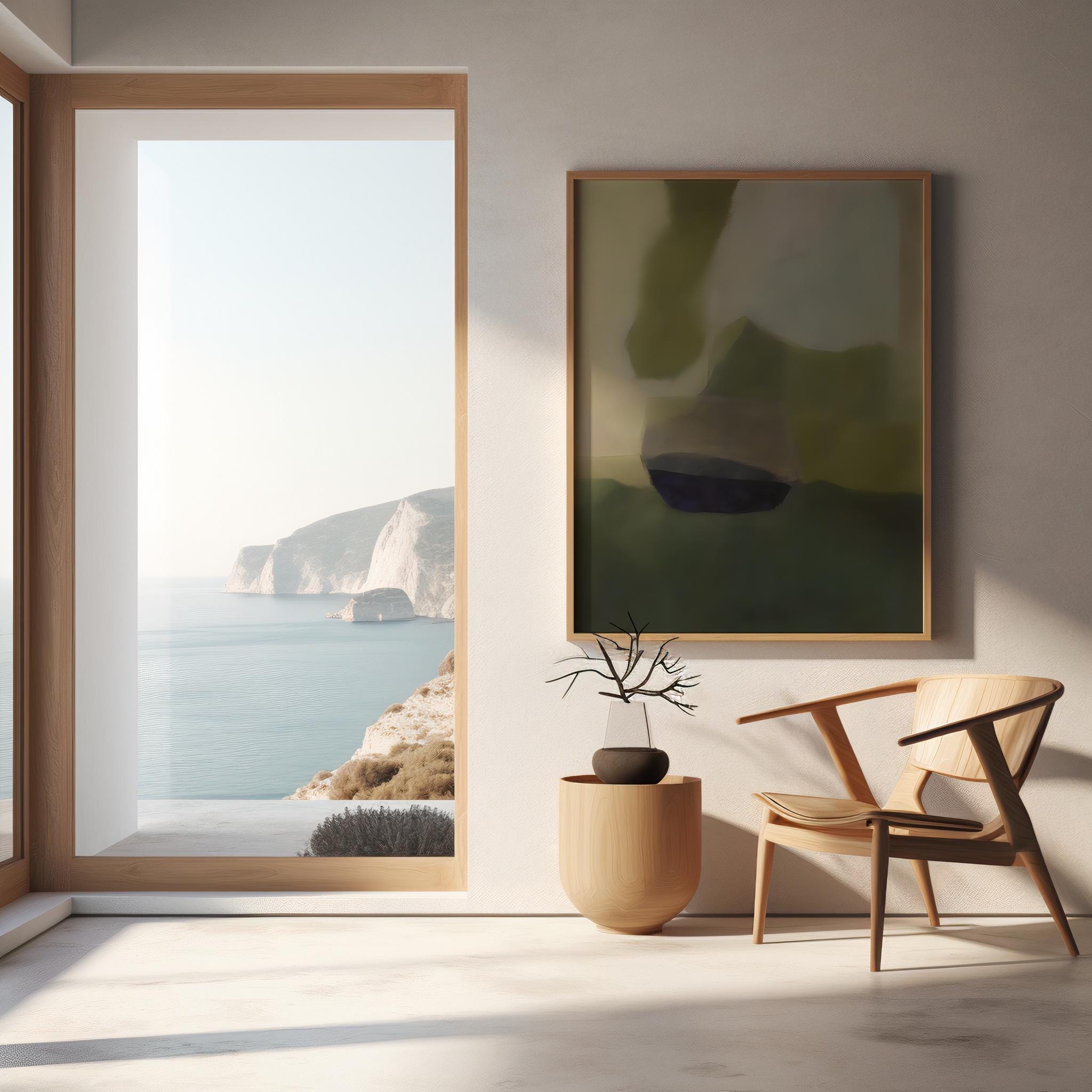 The moody green palette introduces depth and tranquility to a space, making it an elegant statement piece for contemporary interiors. This artwork works beautifully in living rooms, bedrooms, offices, or gallery walls where natural tones and minimalist design bring warmth and balance to the space.