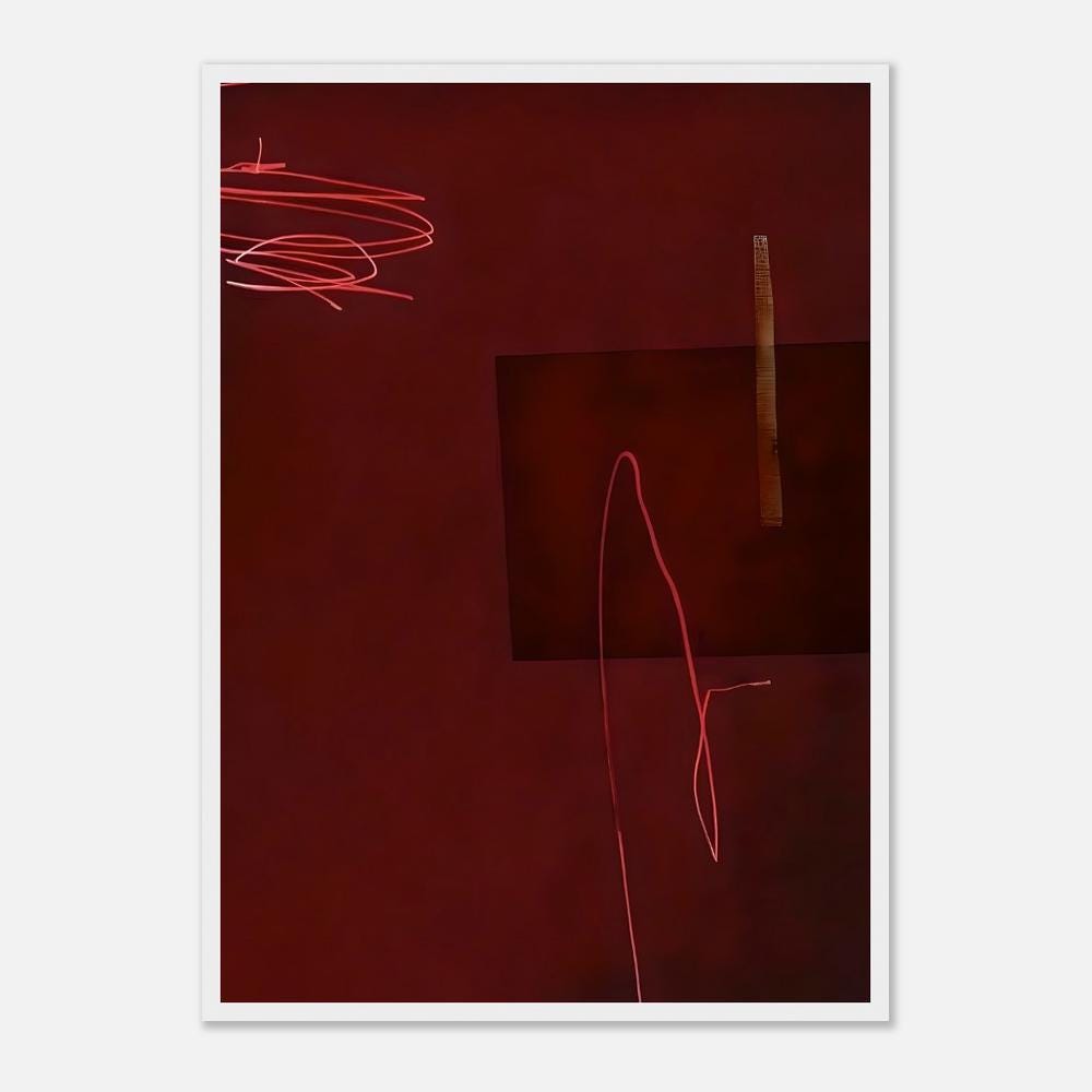 This striking red abstract artwork is professionally printed and framed, ready to hang. Deep crimson and burgundy tones create rich visual depth, while fine linear elements add modern movement and contrast. Bold yet refined, this piece makes a powerful statement without overwhelming a space.