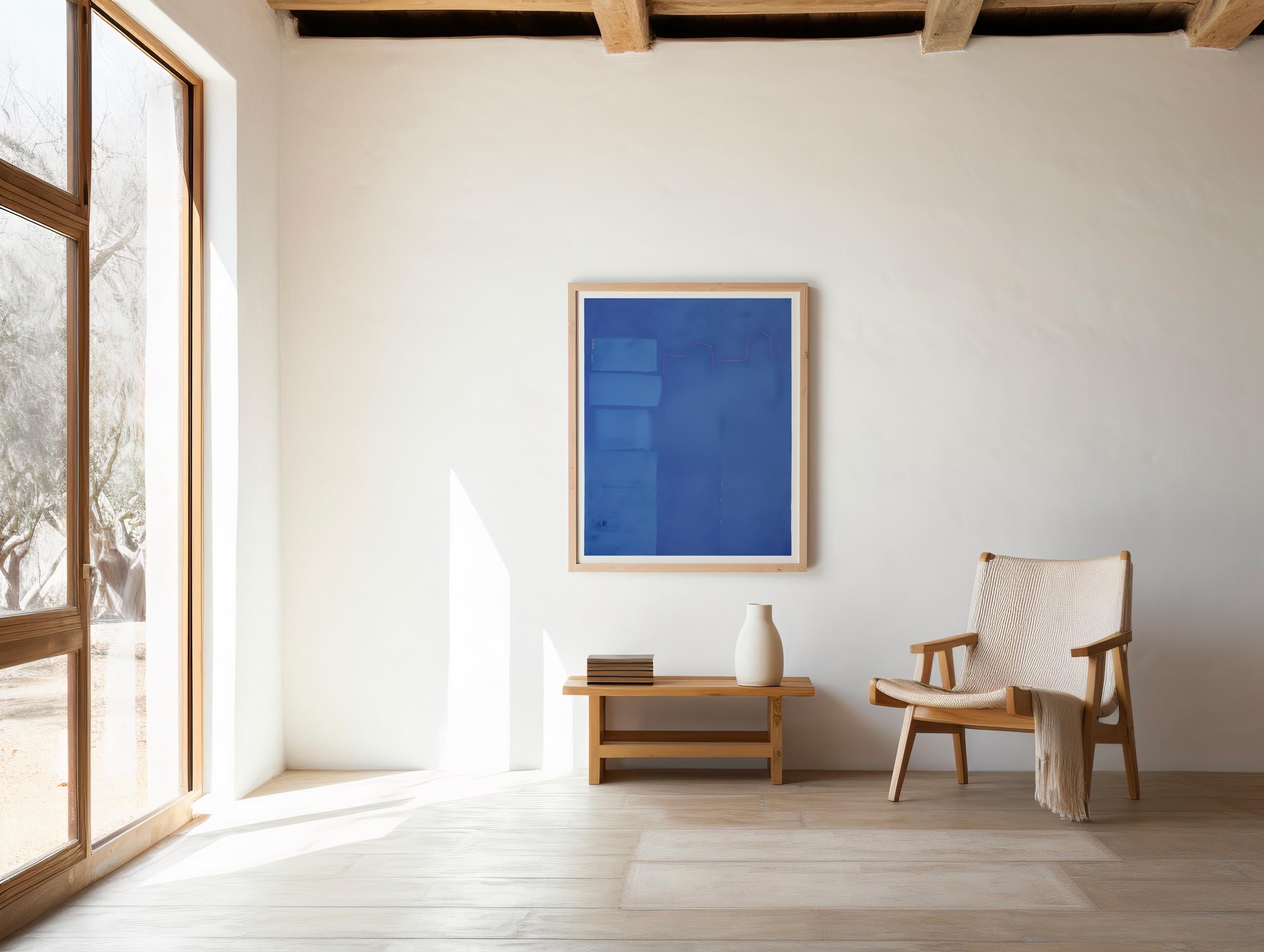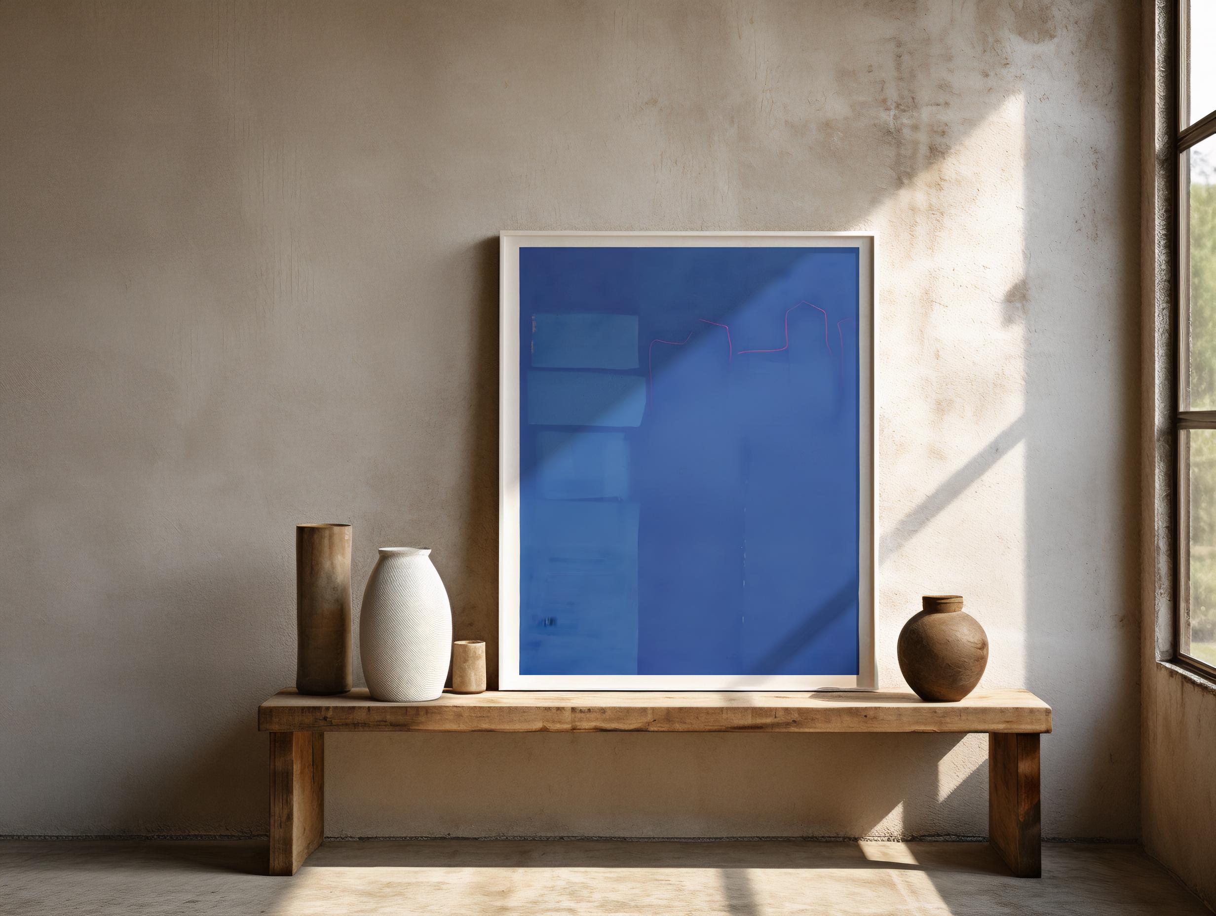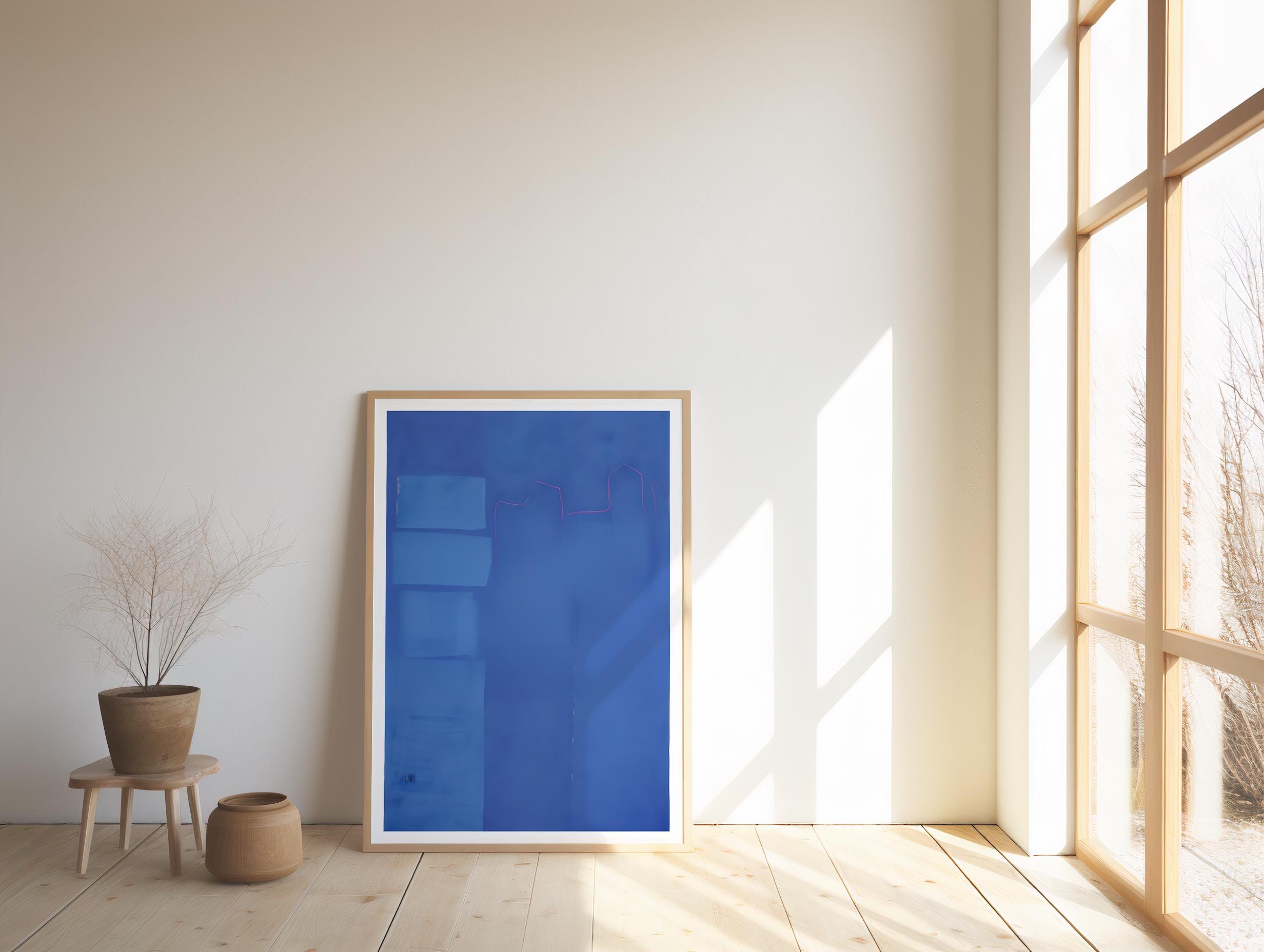 A bold and captivating fine art print featuring deep blue tones accented by subtle red contours. This modern abstract piece adds elegance and sophistication to any interior — perfect for art collectors, designers, or anyone drawn to minimal and contemporary aesthetics.