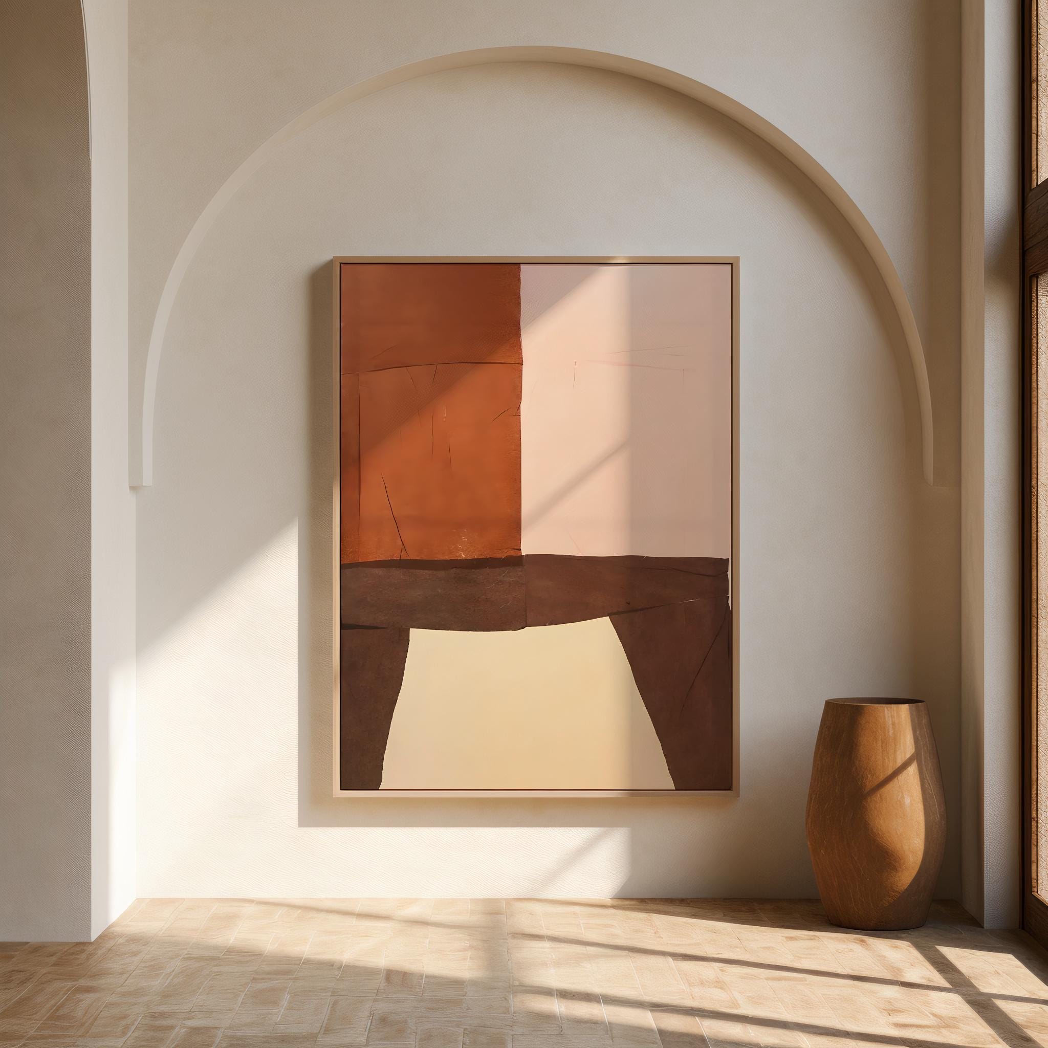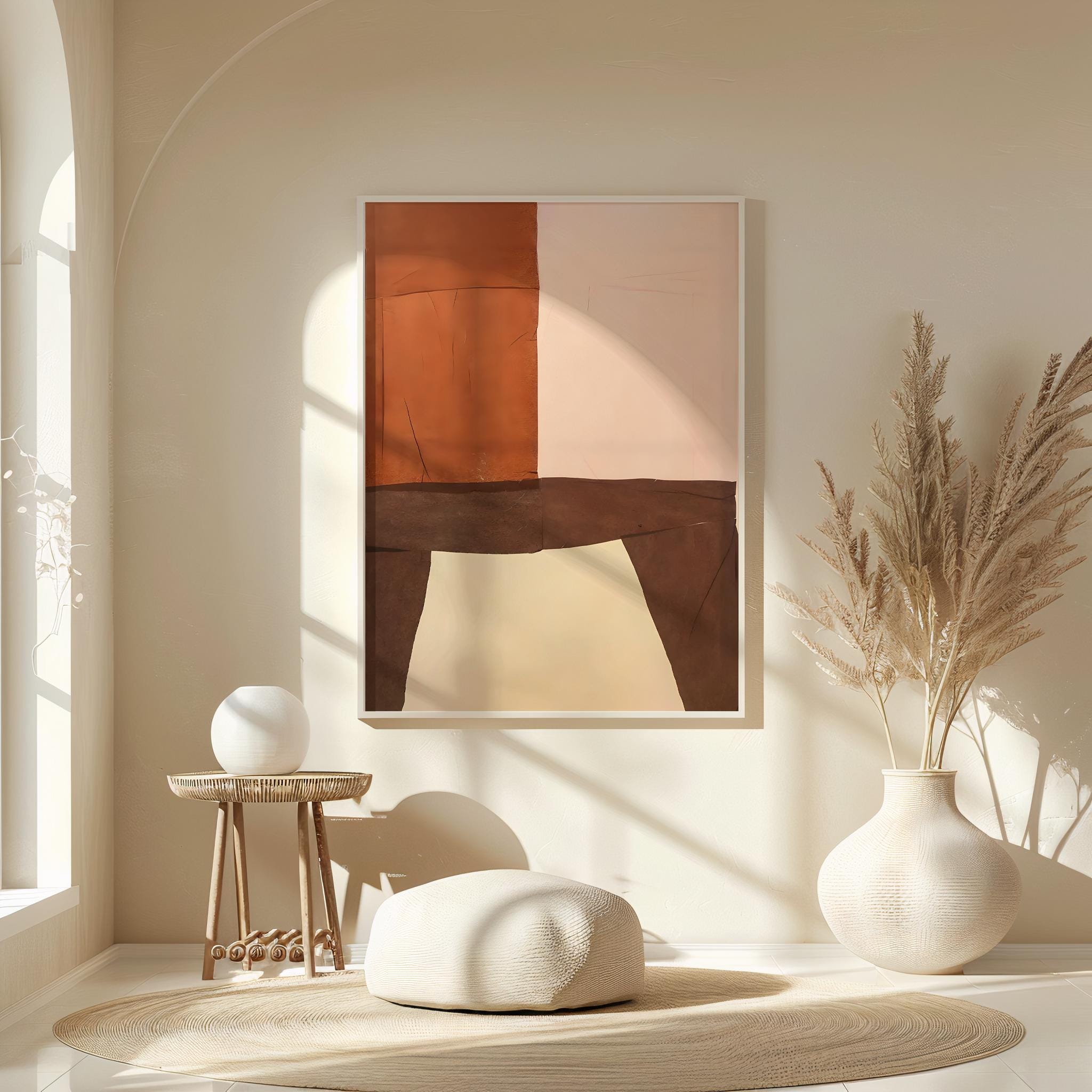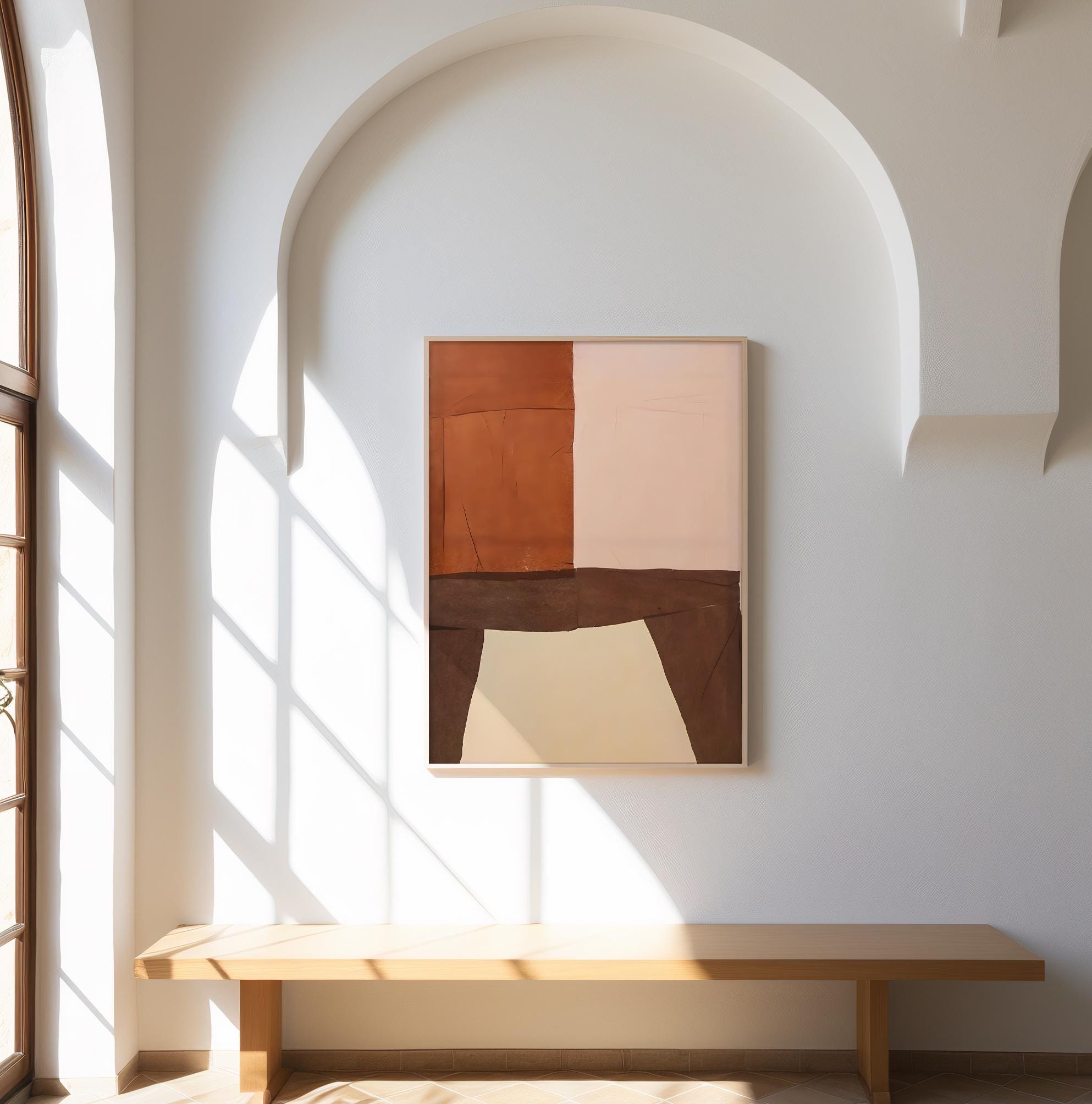 This warm, earth-tone abstract artwork features layered terracotta, clay, rust brown, and soft neutral beige shapes. The textured, minimal composition adds depth and warmth, perfect for modern interiors, boho homes, earthy neutrals, and contemporary décor. As a digital download, you can print it instantly at home, through a local print shop, or online.