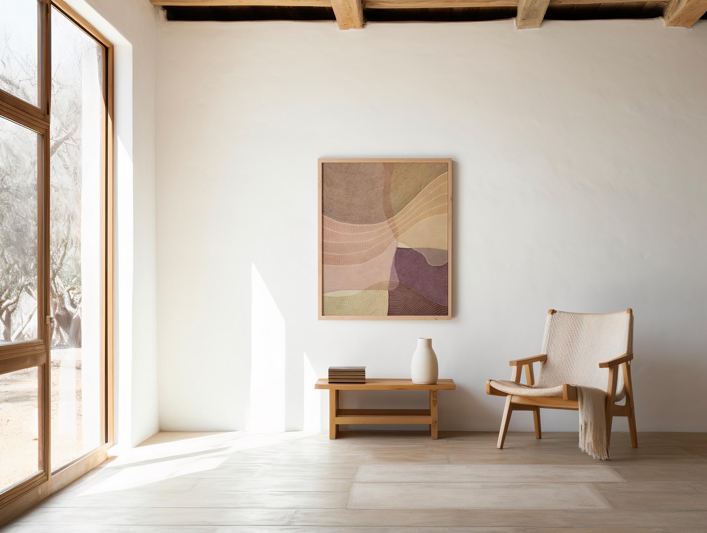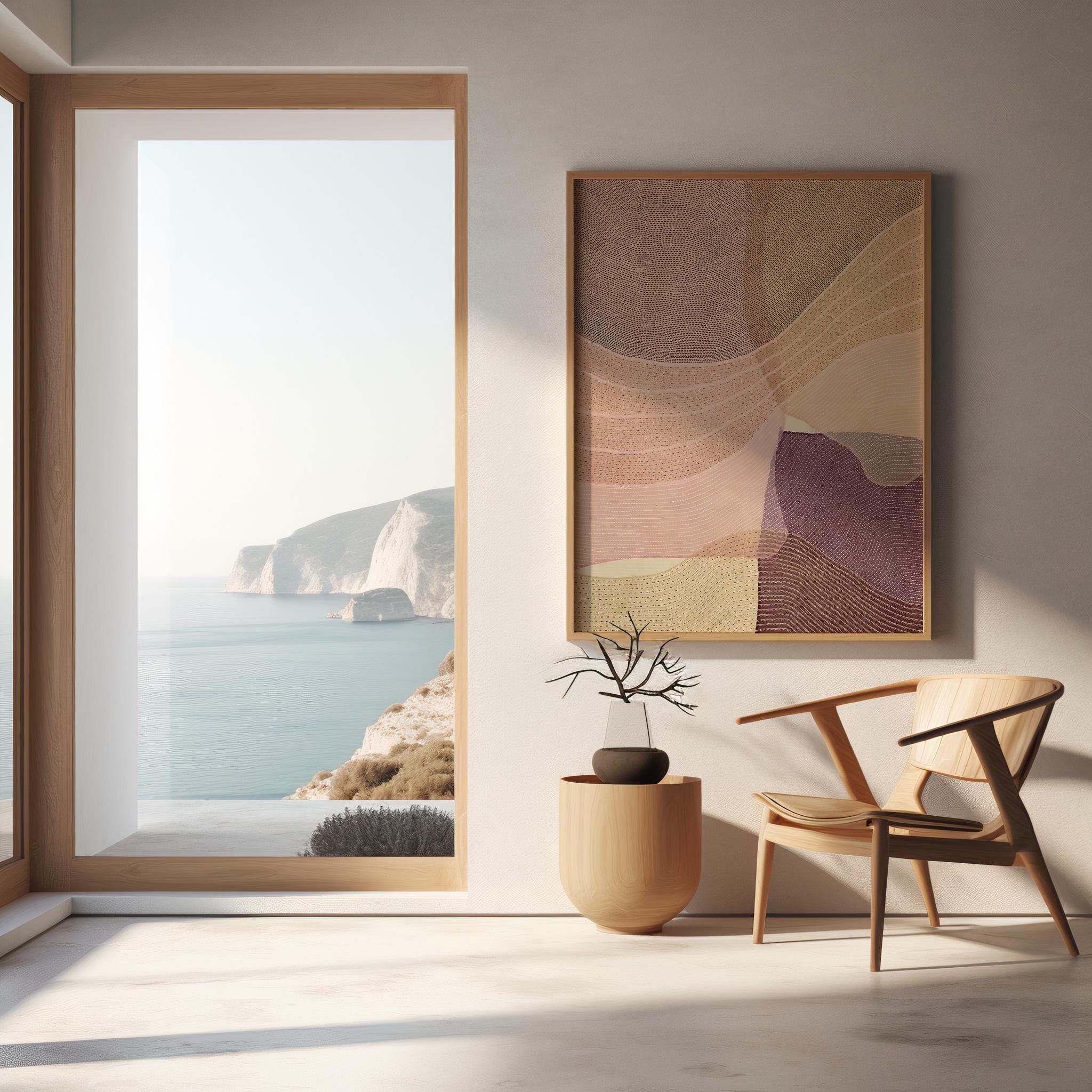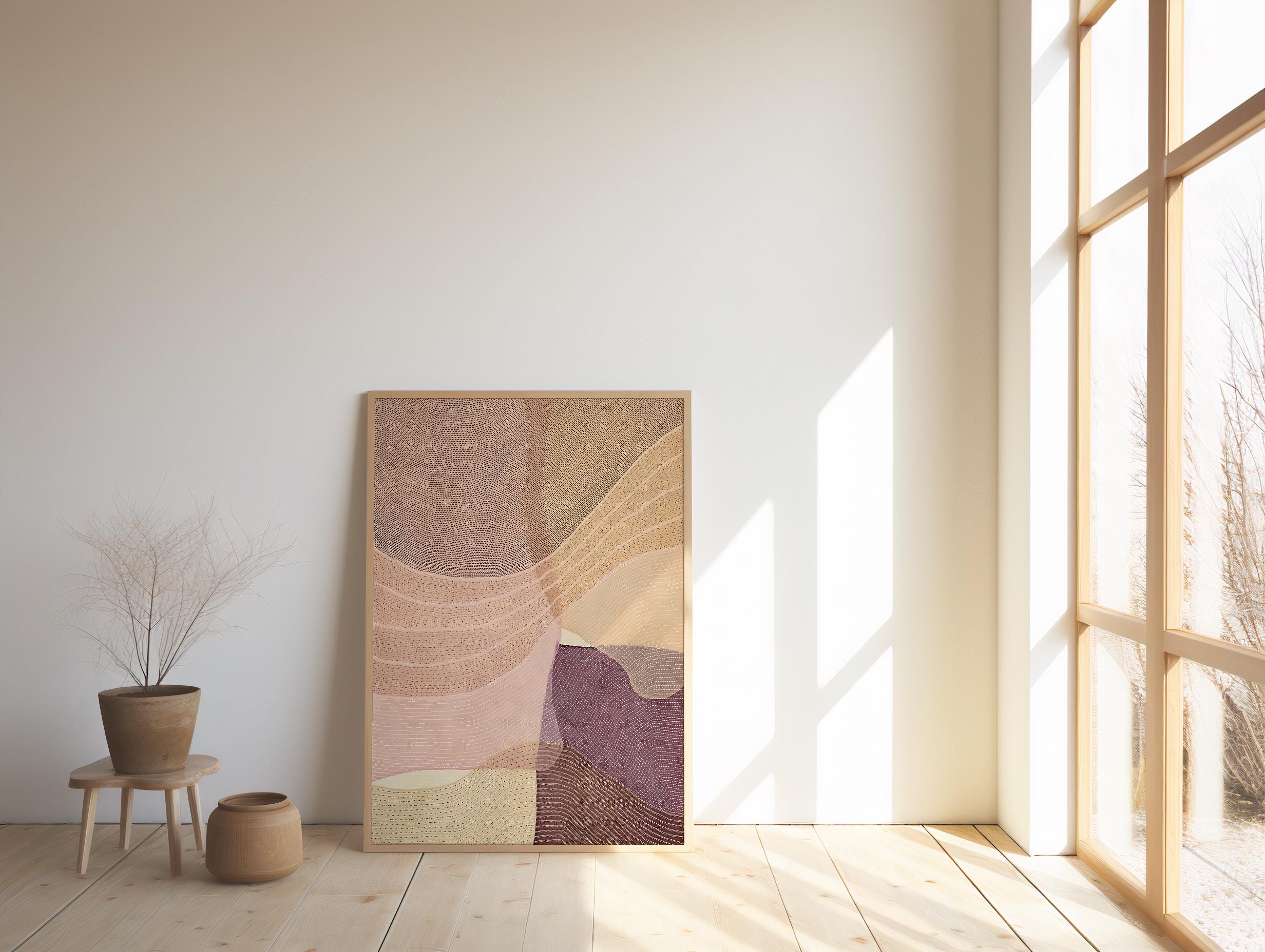 A warm, neutral abstract artwork featuring layered organic shapes in beige, blush, mauve, and earthy brown tones. Intricate dotted and linear patterns create soft movement and depth, making this print perfect for modern, Scandinavian, boho, and minimalist interiors. Ideal for bedrooms, living rooms, offices, and gallery walls.