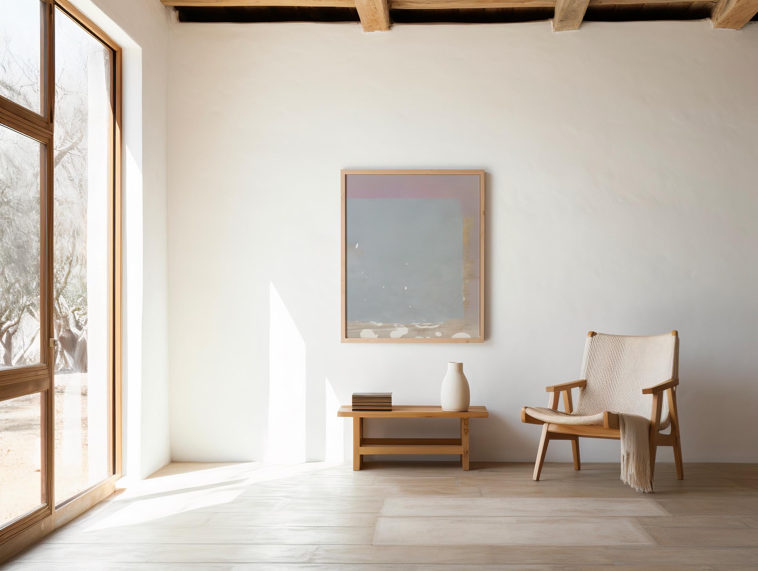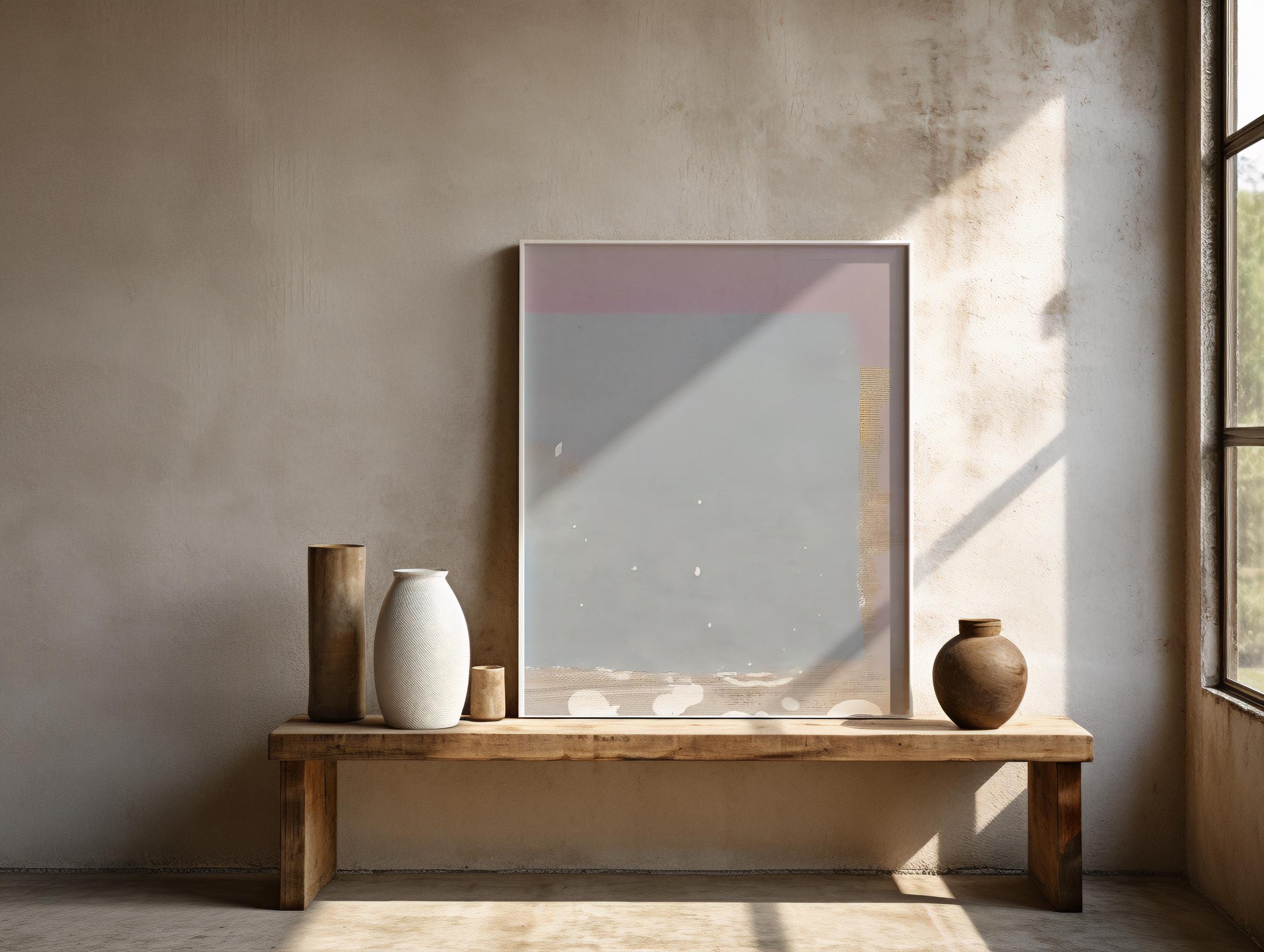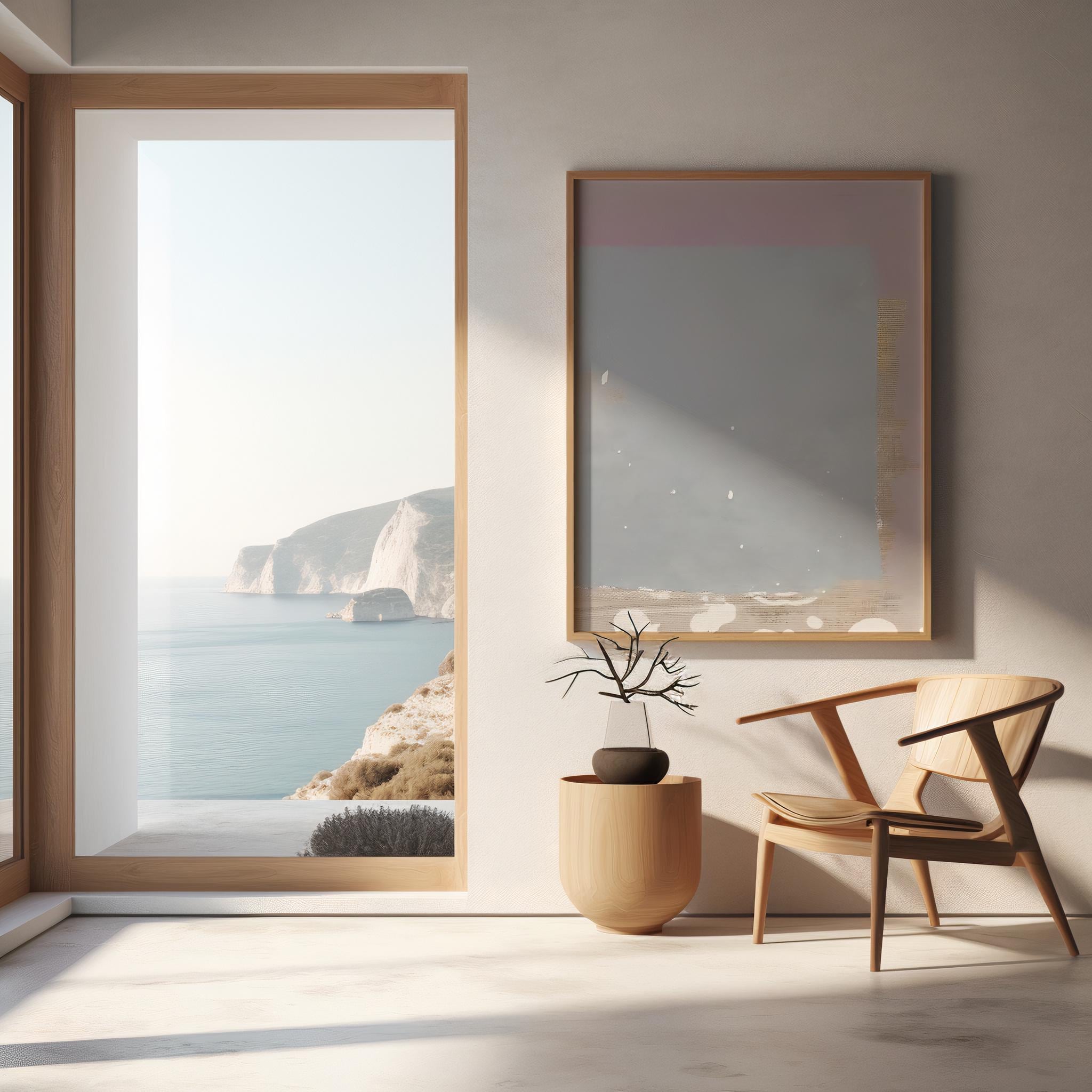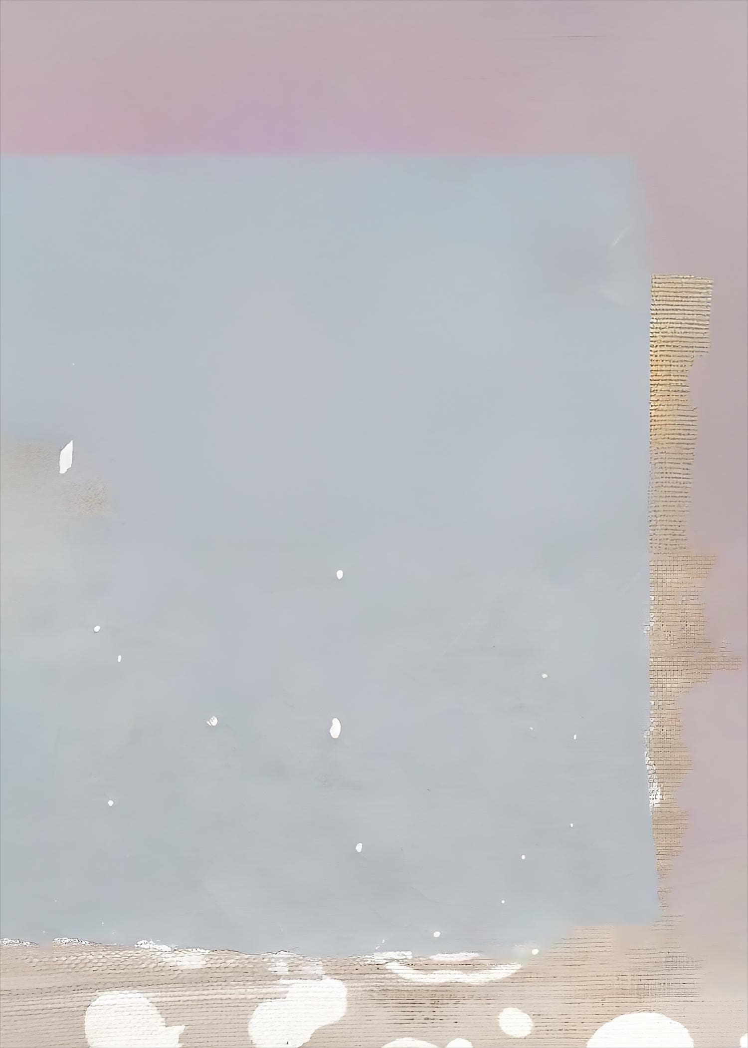 Abstract minimalist artwork featuring soft pastel tones of lavender, blush, and cool grey with subtle grain textures and organic paint details. Great for modern interiors, nurseries, neutral spaces, and serene wall décor.