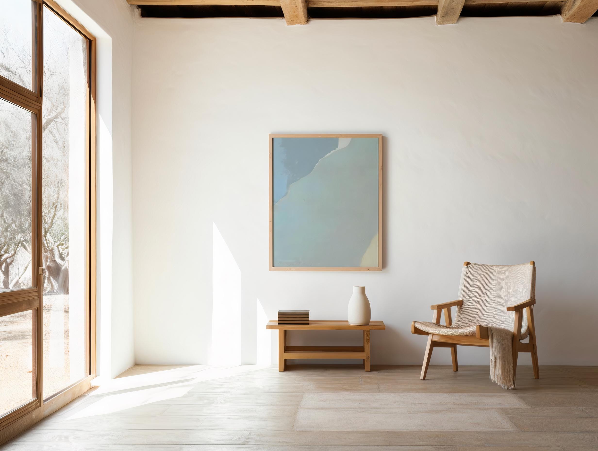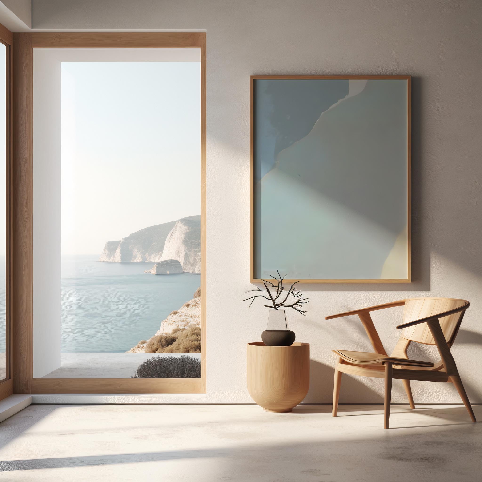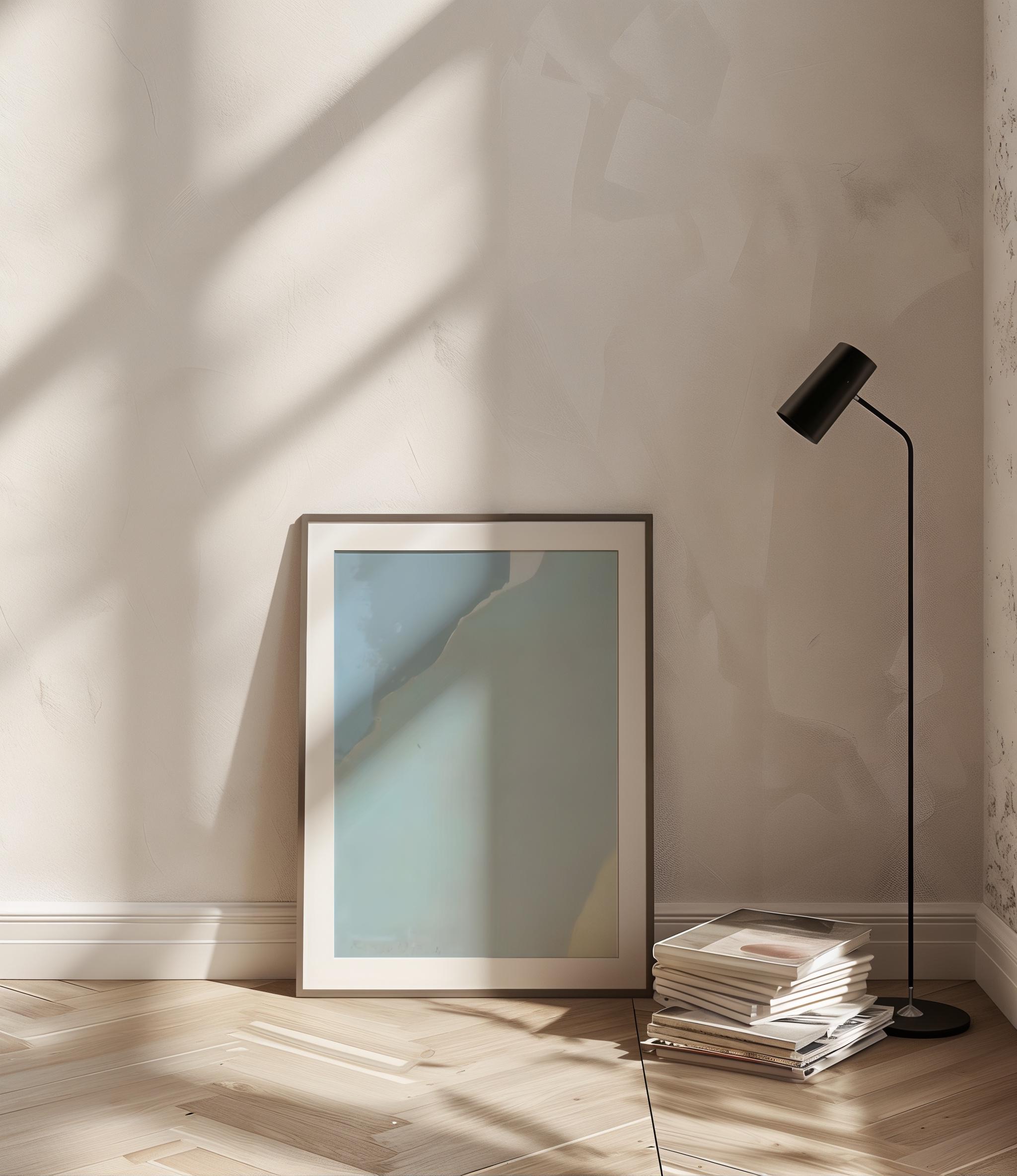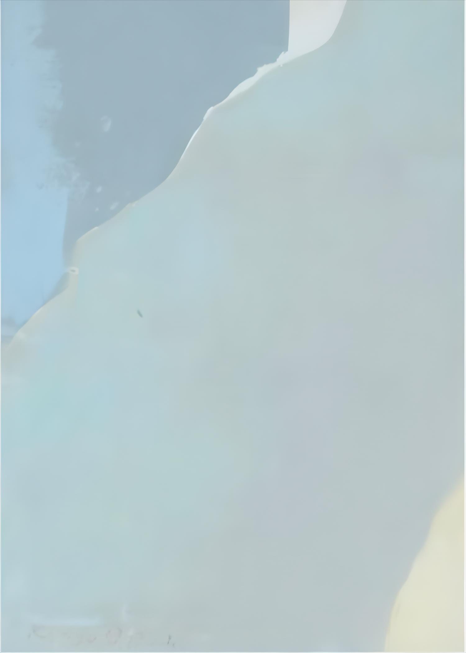 Minimal abstract artwork featuring soft blended hues of pale blue, cream, and subtle turquoise with organic, layered textures. Calm, airy, and neutral—ideal for serene spaces, coastal interiors, nurseries, and modern minimalist décor.