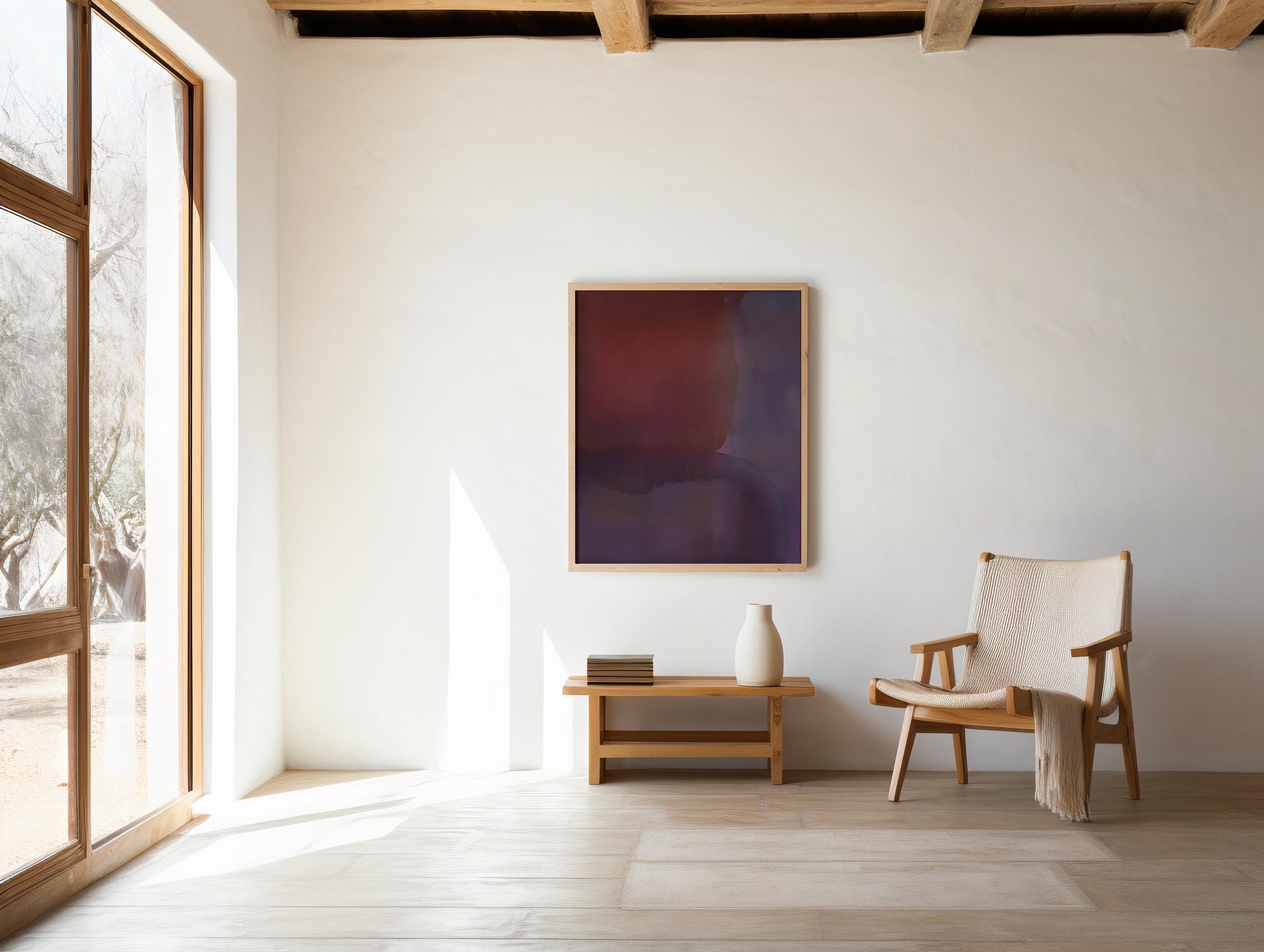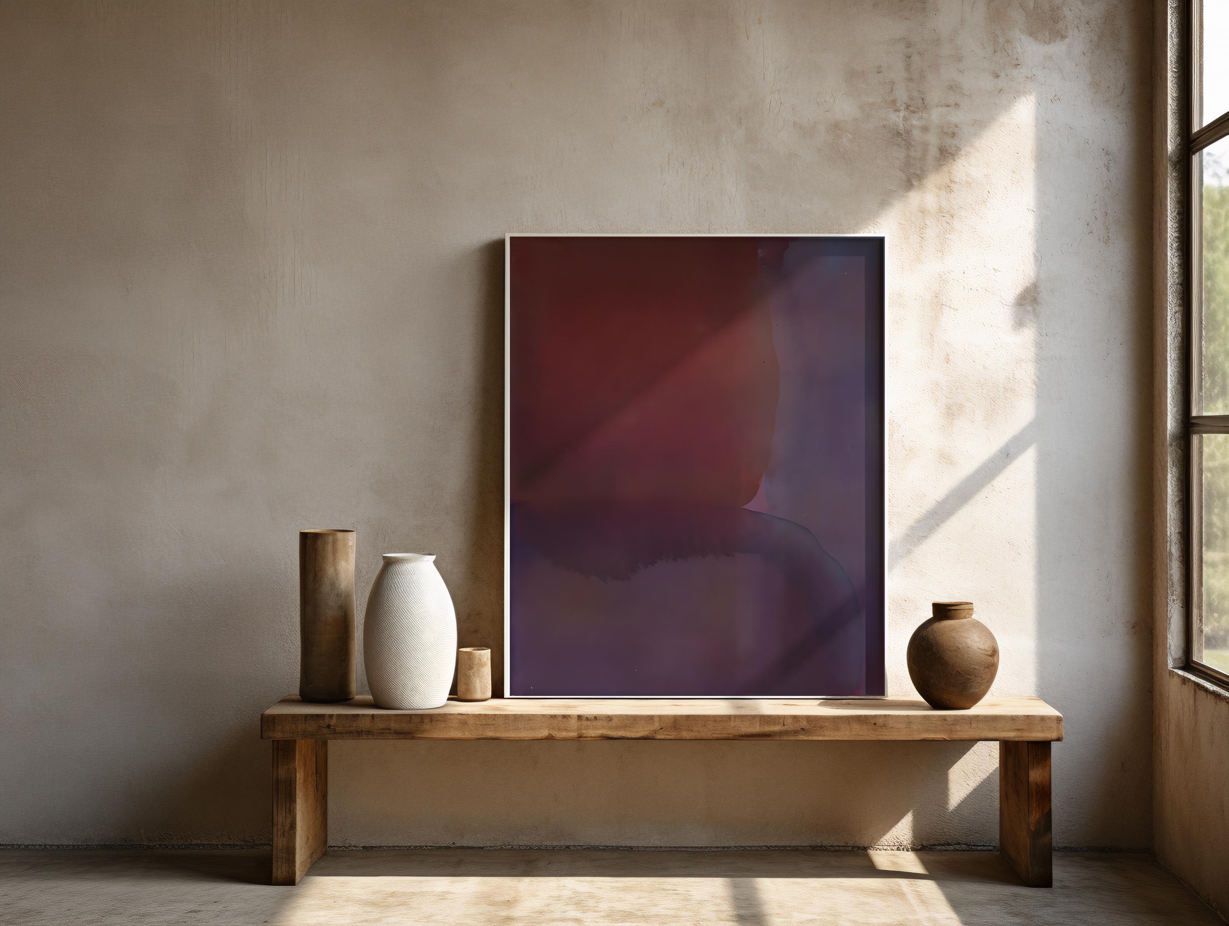 Fine art poster printed on heavyweight matte paper using high-fidelity giclée printing for rich depth, smooth gradients, and museum-quality color. Features layered tones of deep red, plum, and violet transitioning into soft abstract shapes. Dramatic yet minimal—ideal for luxury interiors, moody spaces, bedrooms, dining rooms, and modern gallery walls.