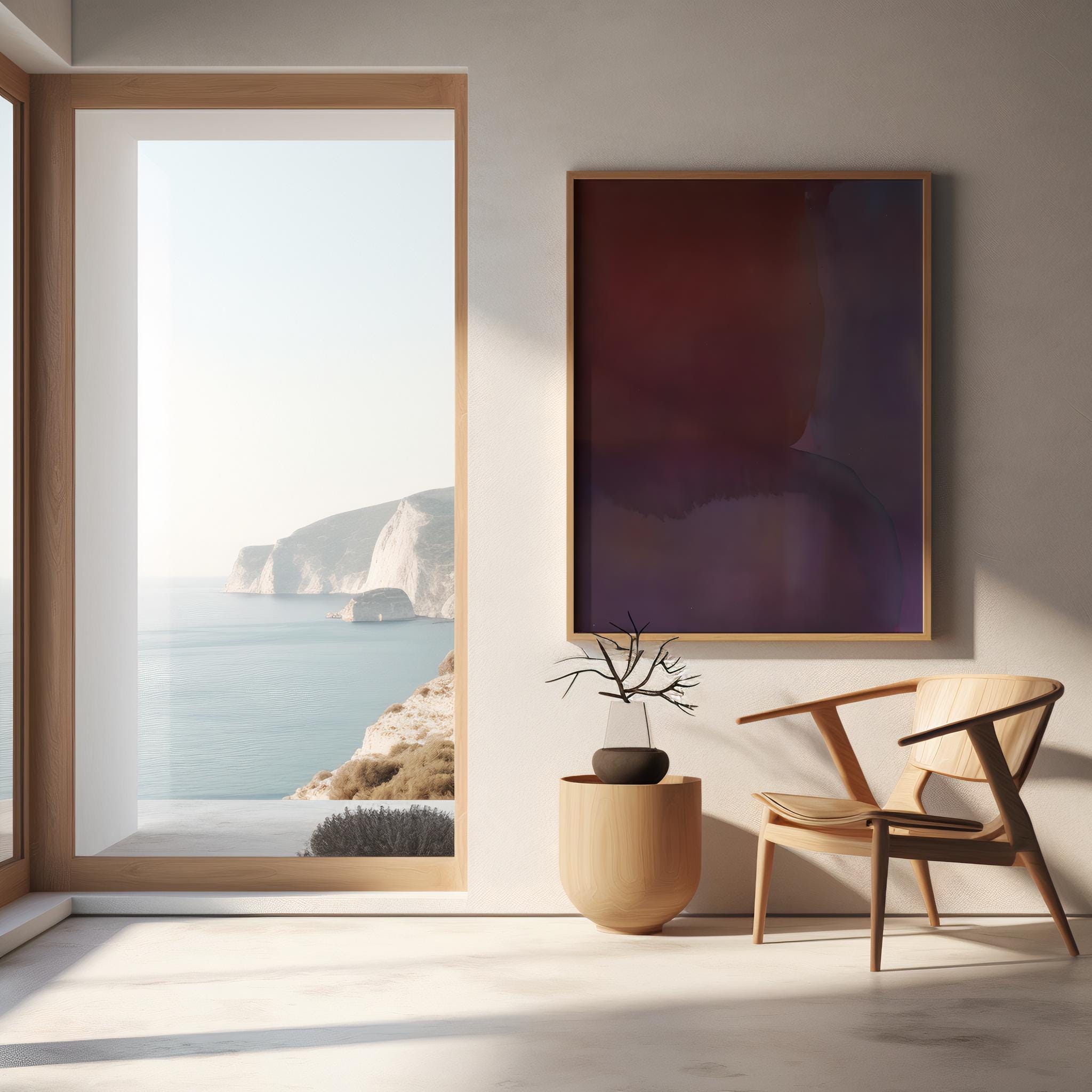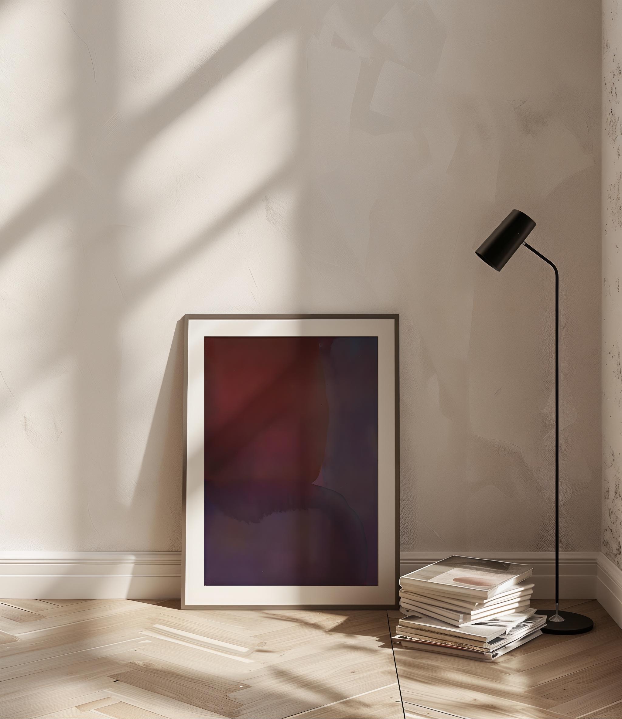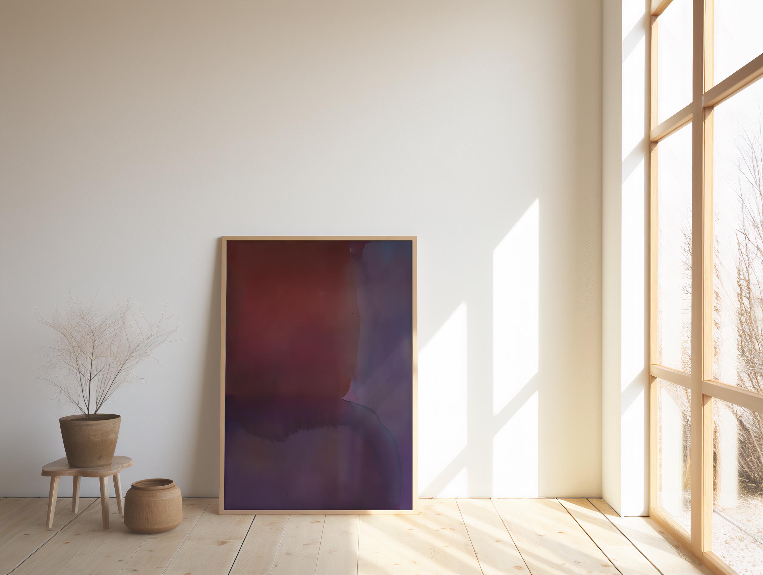 Bold abstract artwork featuring deep red, plum, and violet gradients with soft transitions and moody, immersive color fields. Modern, dramatic, and minimal—perfect for large-scale printing, gallery walls, living rooms, bedrooms, offices, and sophisticated interiors.