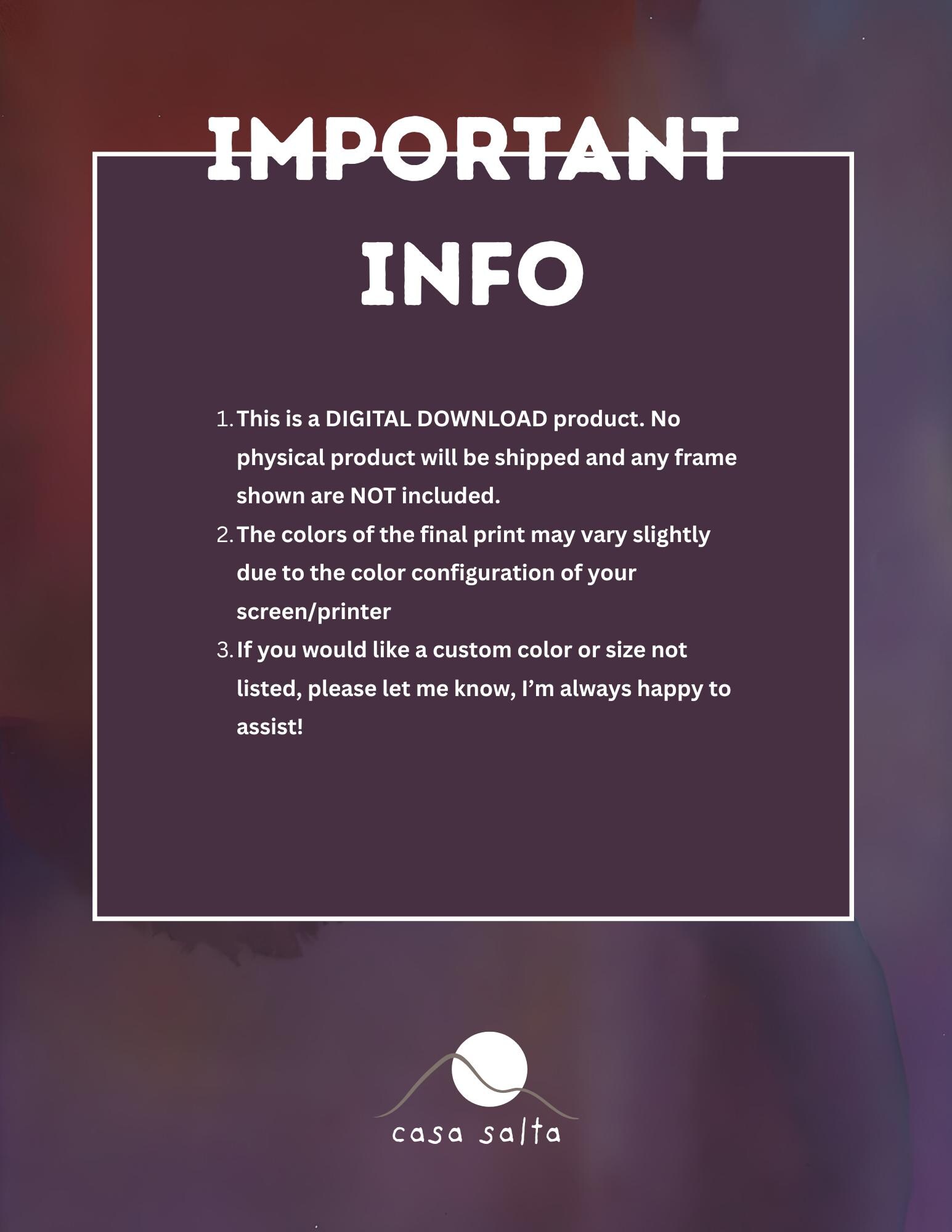 - This is a **DIGITAL ITEM** only. No physical product will be shipped to you. - Colors may vary slightly due to different monitor and printer calibrations.