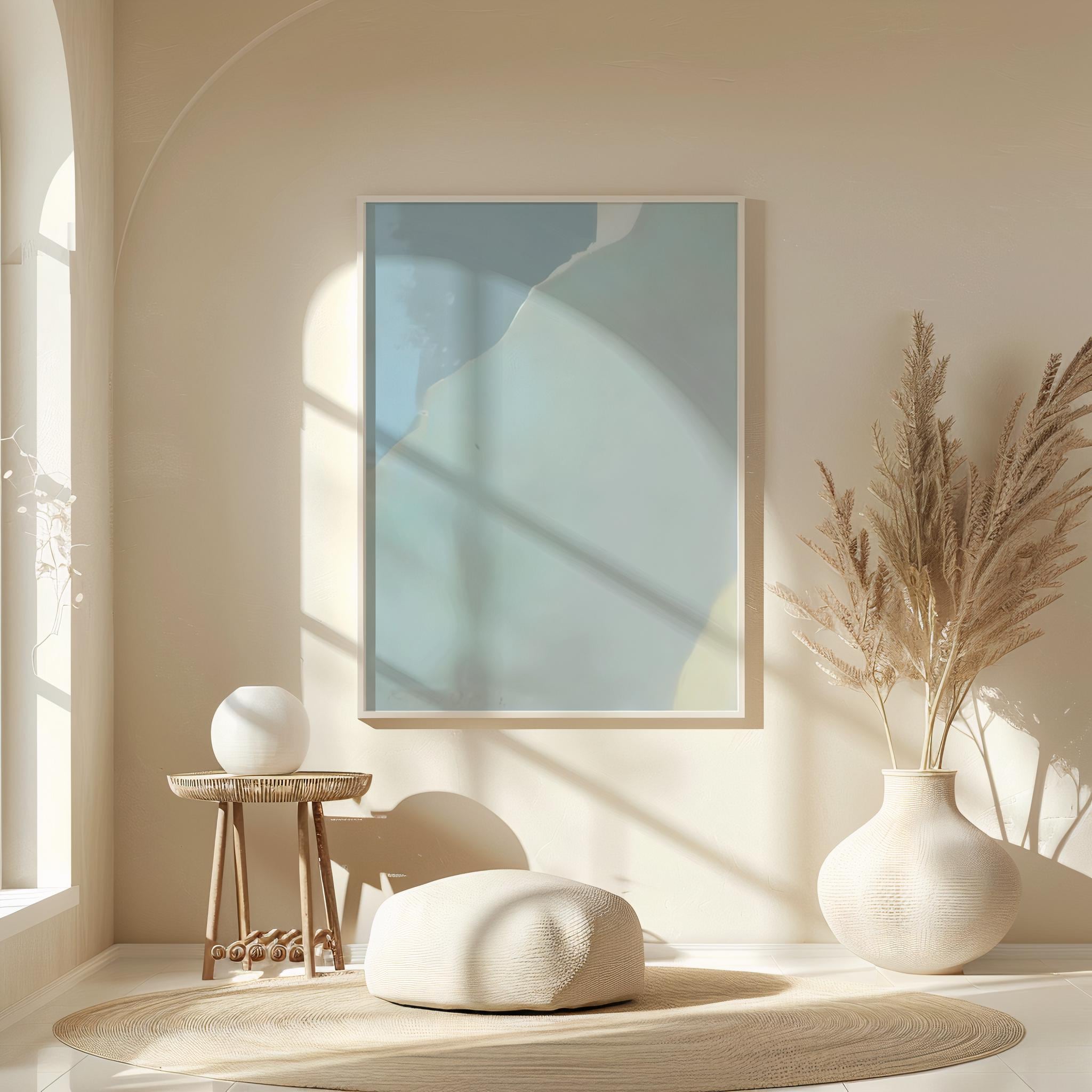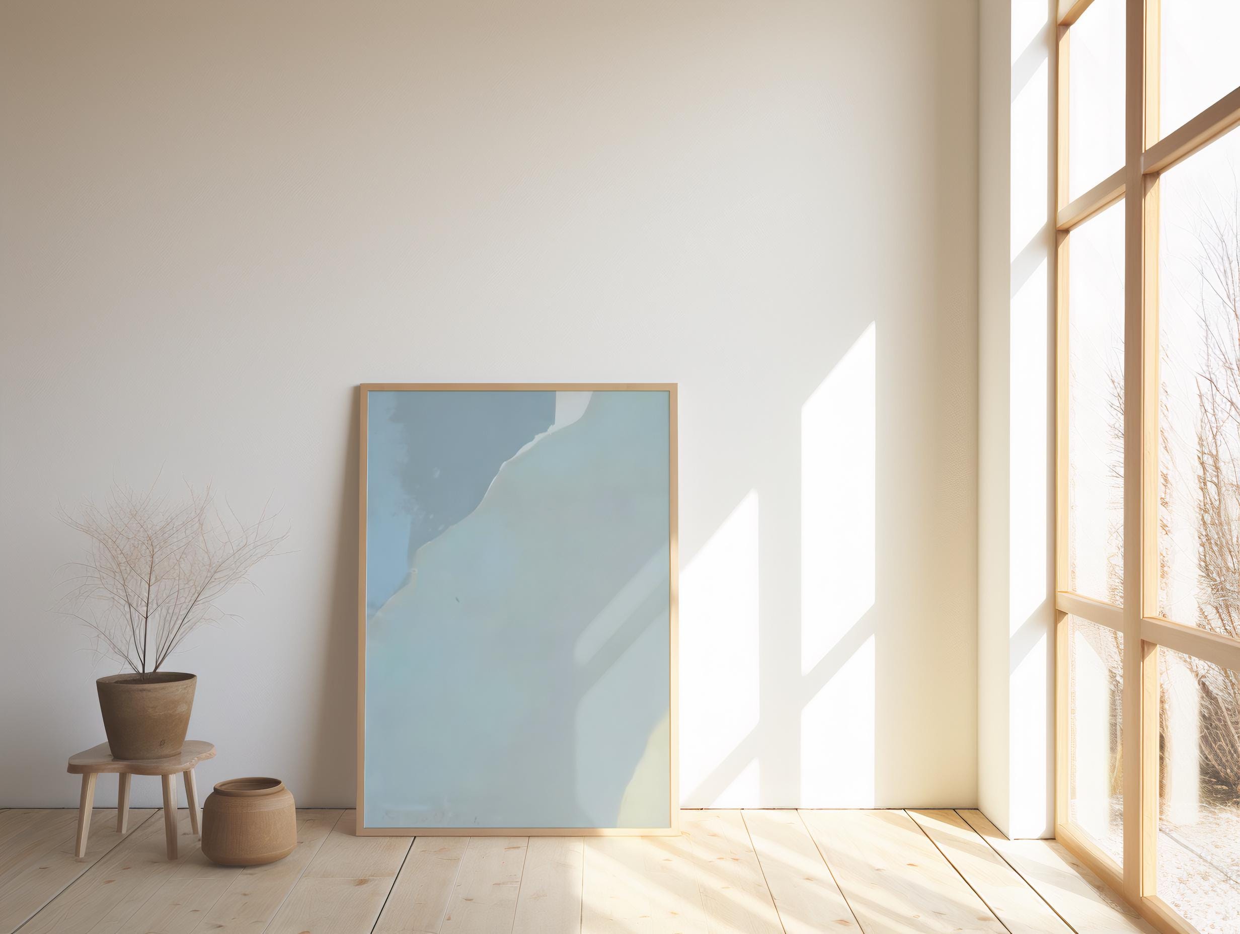 Bring a calm, coastal feel into your space with this soft abstract fine art poster featuring layered tones of ocean blue, pale sand, and gentle misty gradients. Designed to evoke shoreline textures without harsh contrast, it complements neutral interiors and minimalist décor.