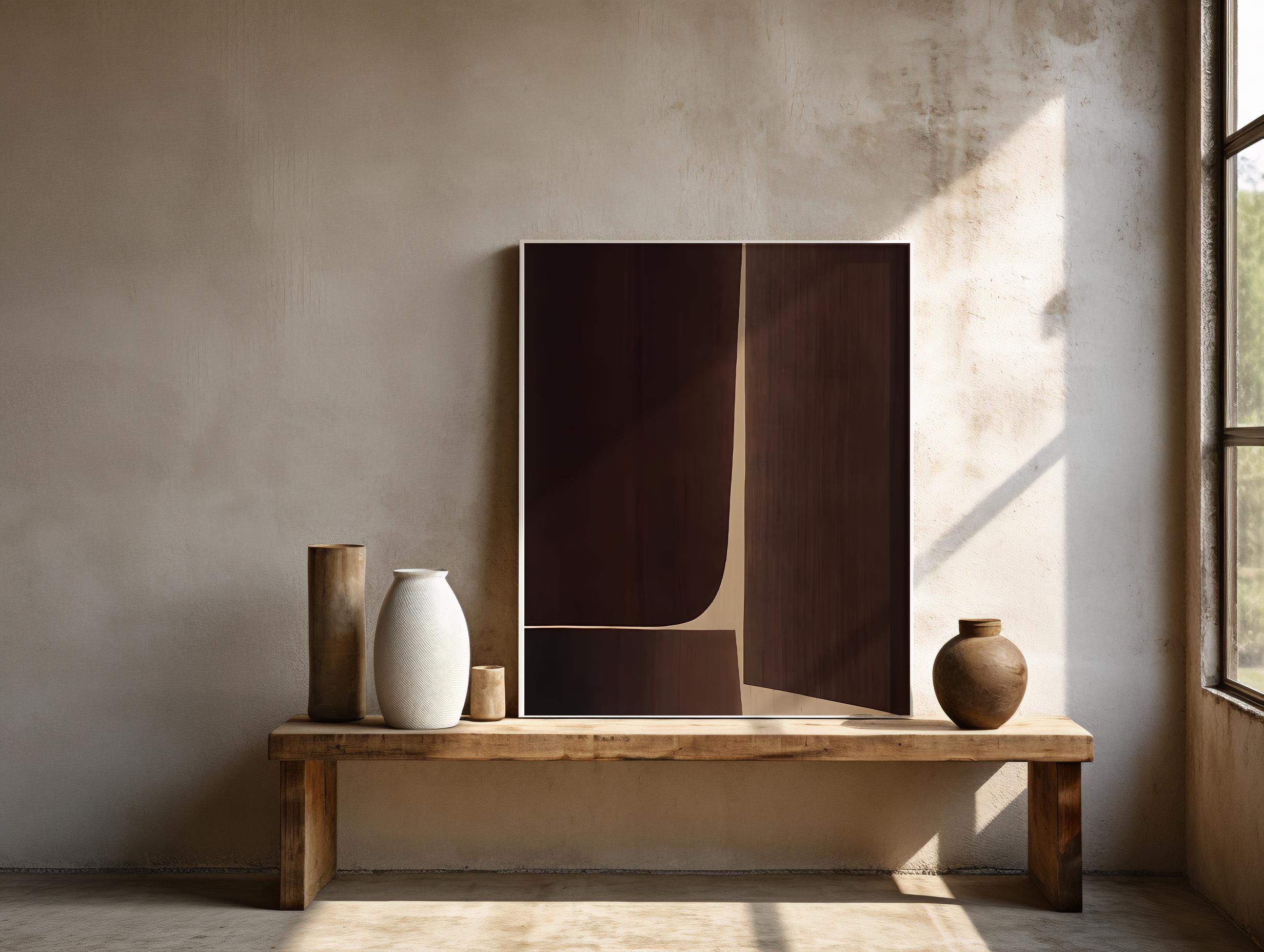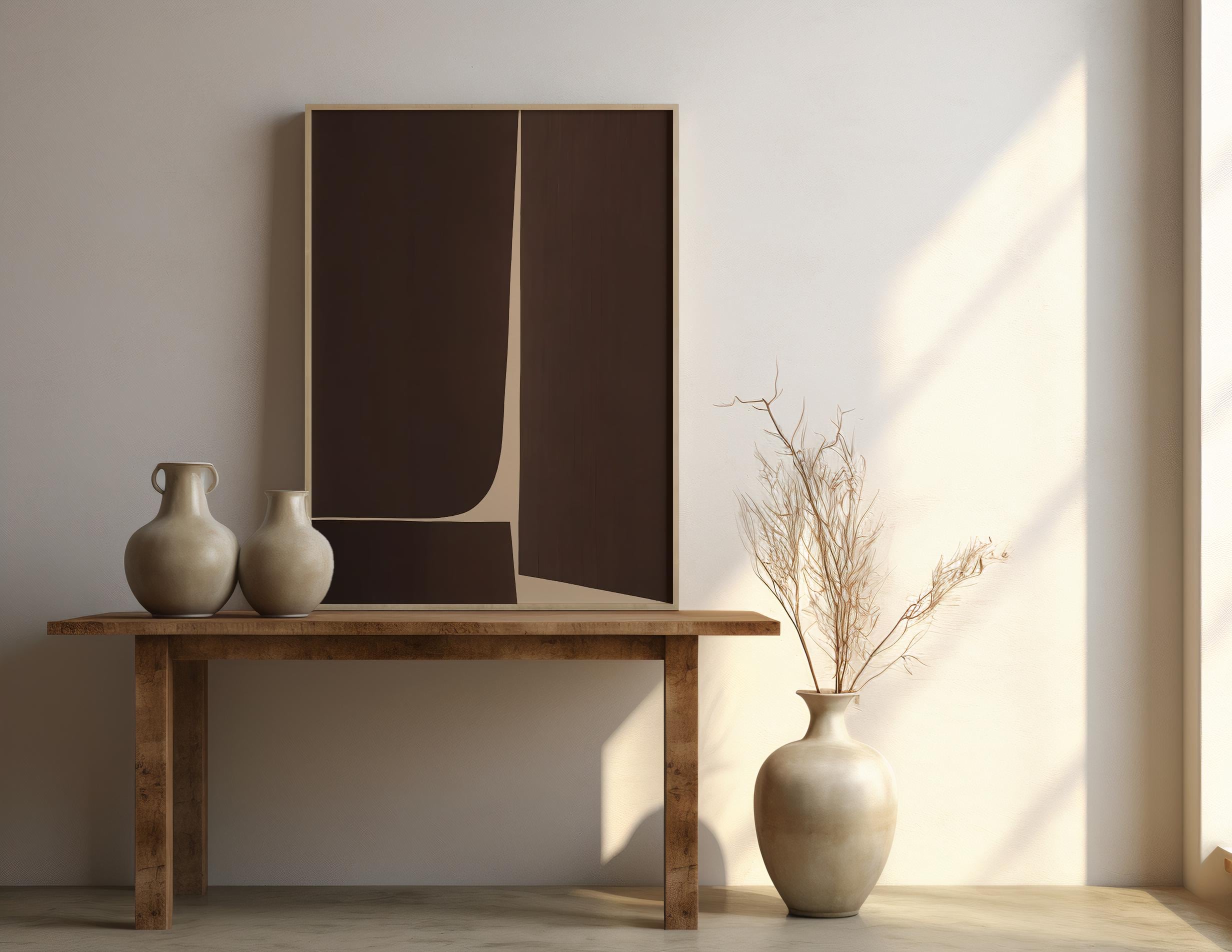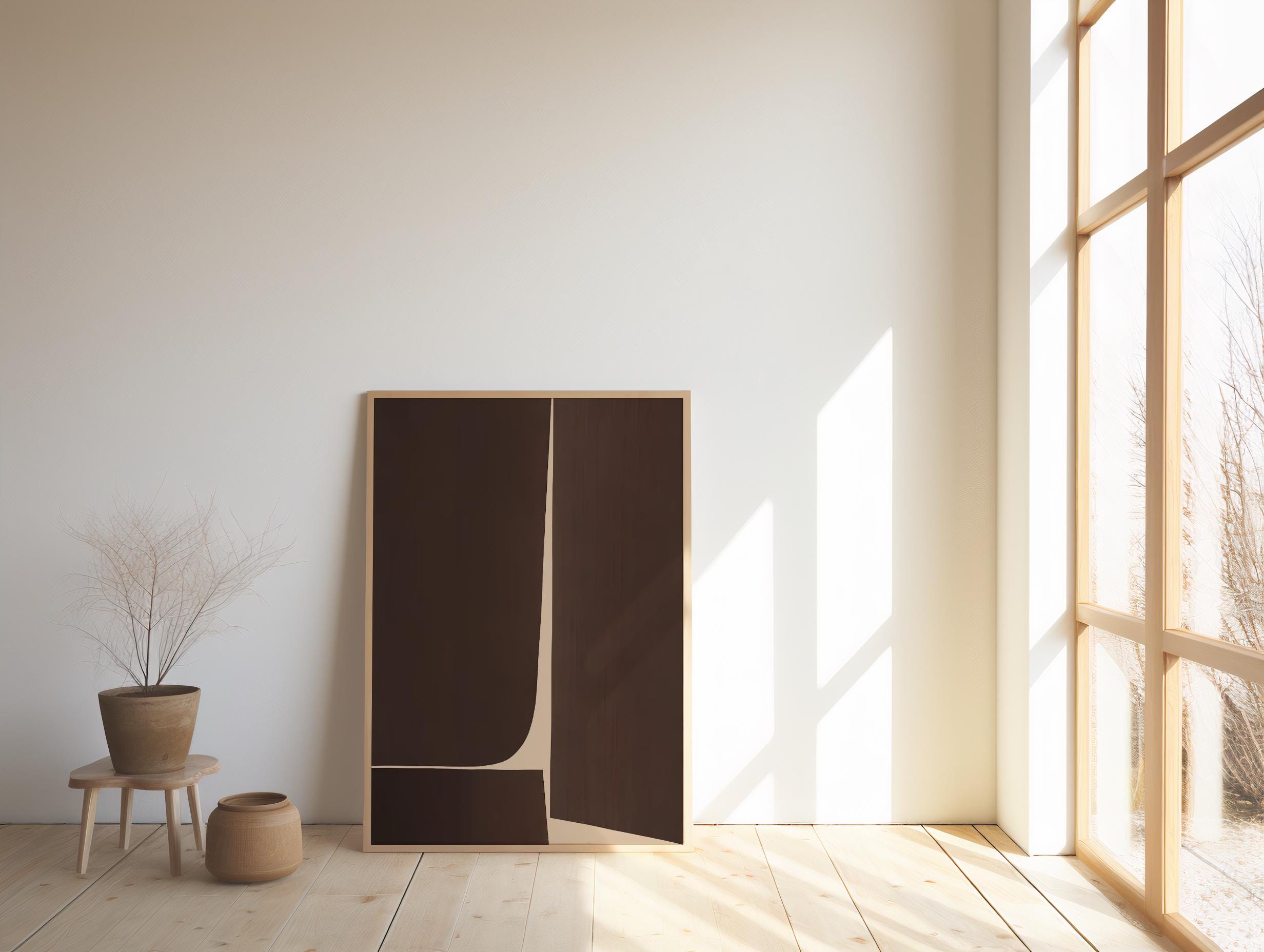 A modern minimalist brown abstract designed with smooth organic shapes and rich earthy tones. Perfect for living rooms, bedrooms, entryways, offices, and neutral-style interiors.
