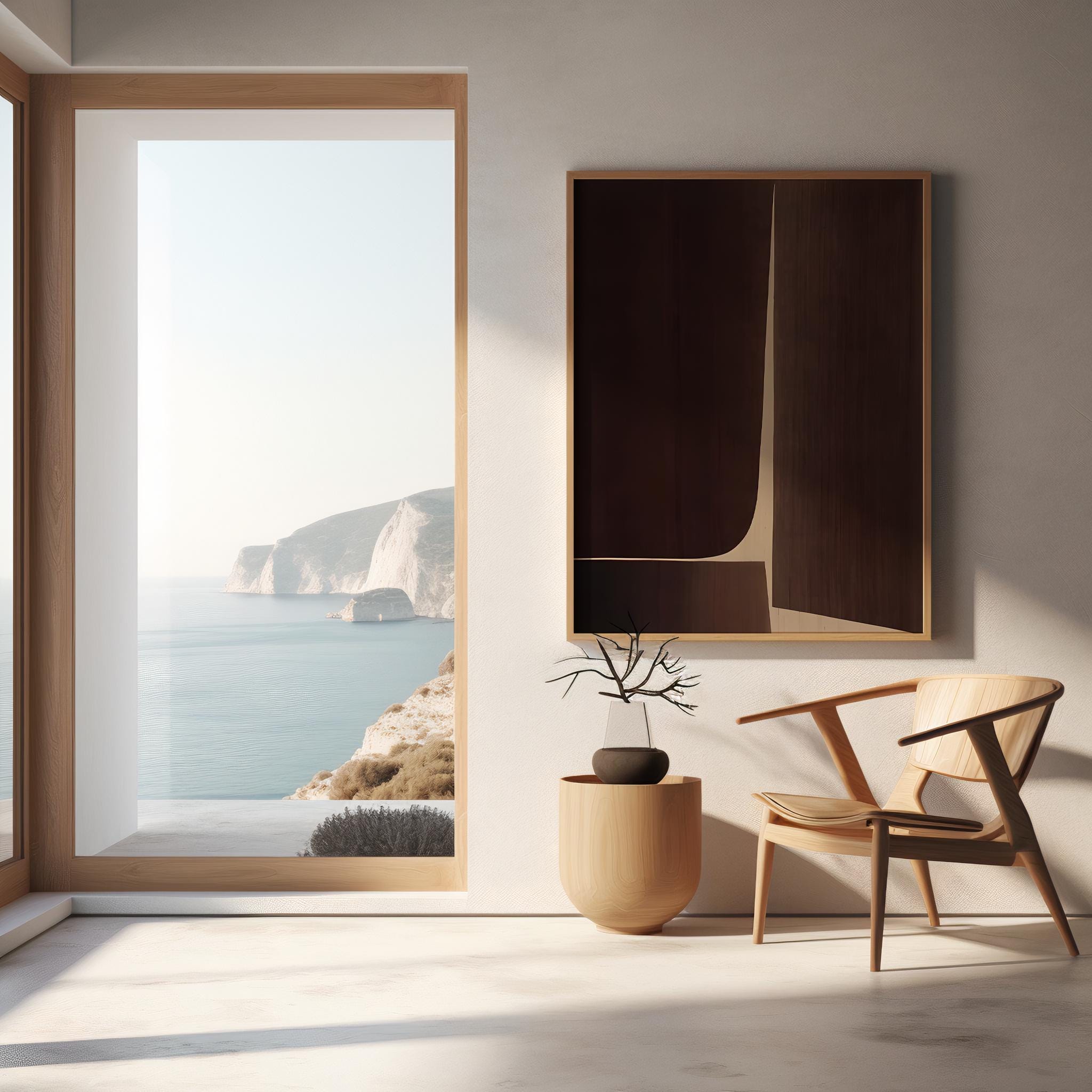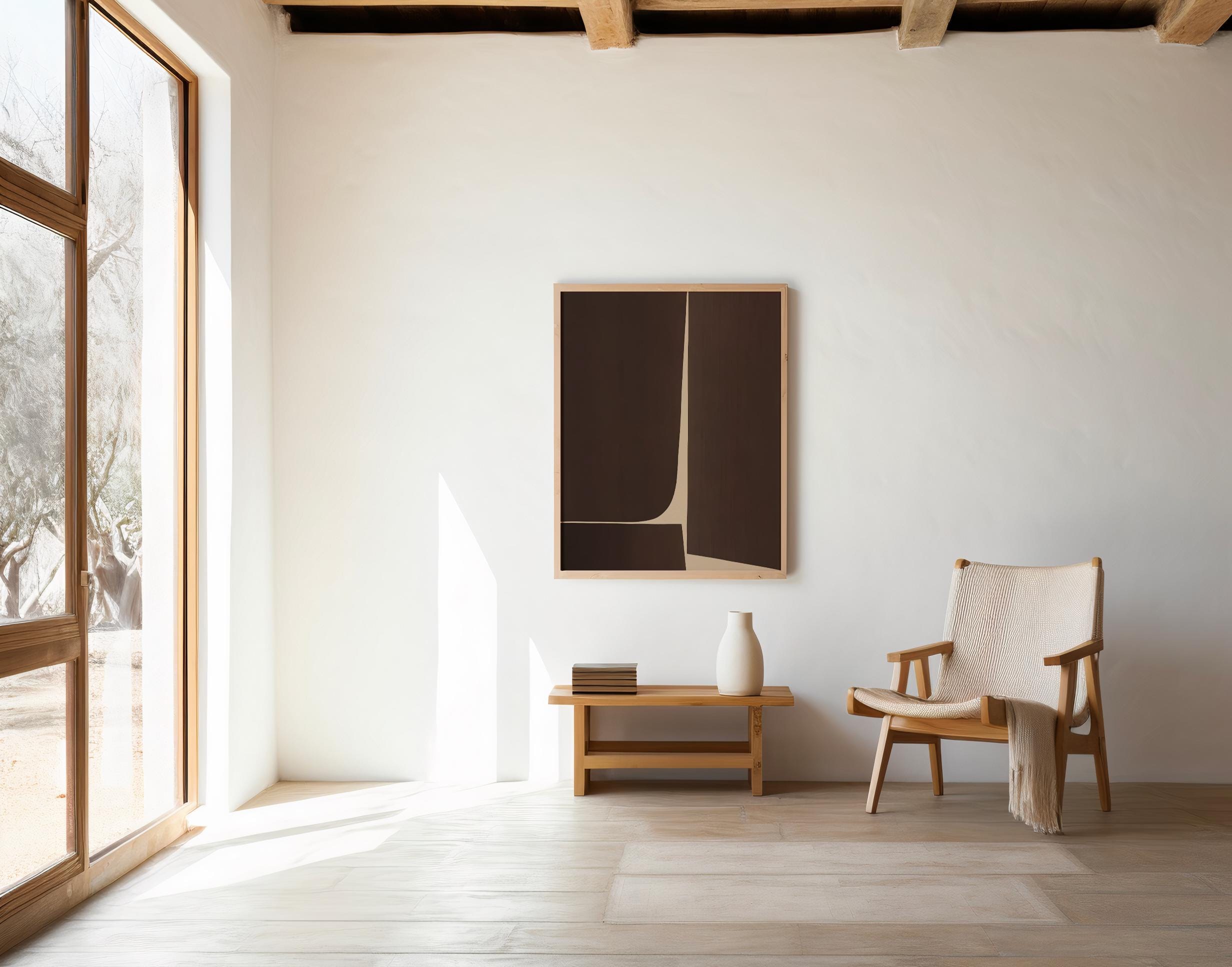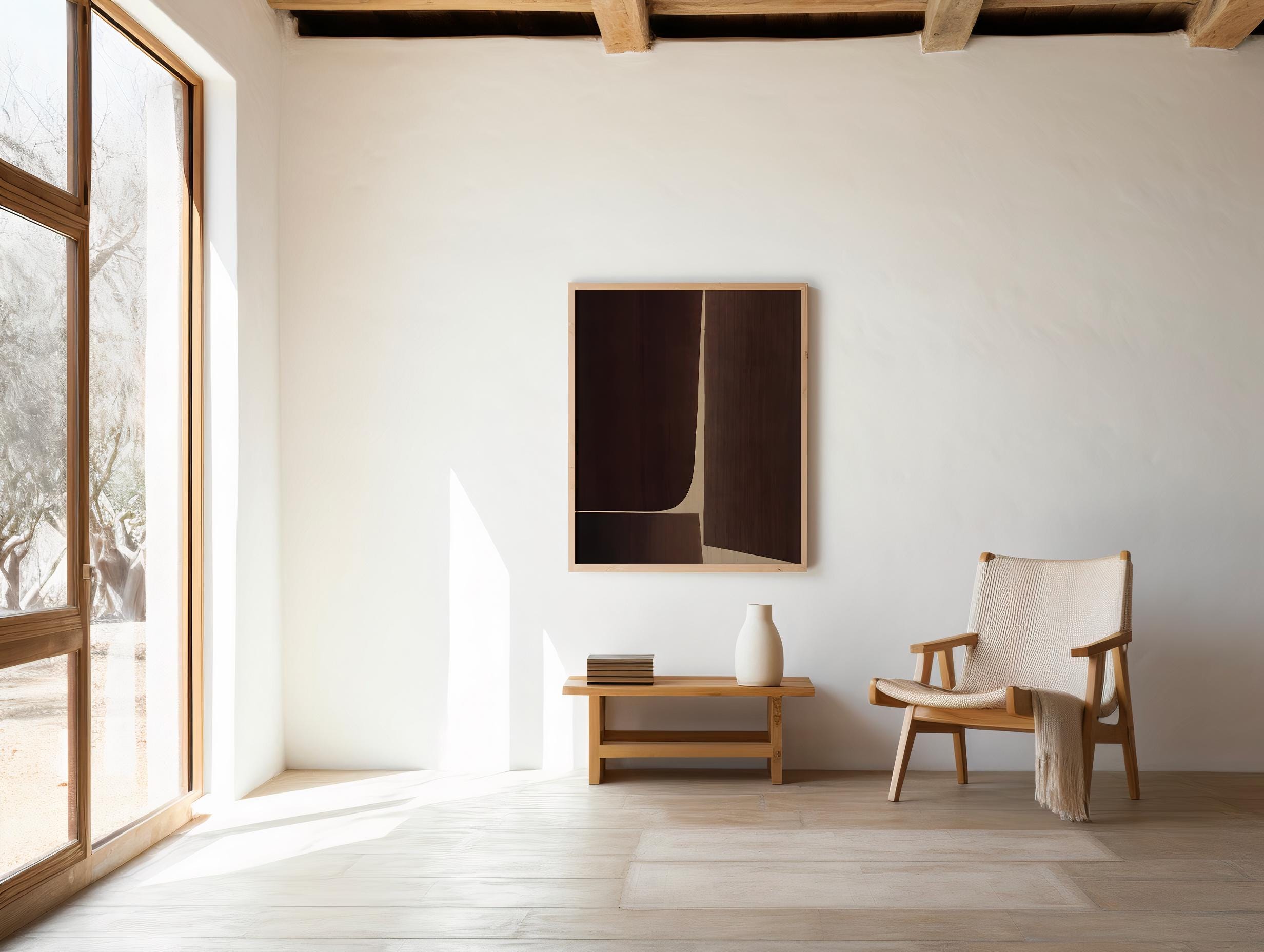 A modern minimalist brown abstract designed with smooth organic shapes and rich earthy tones. Perfect for living rooms, bedrooms, entryways, offices, and neutral-style interiors.