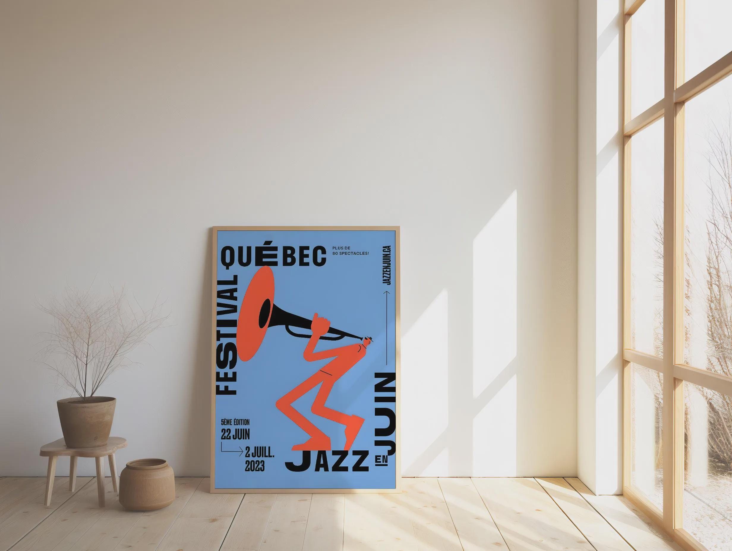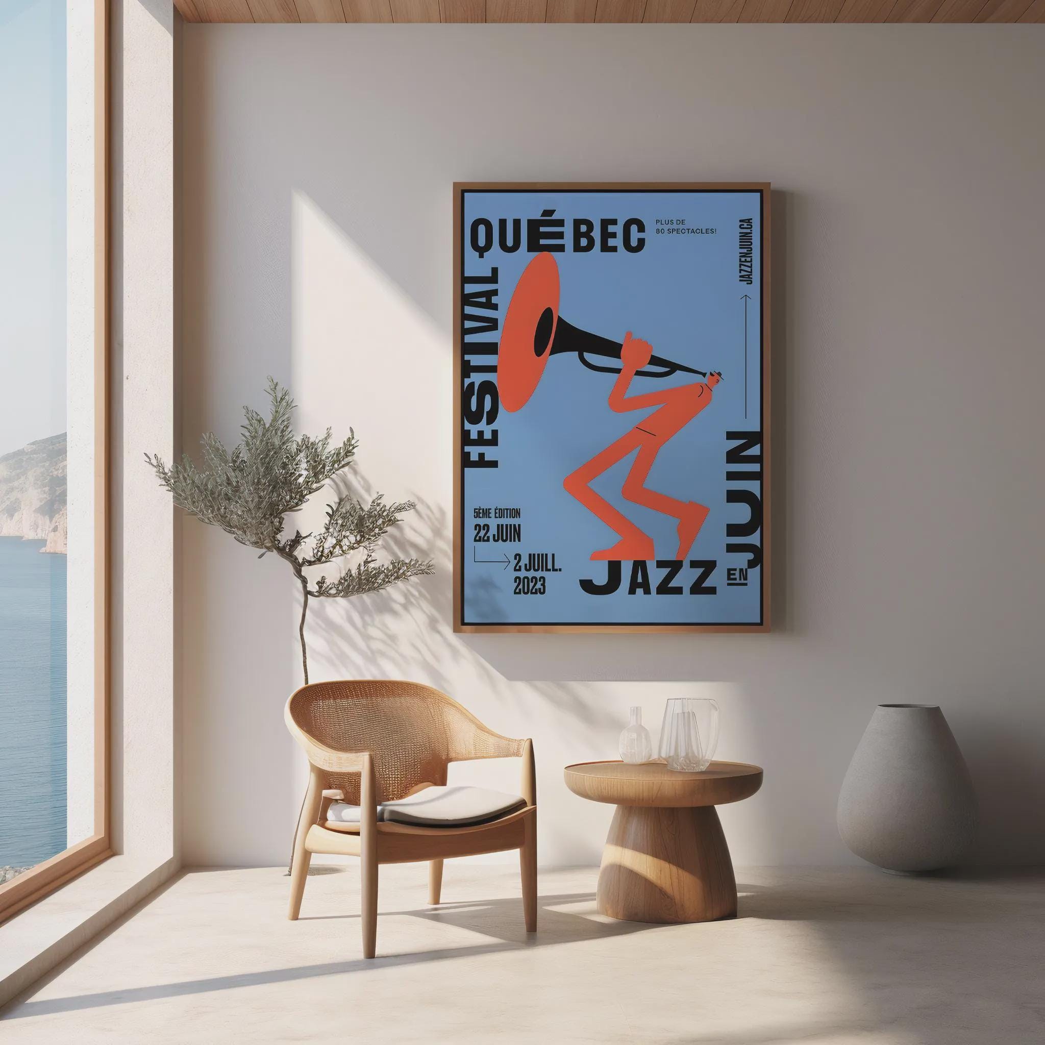 Our museum-quality fine art posters are printed on heavyweight matte paper with a smooth, luxurious finish—designed for collectors, creatives, and anyone who appreciates bold, expressive design. This vibrant Jazz Festival artwork blends modern illustration with classic vintage poster style: dynamic typography, a stylized musician in motion, and a striking blue-and-orange palette that instantly energizes any space.