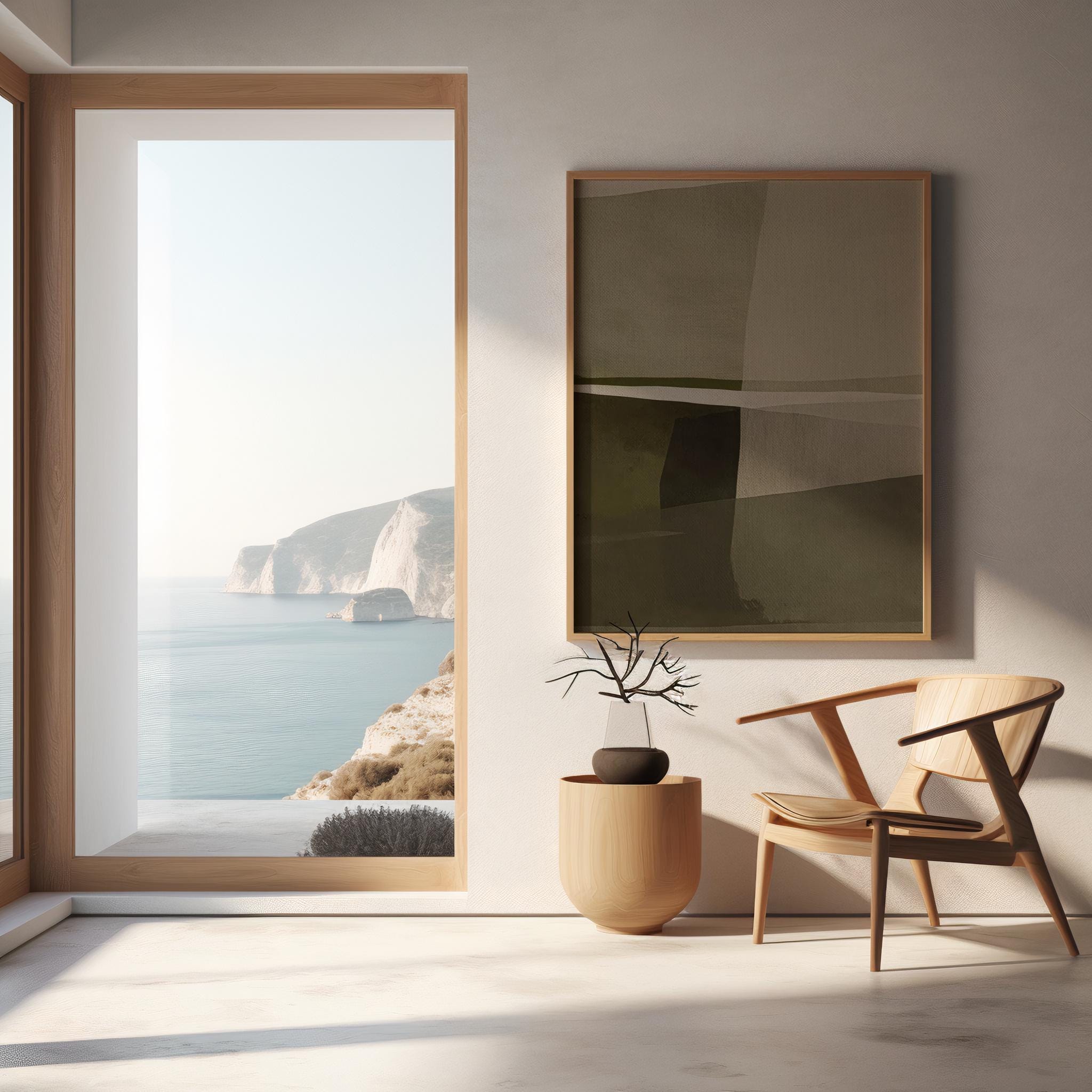 A serene abstract landscape in layered sage, olive, and warm beige tones. Soft texture and gentle horizontal movement create a calming, organic composition — perfect for neutral interiors, minimalist homes, and contemporary spaces needing a grounded, sophisticated statement piece.