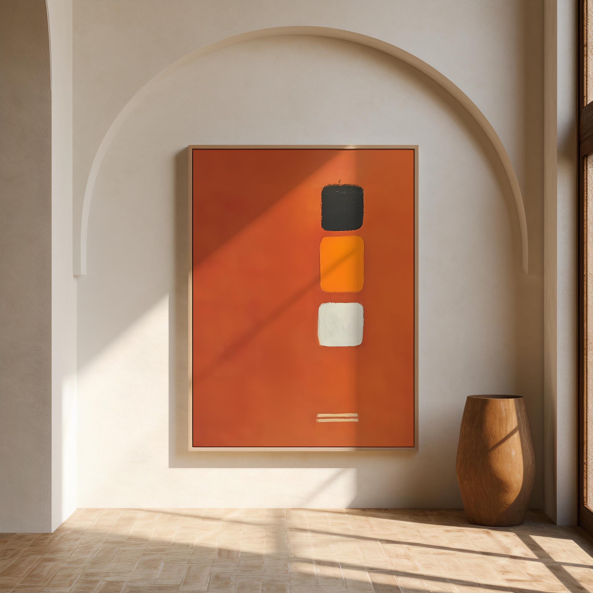 Elevate your space with this modern abstract orange fine art poster, designed with bold geometric shapes, warm tones, and a clean minimalist layout. This piece delivers a mid-century modern aesthetic that works in any room—living spaces, bedrooms, offices, or design-forward interiors.