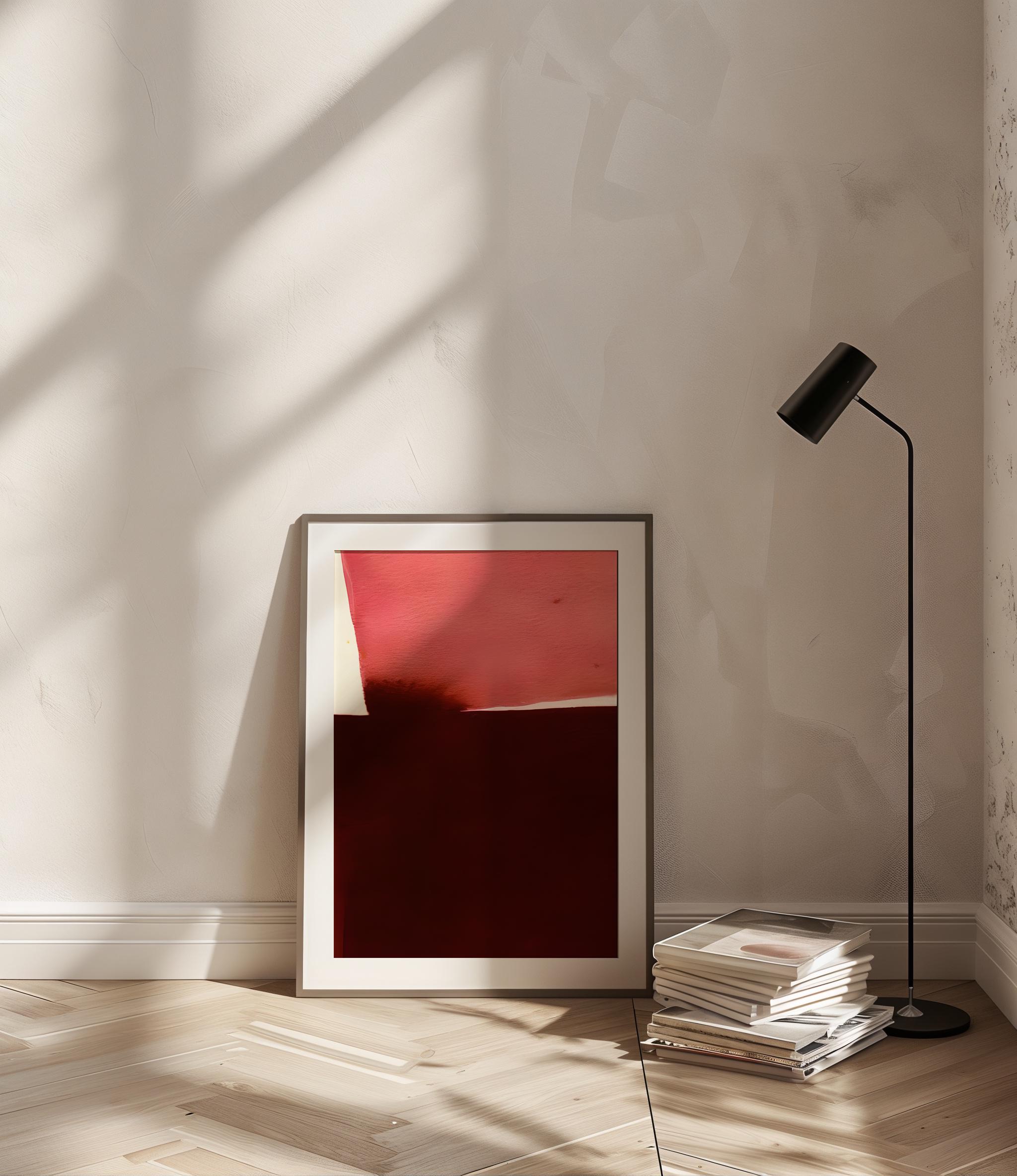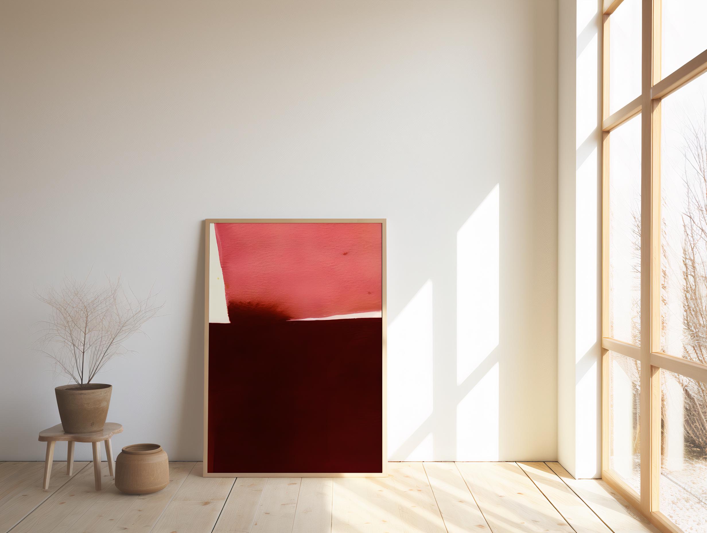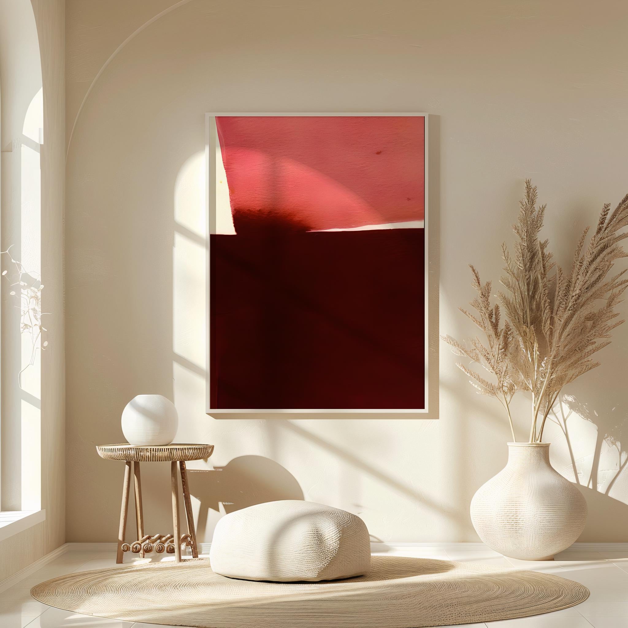 This red and maroon fine art poster features a bold, minimal color-field composition with smooth gradients and rich tonal depth. The warm palette adds drama, sophistication, and contemporary elegance to any wall, making it perfect for modern, neutral, or minimalist interiors.