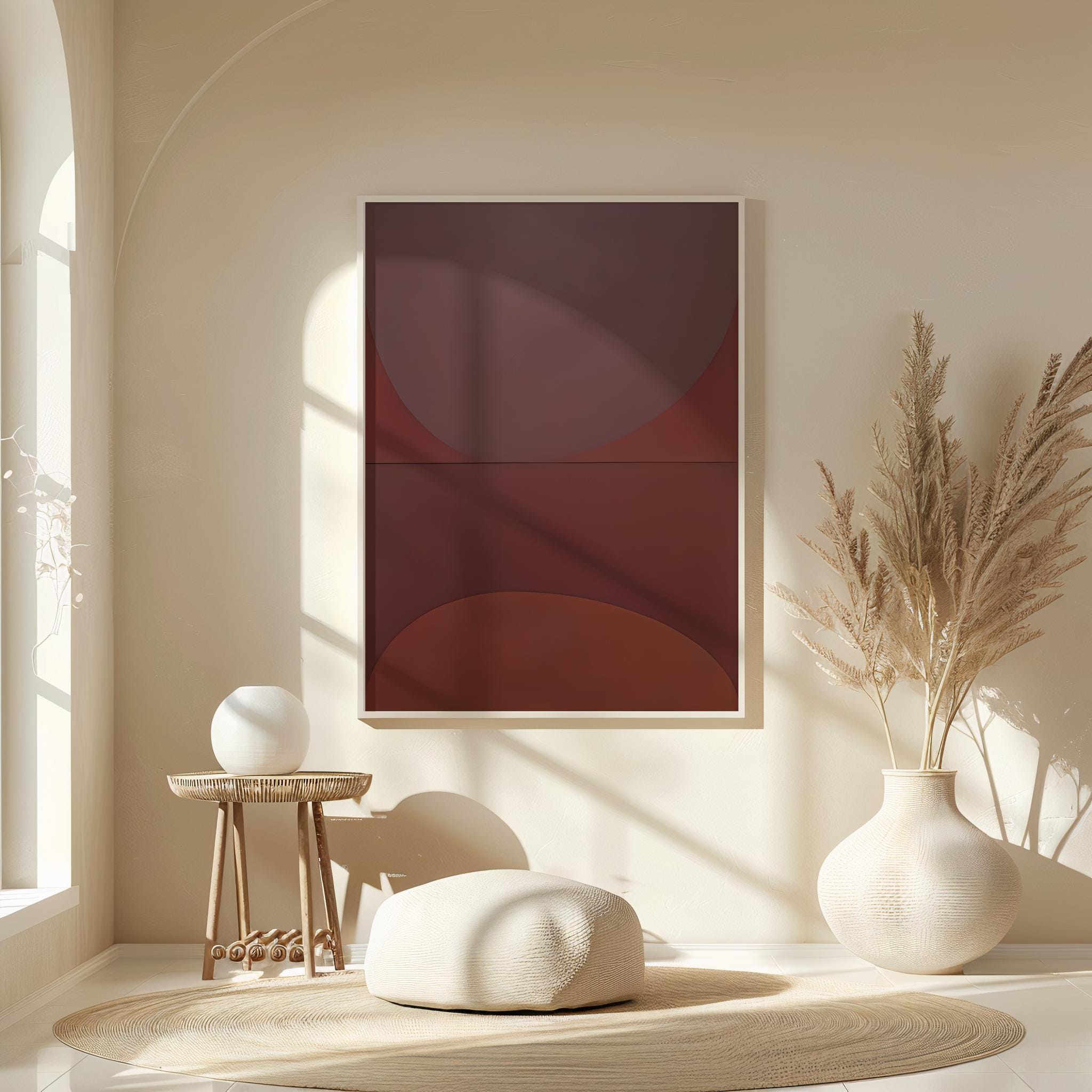 Framed Art: Deep Red Abstract | Modern Color Field Wall Decor | Minimal Warm Contemporary Print