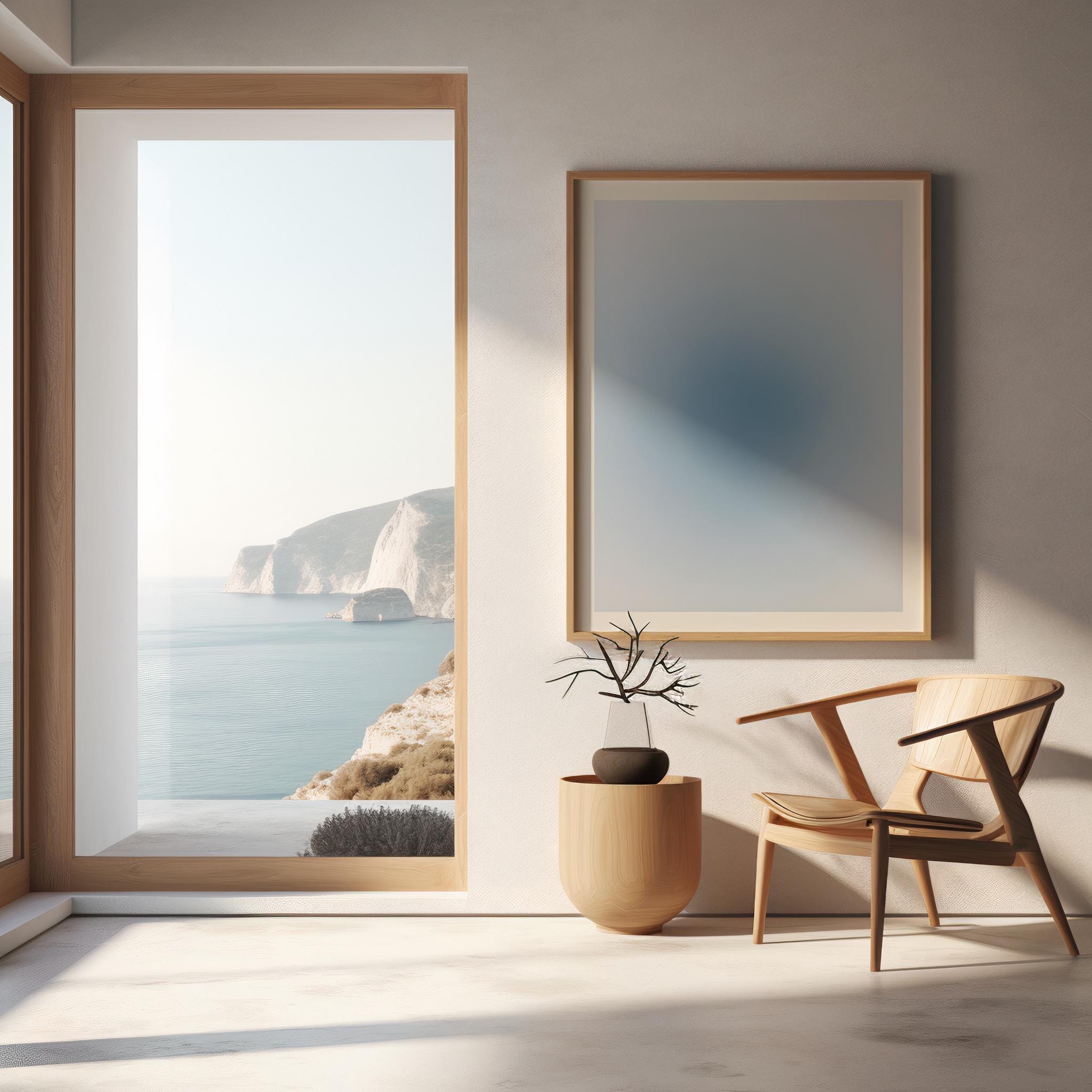 This digital artwork features a soft, atmospheric blue gradient that fades gently into pale neutrals, creating a calm, airy, cloud-like effect. Its minimal composition brings a sense of lightness and serenity to any room, making it perfect for modern, coastal, Scandinavian, or neutral interiors.