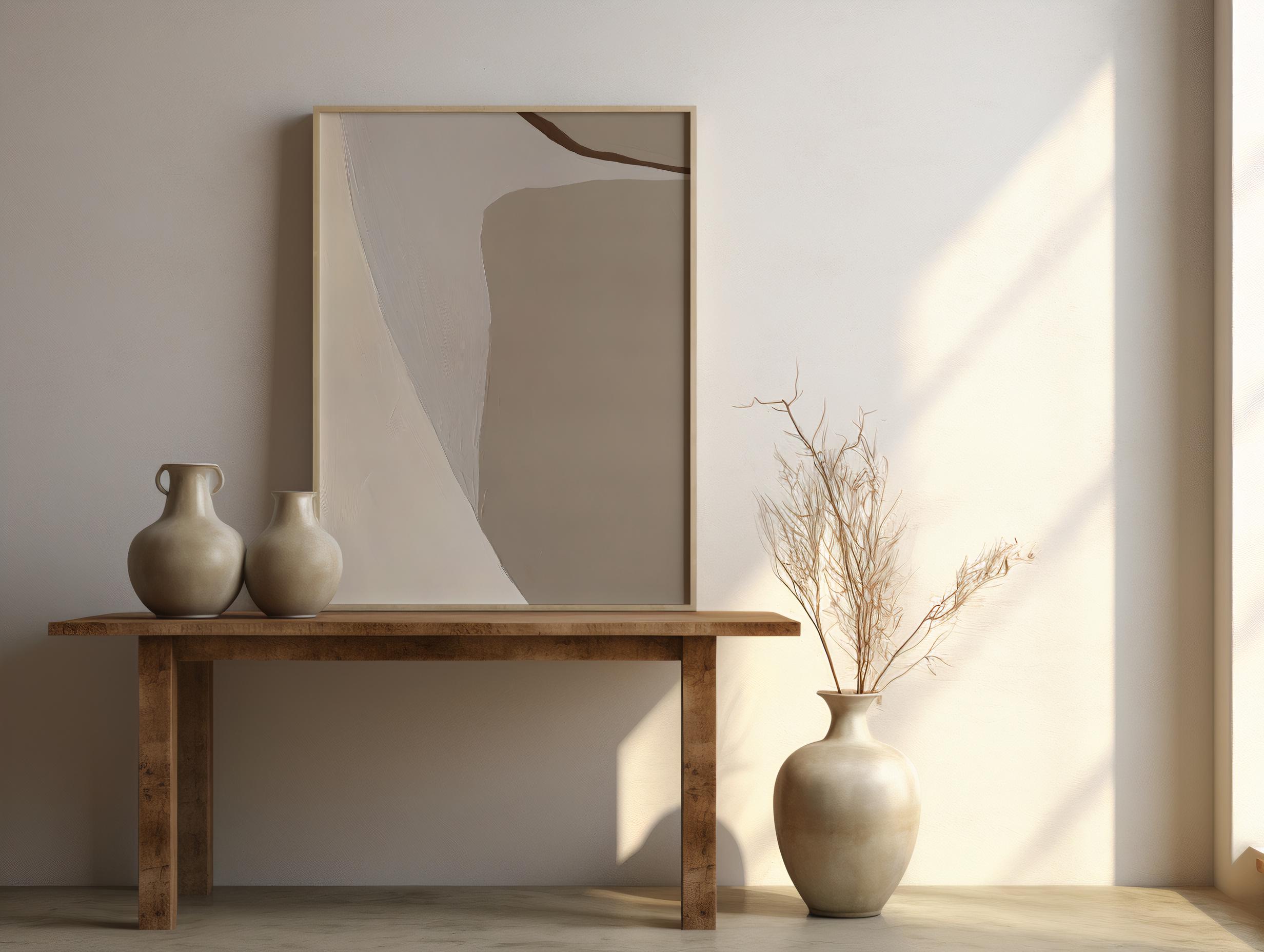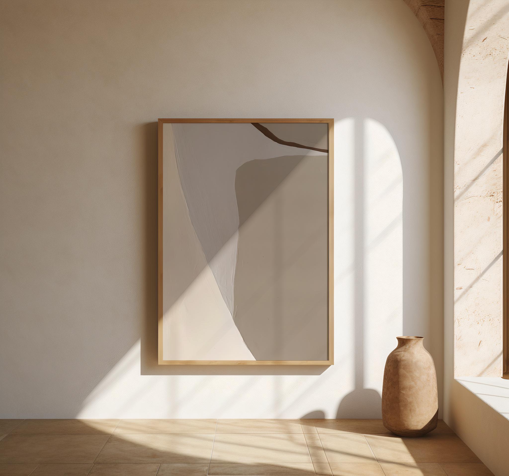 A calming minimalist abstract artwork featuring soft beige, cream, and taupe tones with smooth organic shapes. The warm neutral palette brings balance and understated elegance to any modern space—perfect for bedrooms, living rooms, and curated interiors.