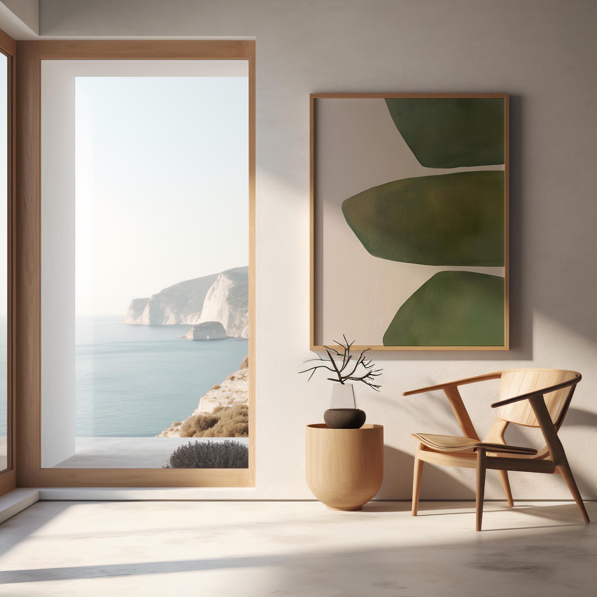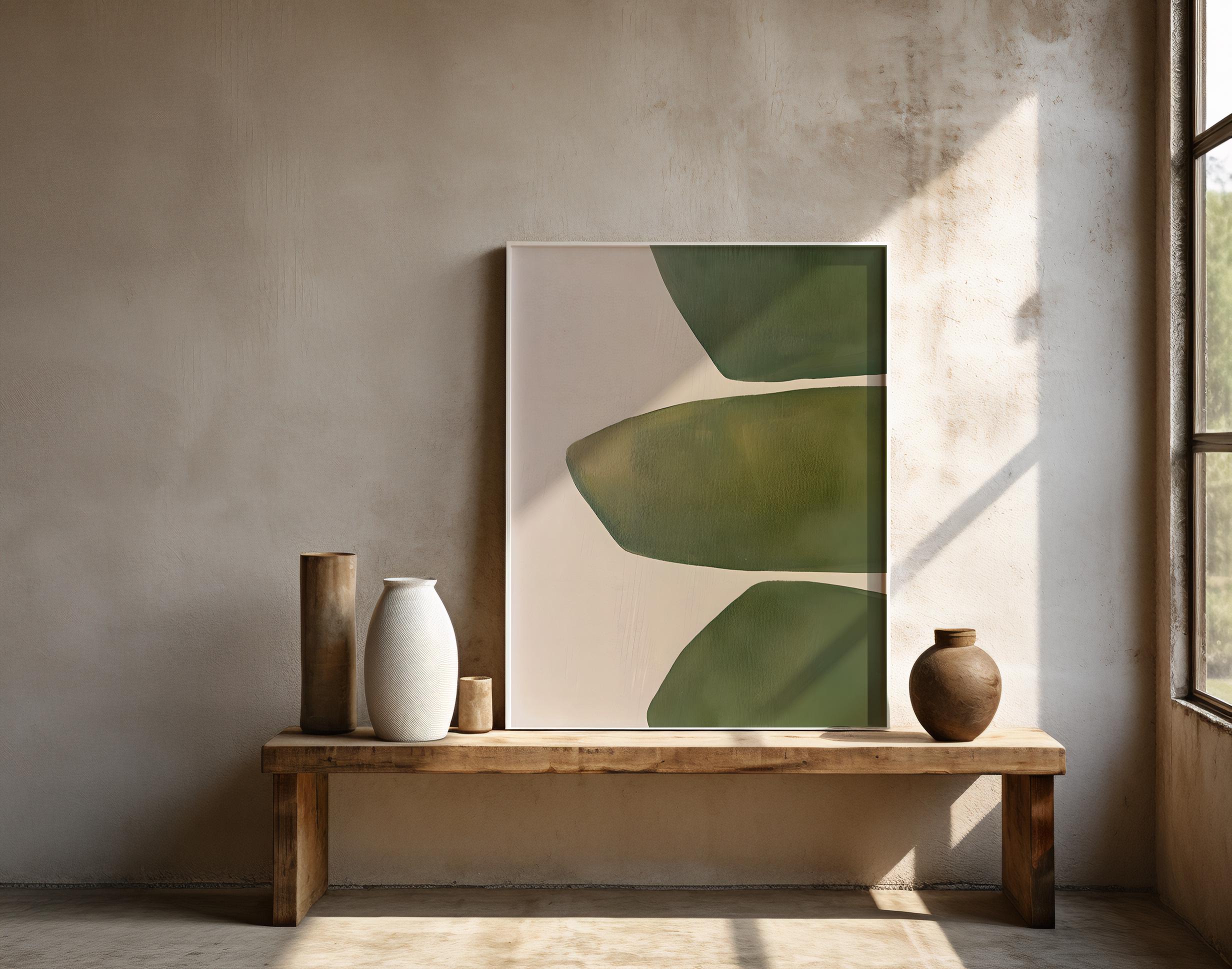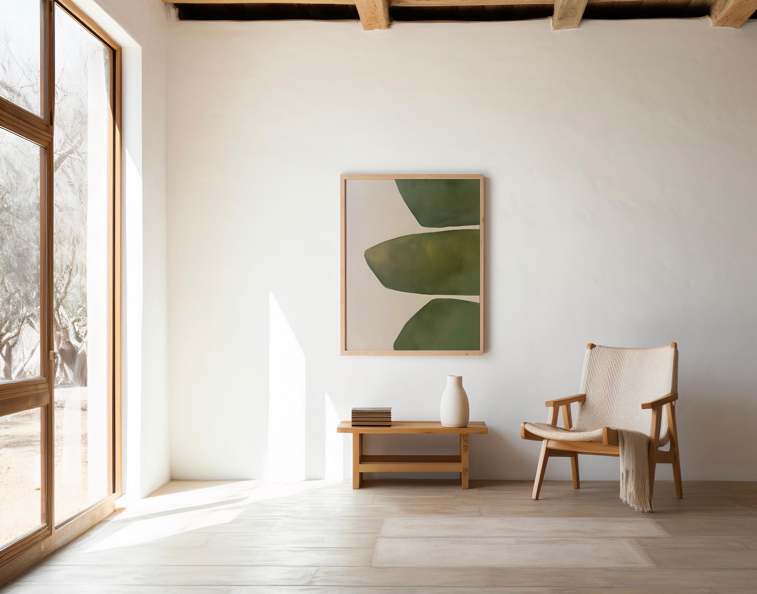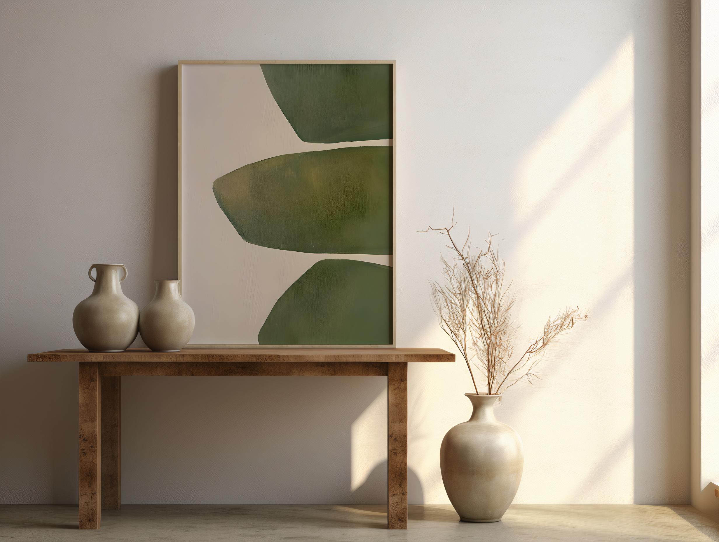 Transform your space instantly with this minimalist green abstract art print, featuring soft organic shapes and a serene botanical-inspired palette. Designed in a calming modern style, this artwork brings a clean, elevated feel to living rooms, bedrooms, offices, and Japandi-inspired interiors.